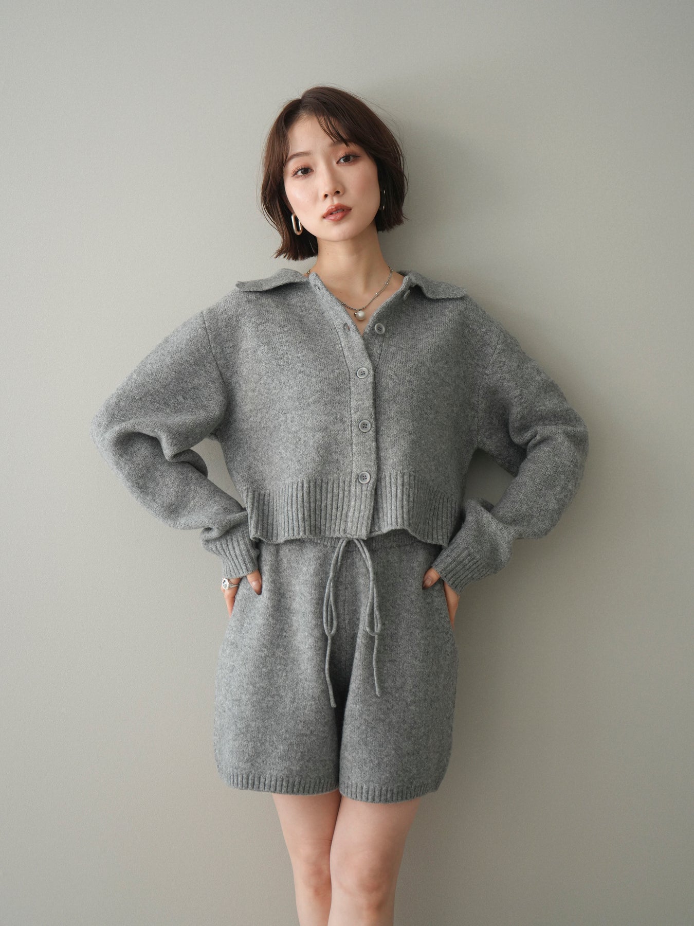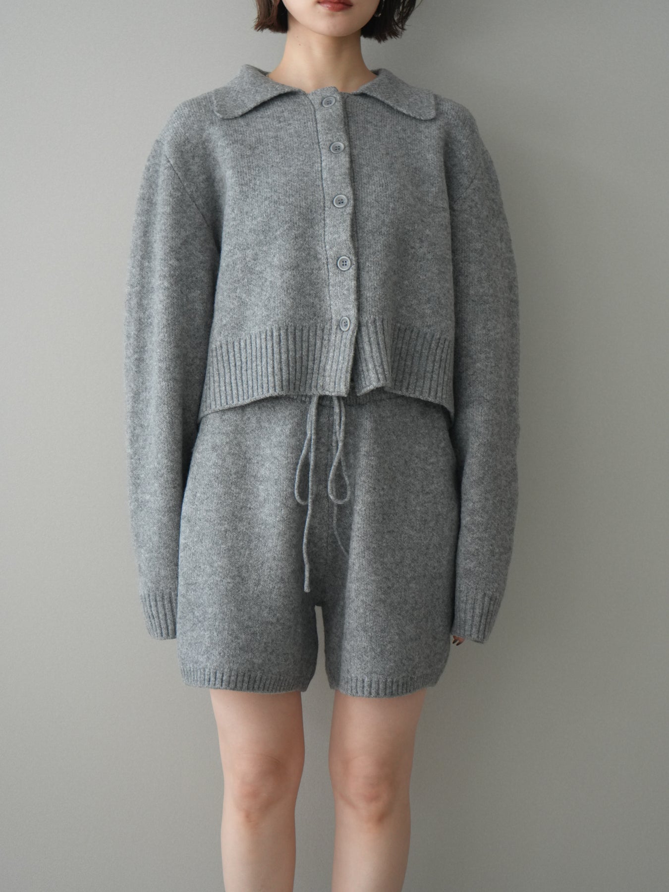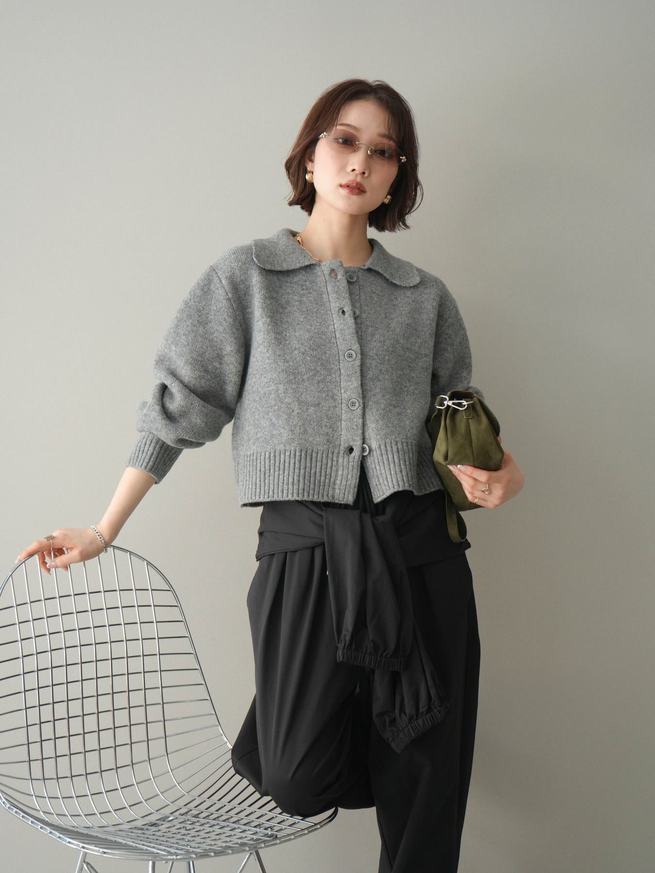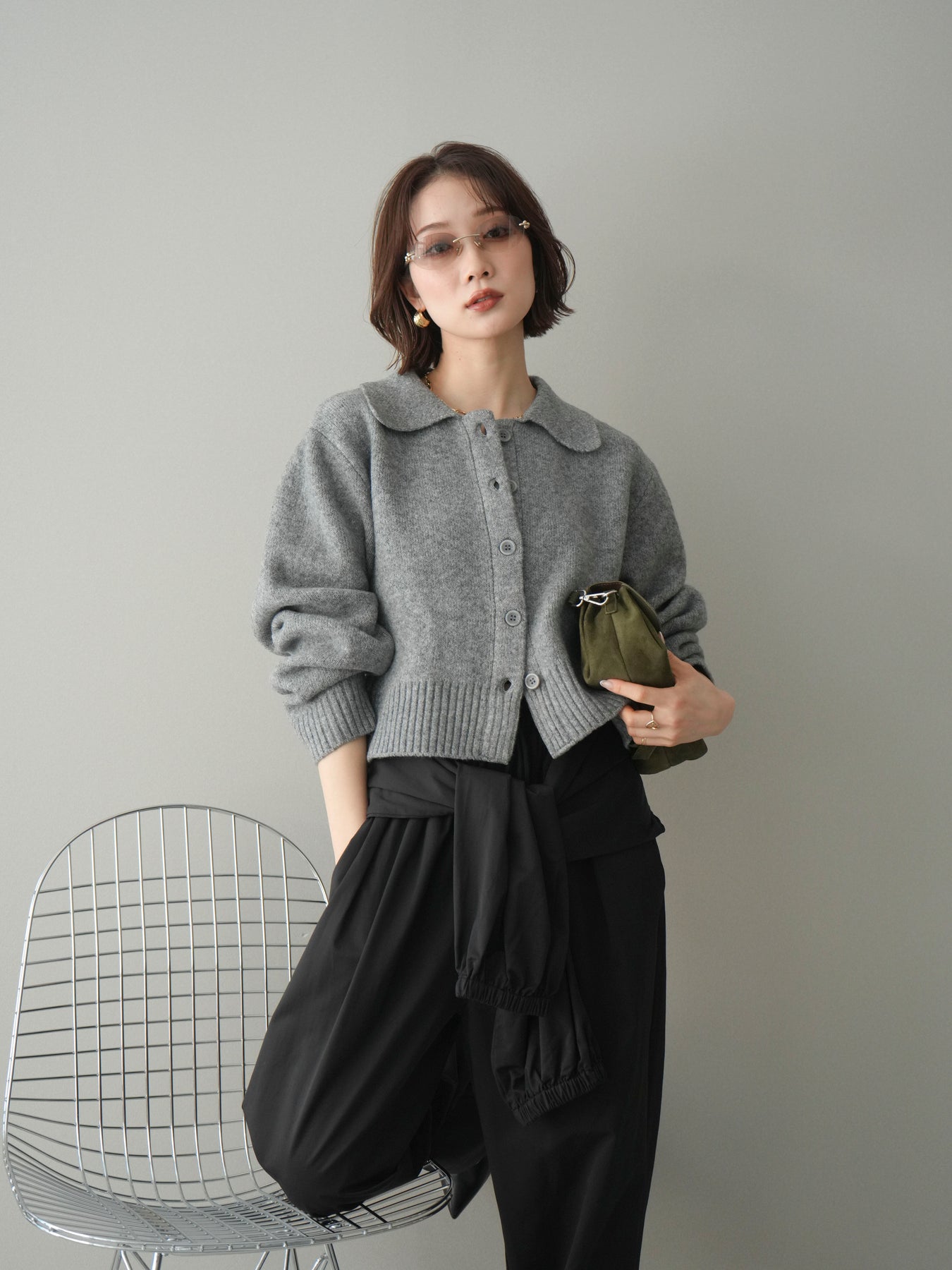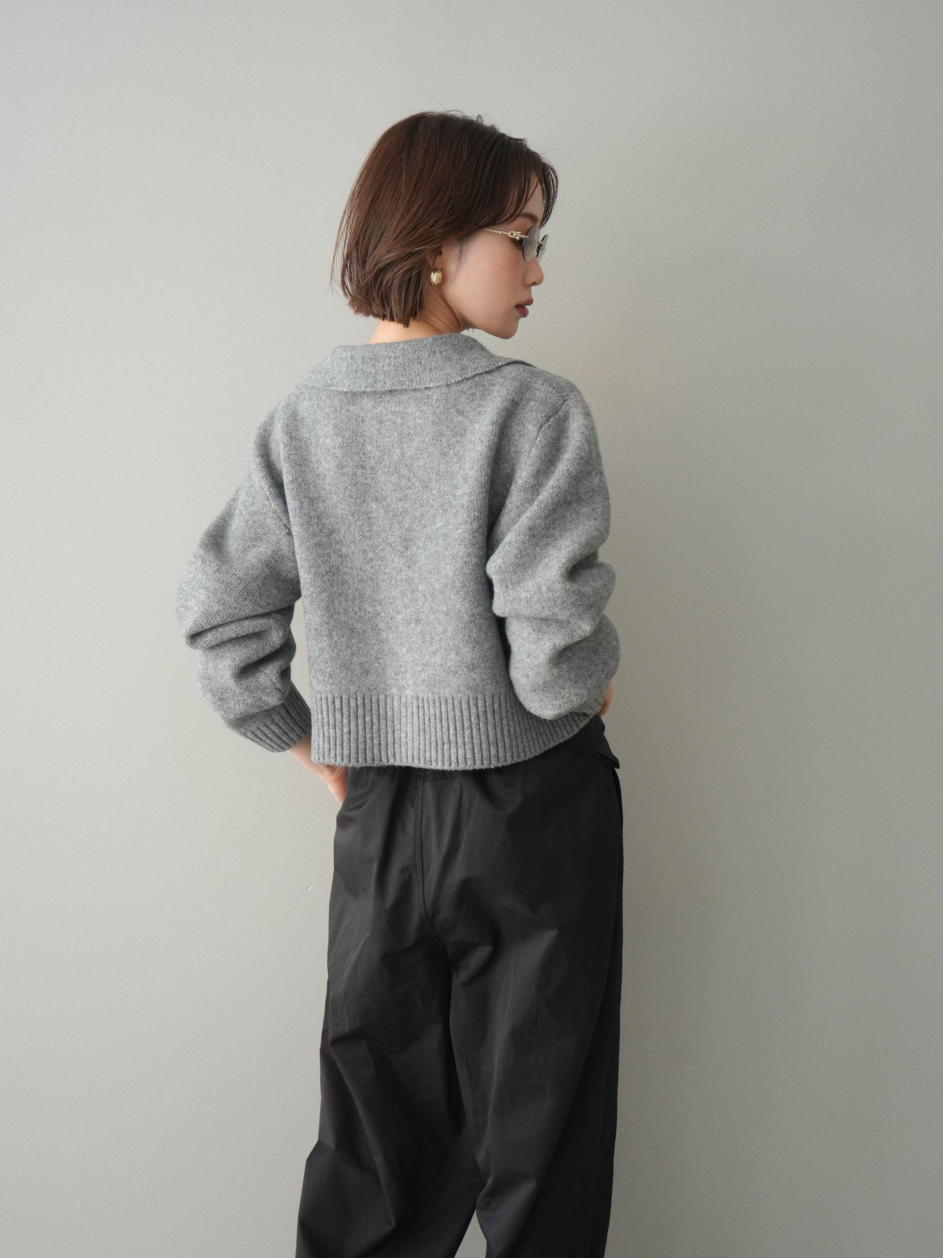 [予約]メランジニット襟付きクロップドカーディガン/gray