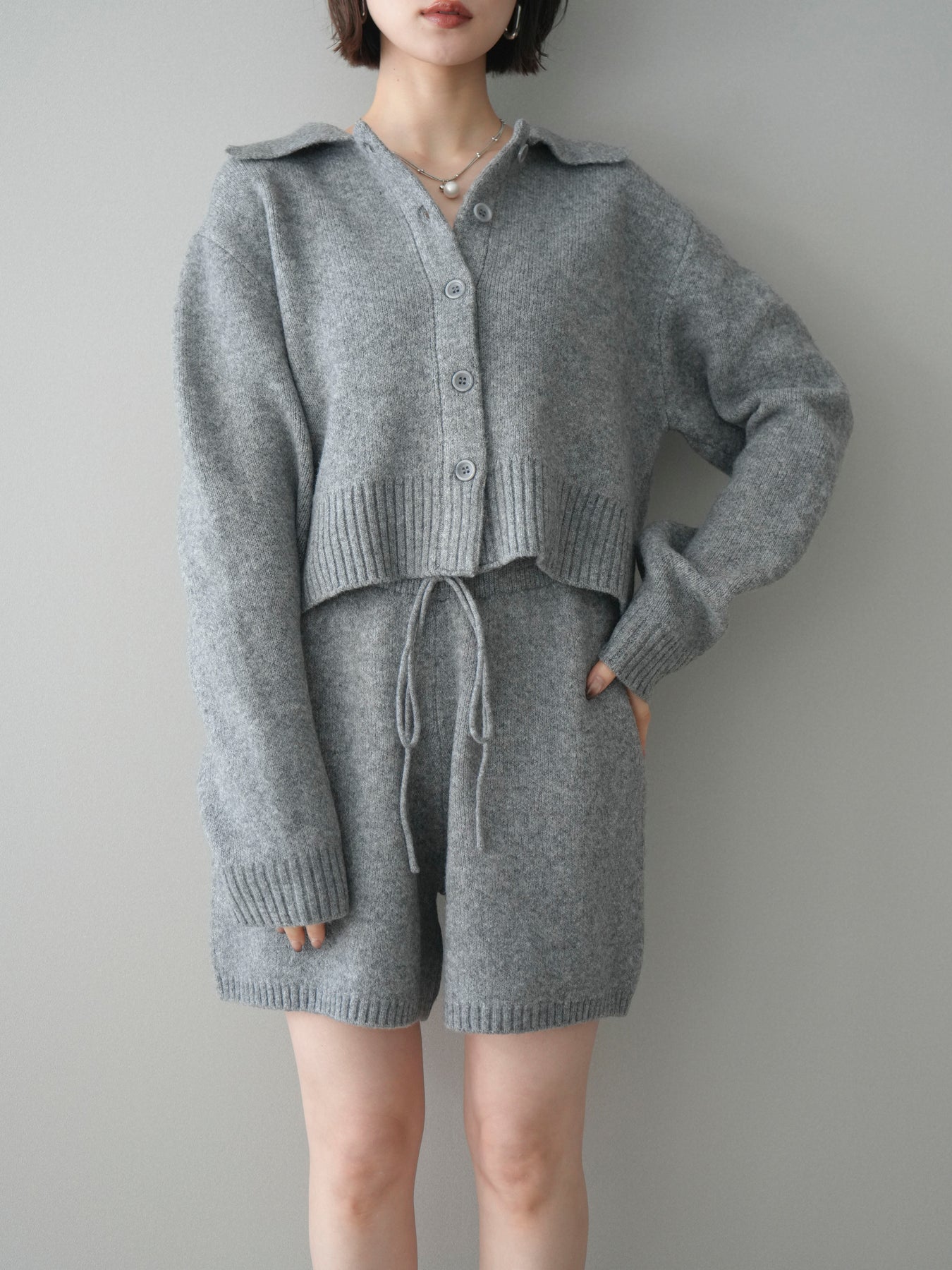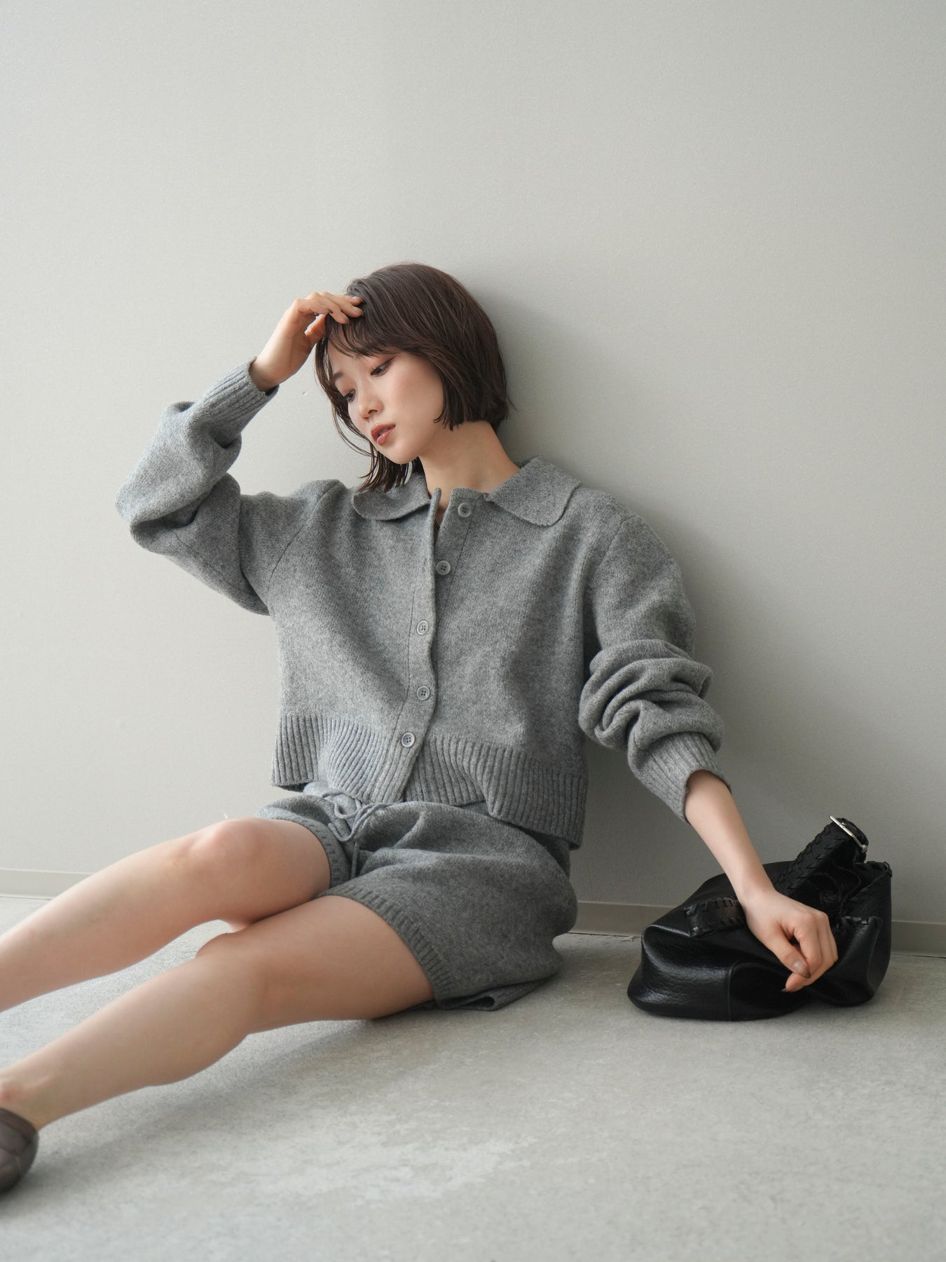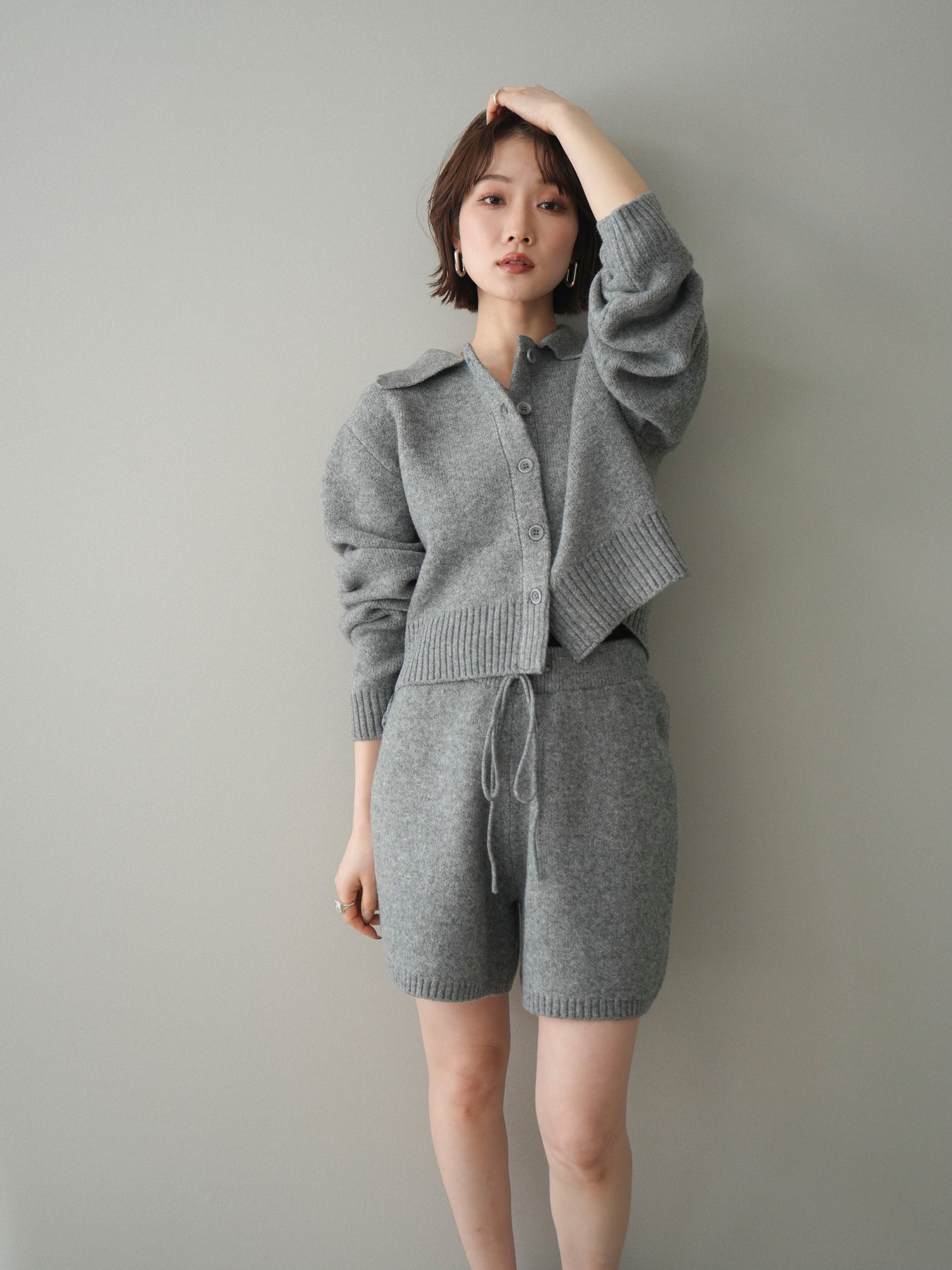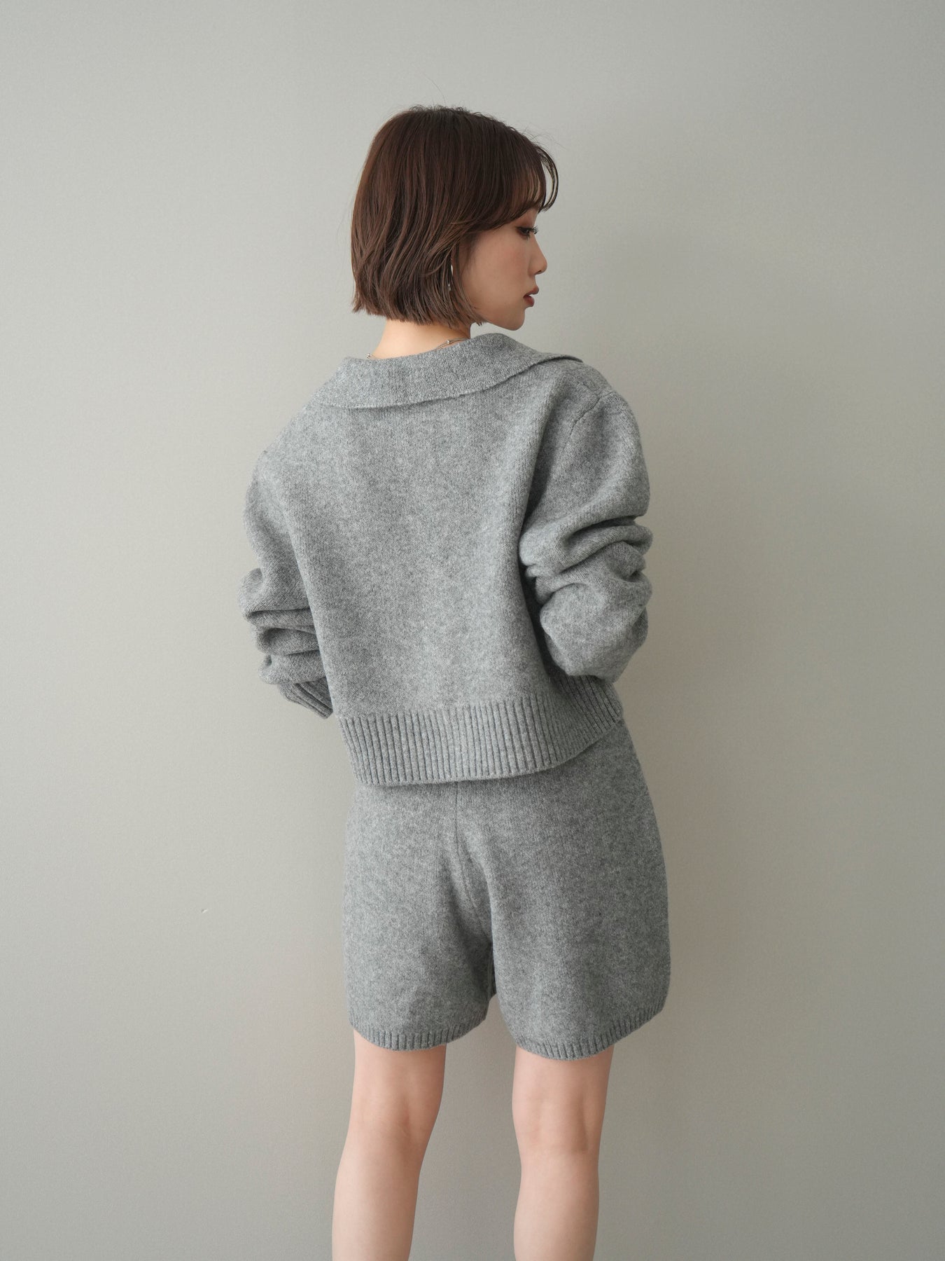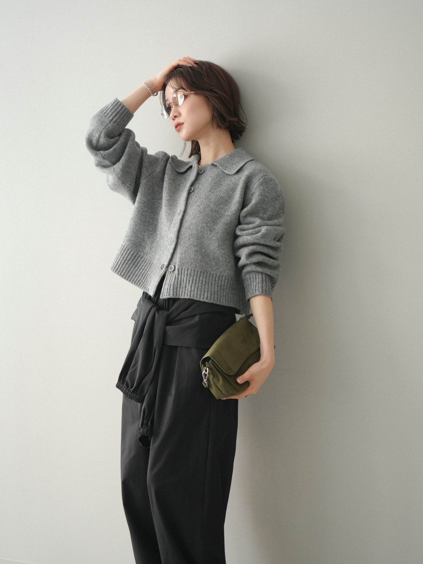 [予約]メランジニット襟付きクロップドカーディガン/gray