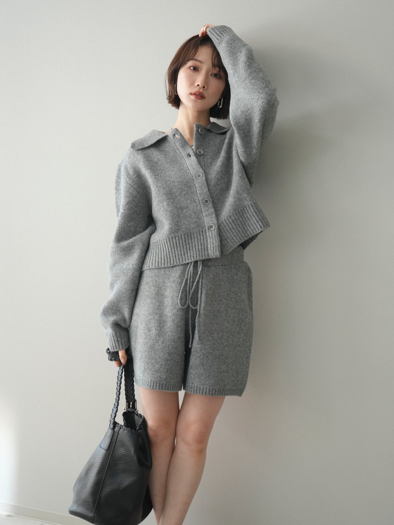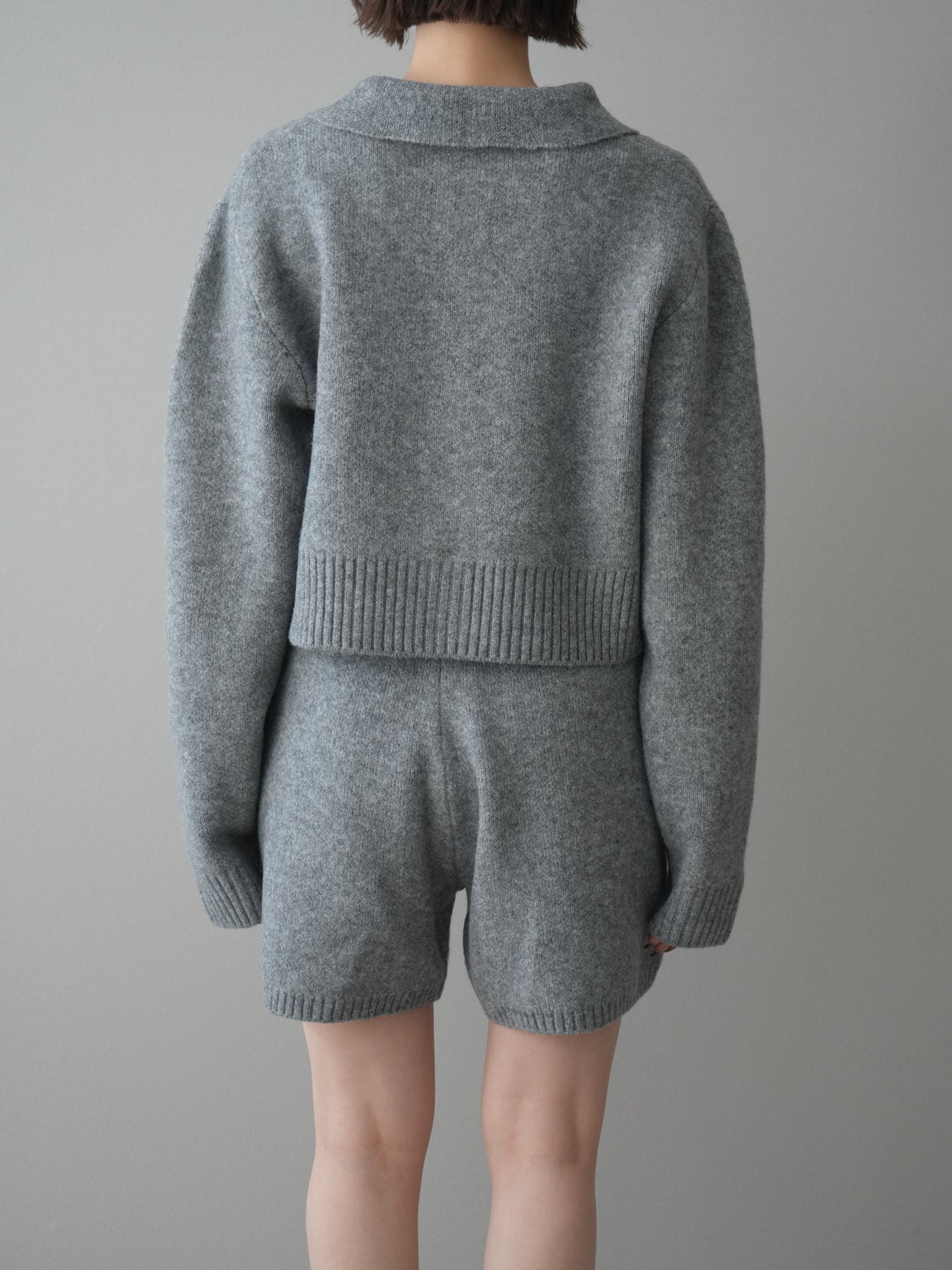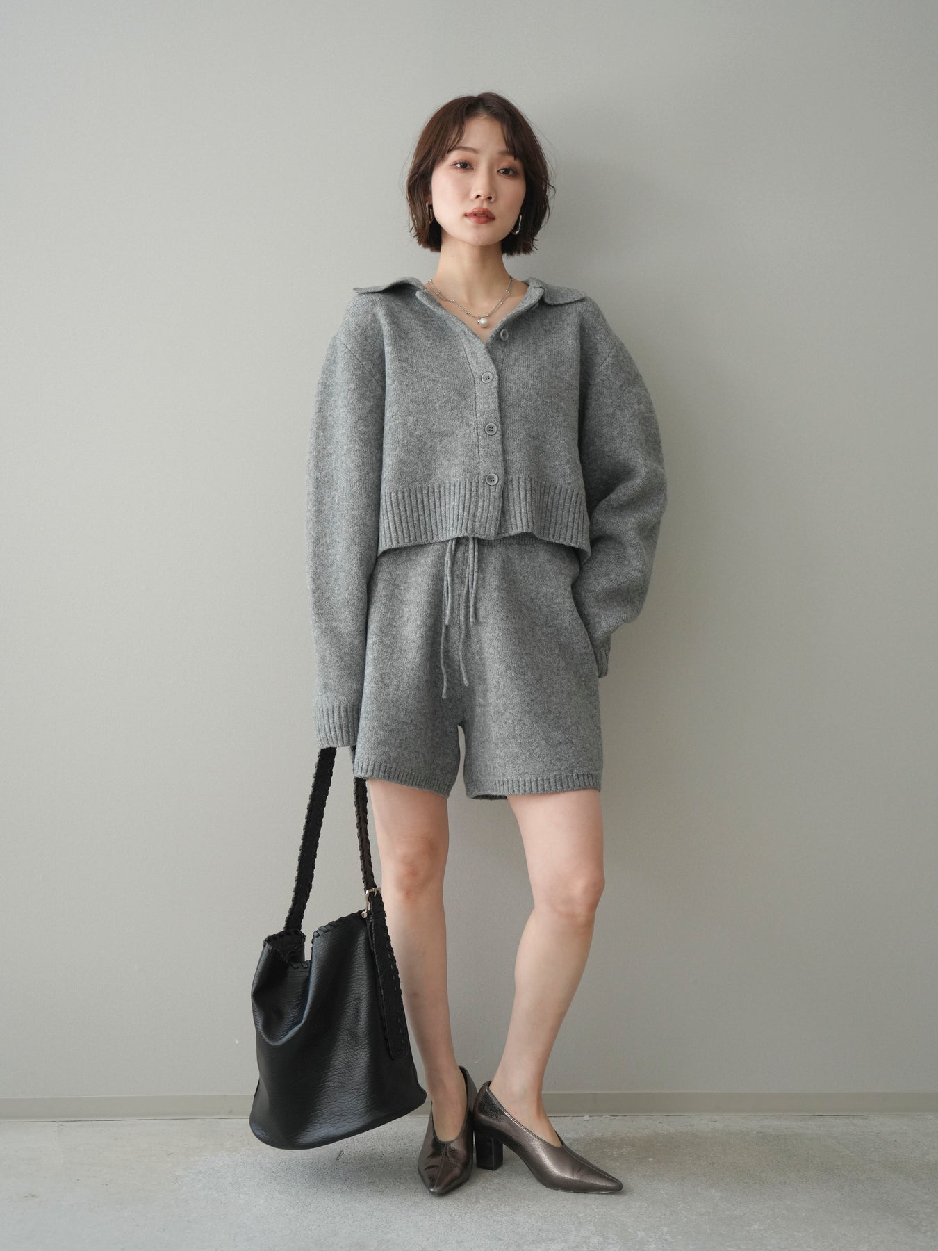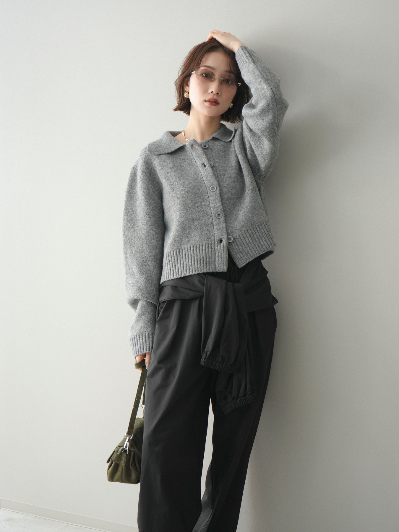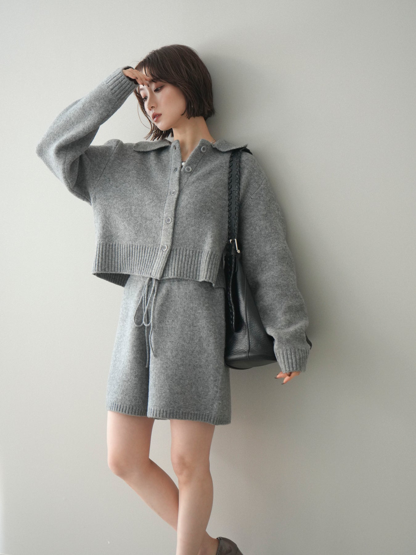 [予約]メランジニット襟付きクロップドカーディガン/gray
