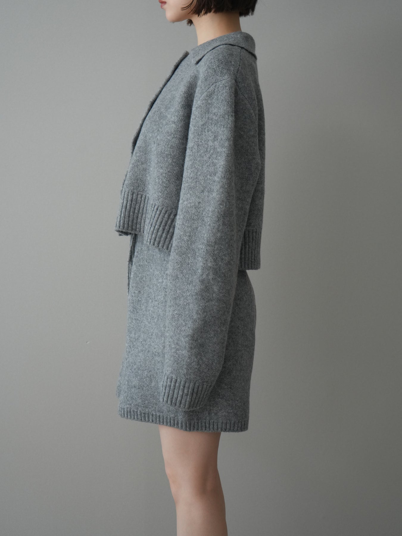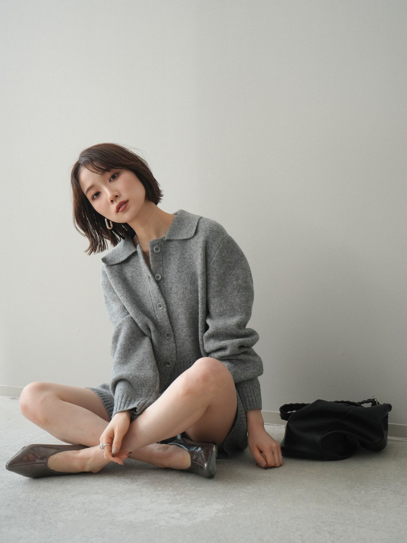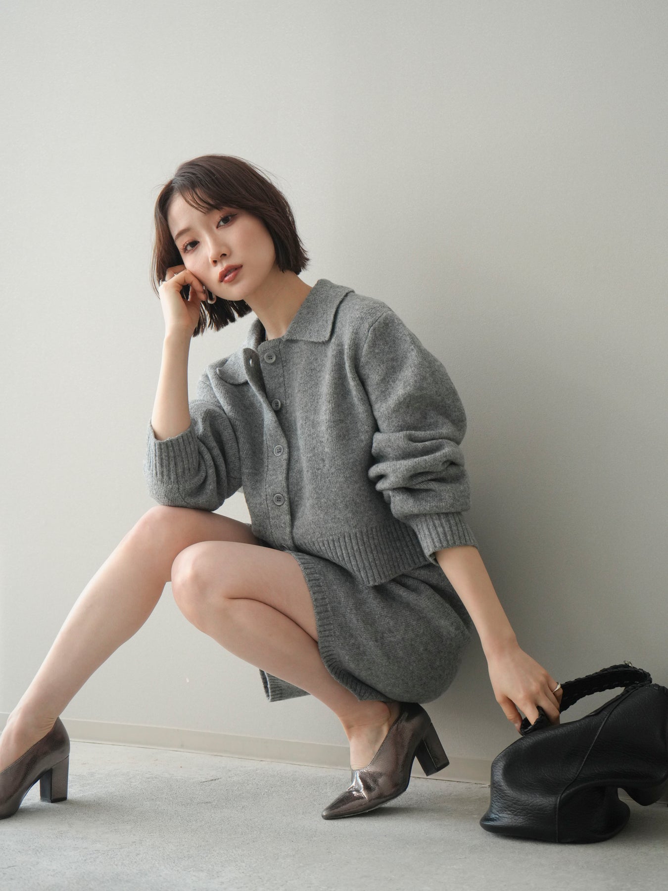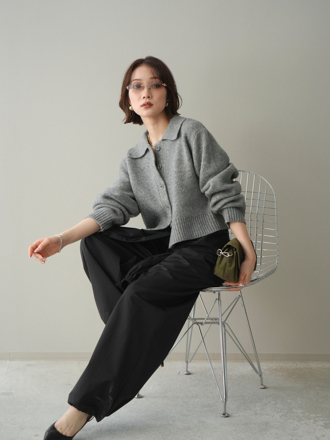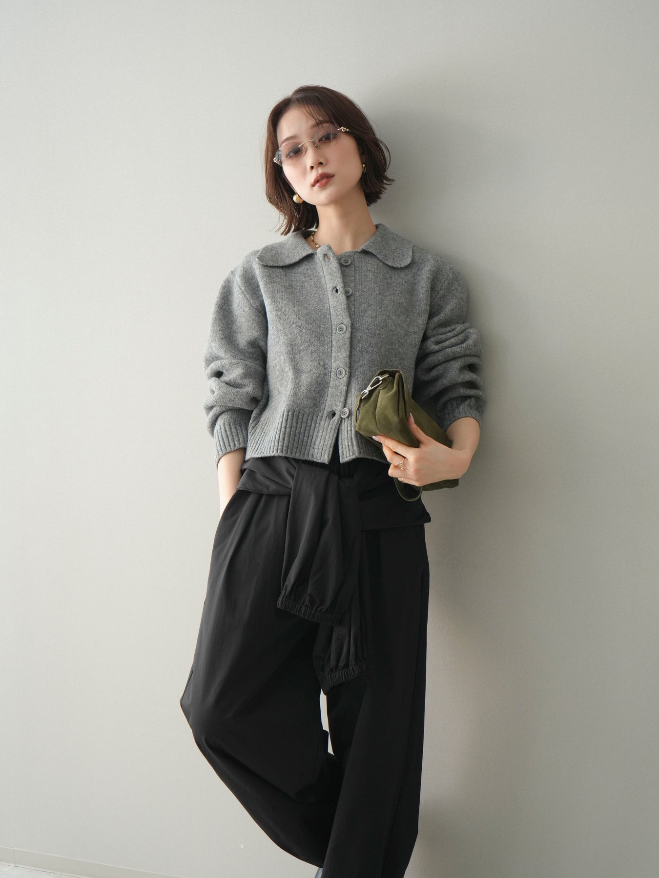 [予約]メランジニット襟付きクロップドカーディガン/gray