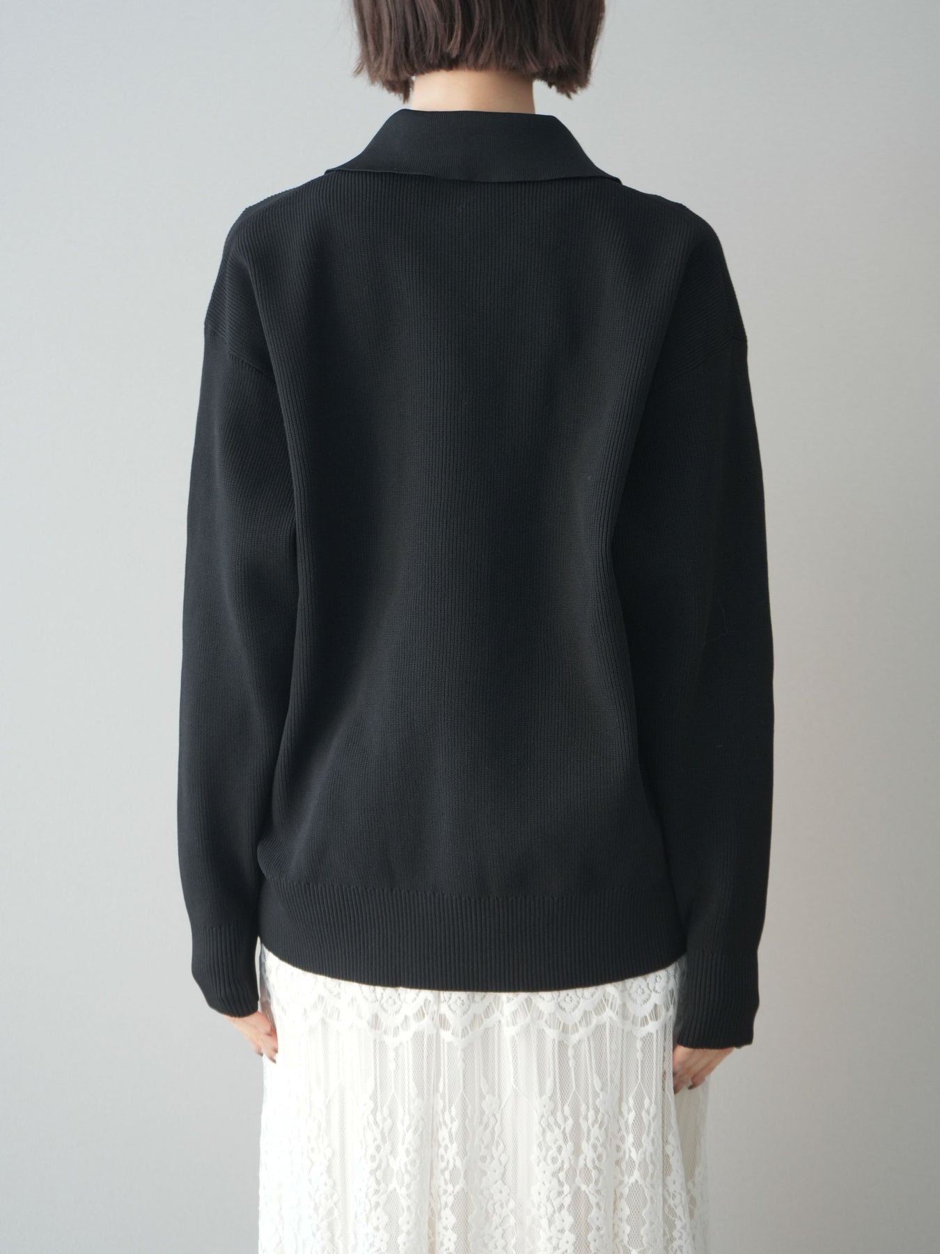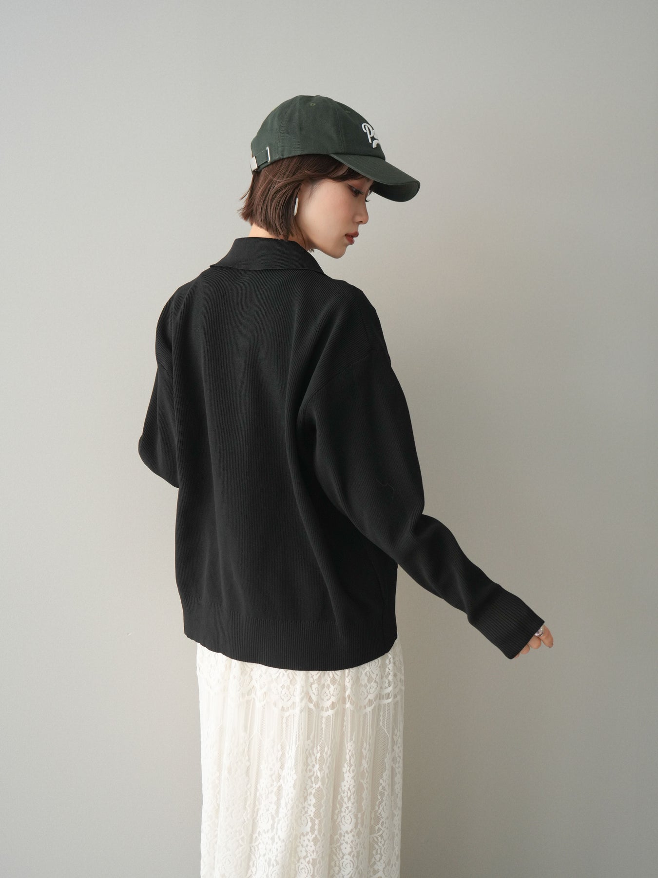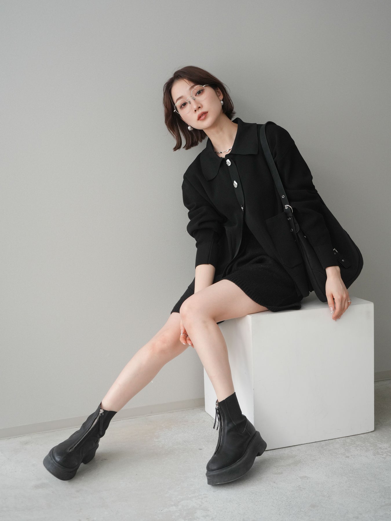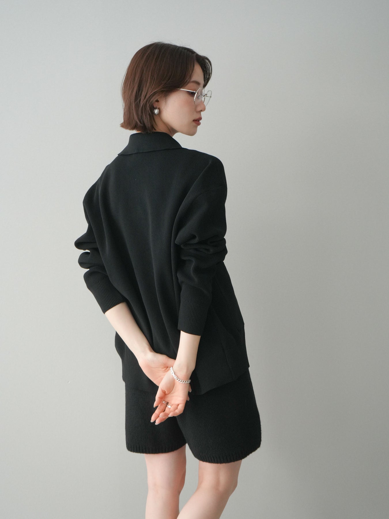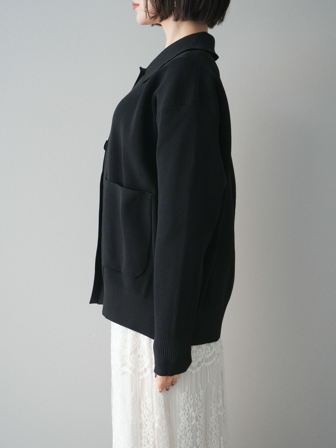 [予約]メタルボタン襟付きポリエステルニットカーディガン/black