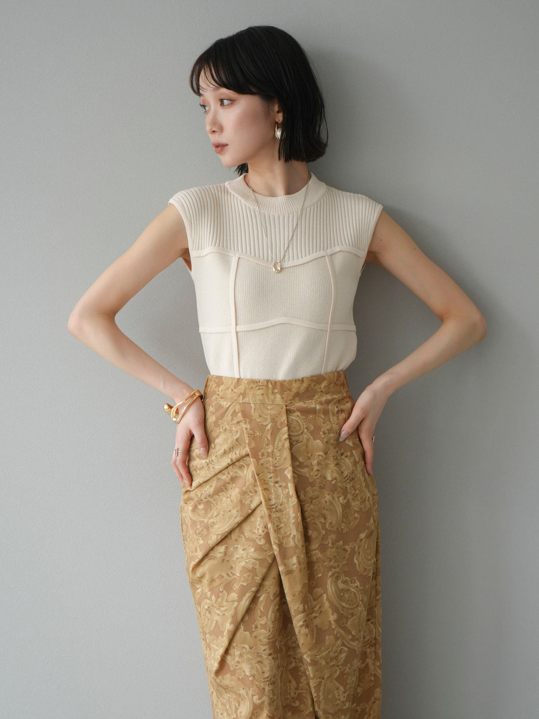 [予約]ハイネックデザインボタンニットカーディガン/ivory