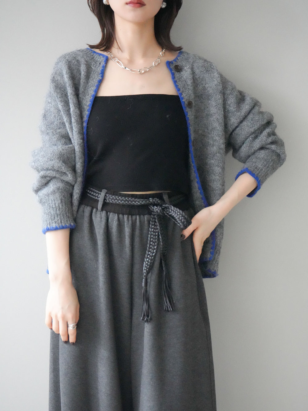 [予約]ソフトタッチボーダークロップドニットプルオーバー/charcoal