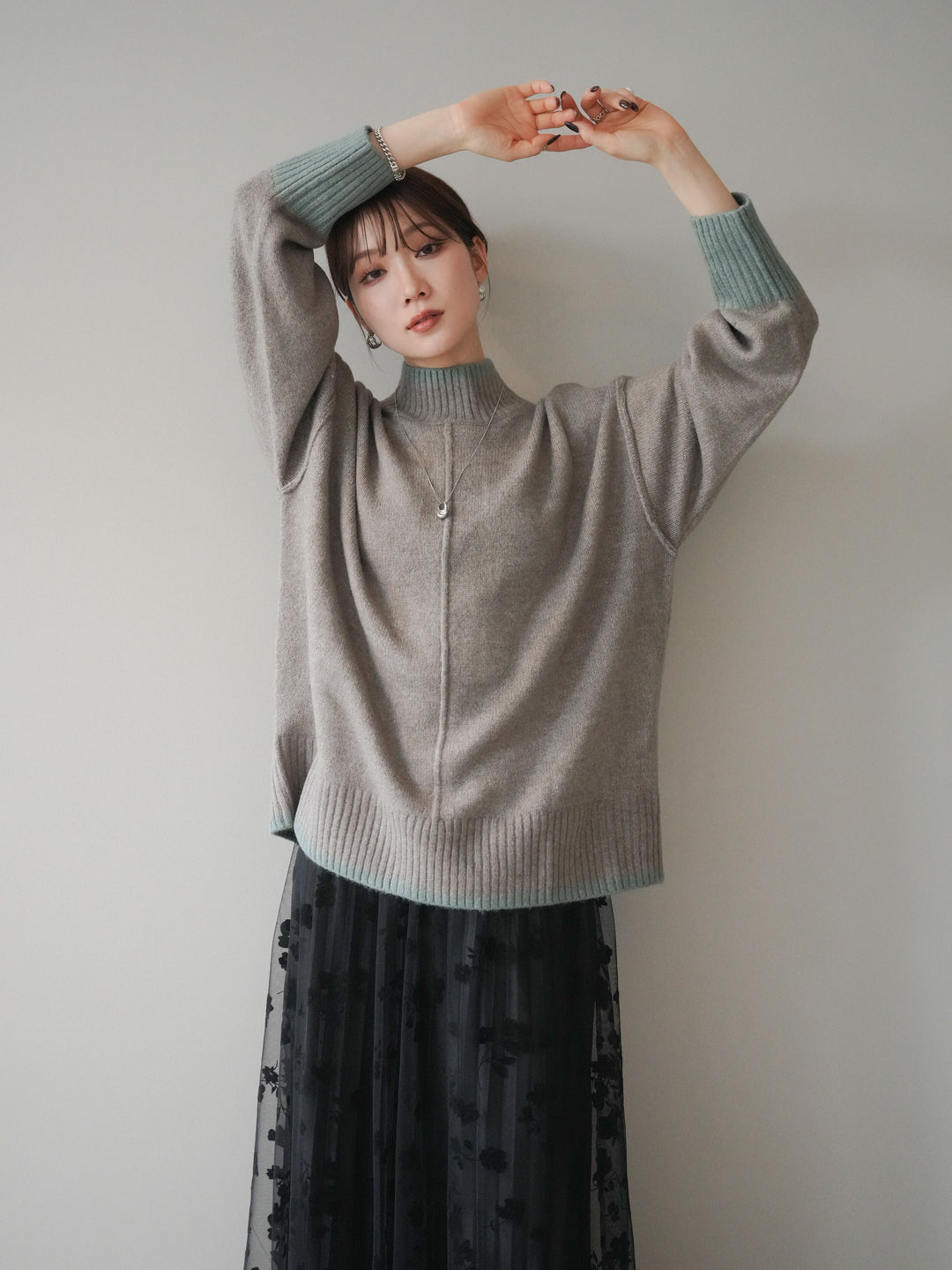 [予約]配色ハイネックニットプルオーバー/mosugraymint