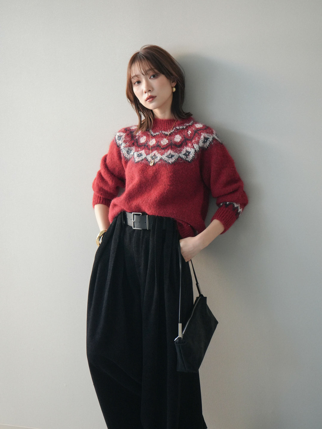 [予約]ソフトタッチ求心柄ニットプルオーバー/red