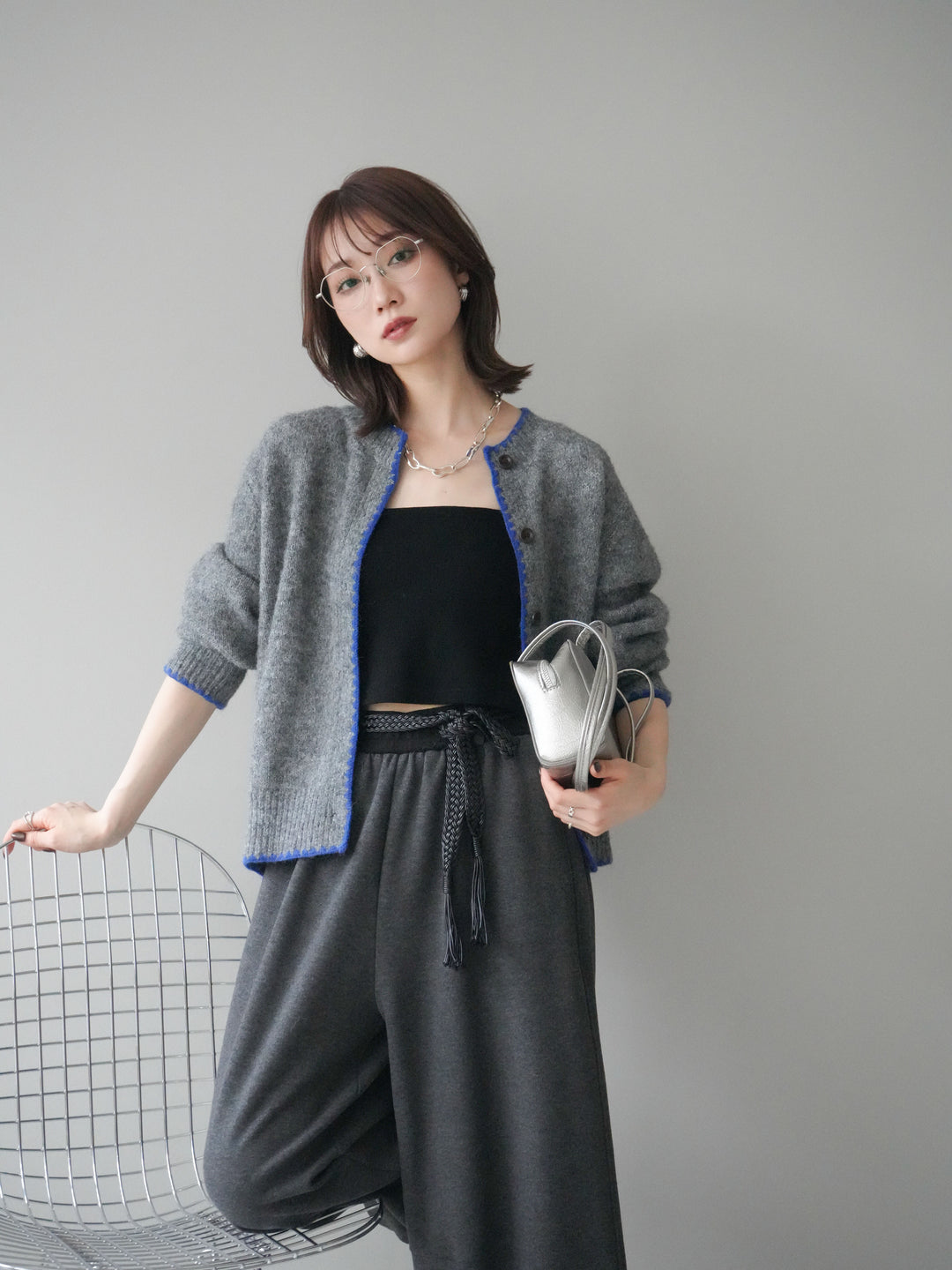[予約]チェックシャツ襟ニットカーディガン/gray