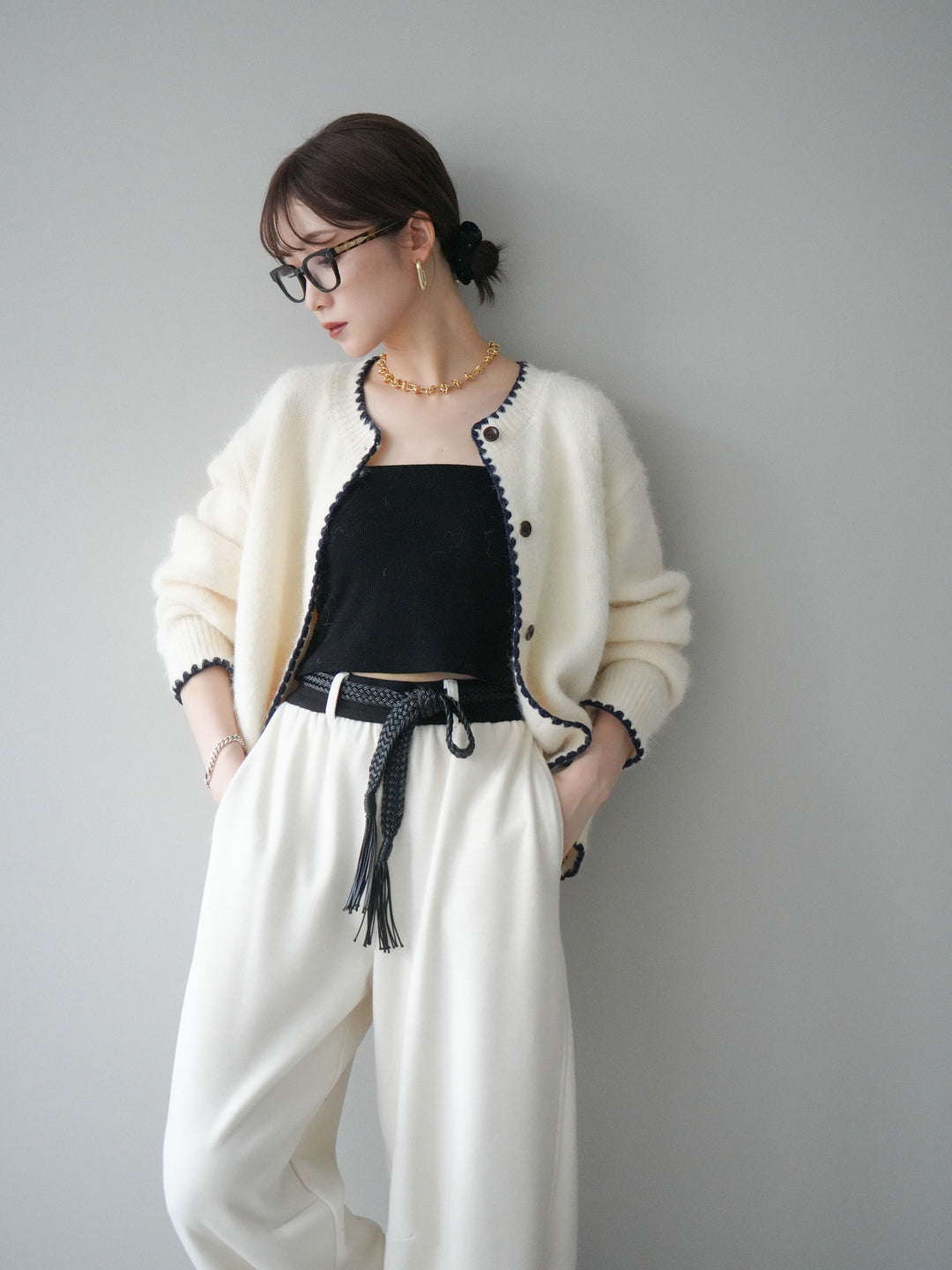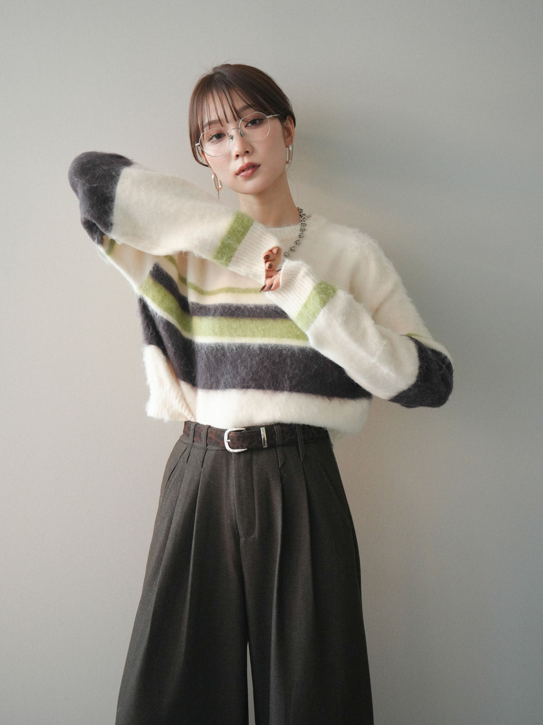 [予約]ソフトタッチボーダークロップドニットプルオーバー/ivory