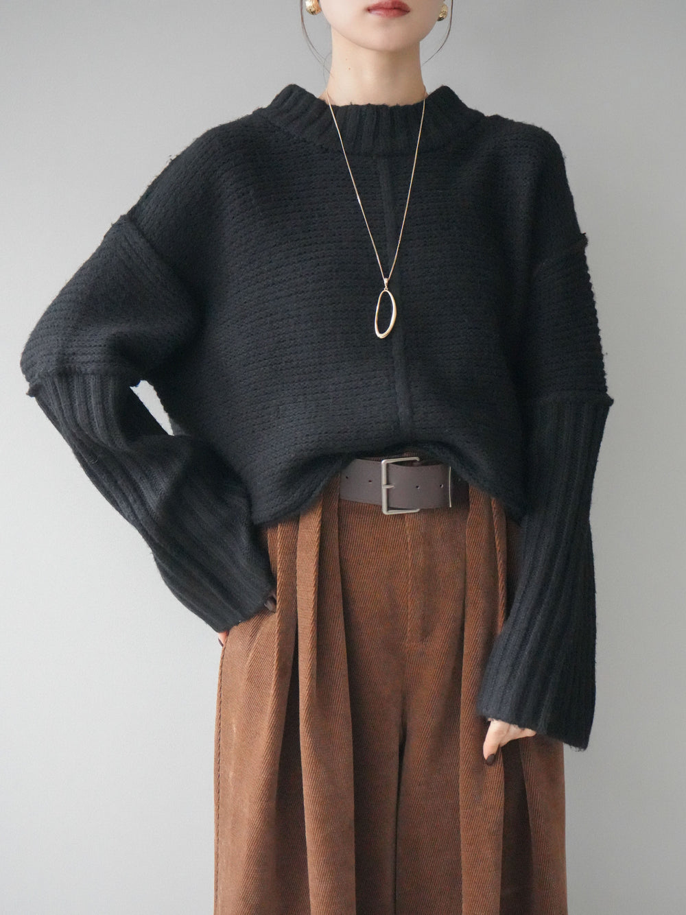 [予約]編み地切替ボトルネックニットプルオーバー/black