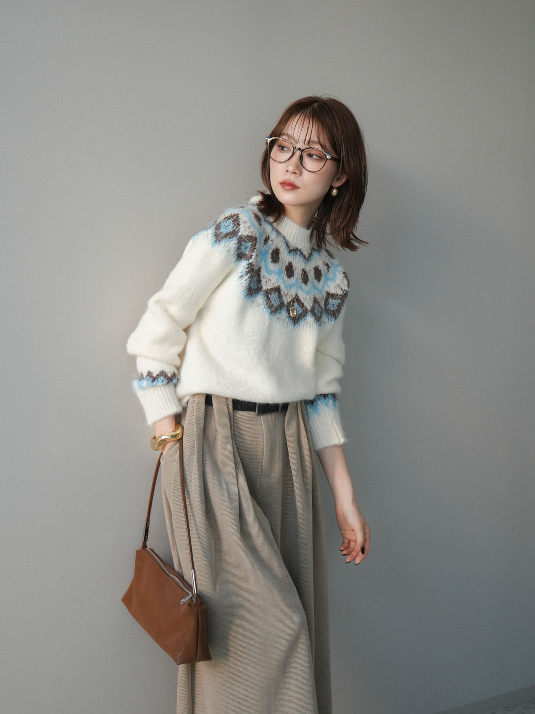 [予約]編み地切替ボトルネックニットプルオーバー/oatmeal