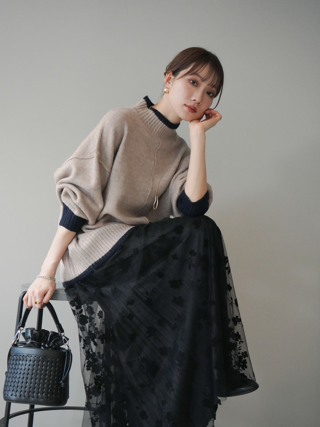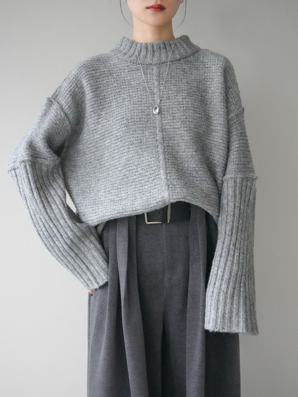 [予約]編み地切替ボトルネックニットプルオーバー/mokugray