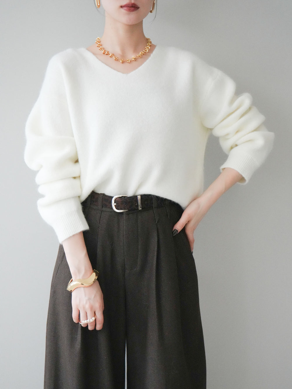 [予約]シュシュ付きアンゴラタッチVネックニットプルオーバー/white