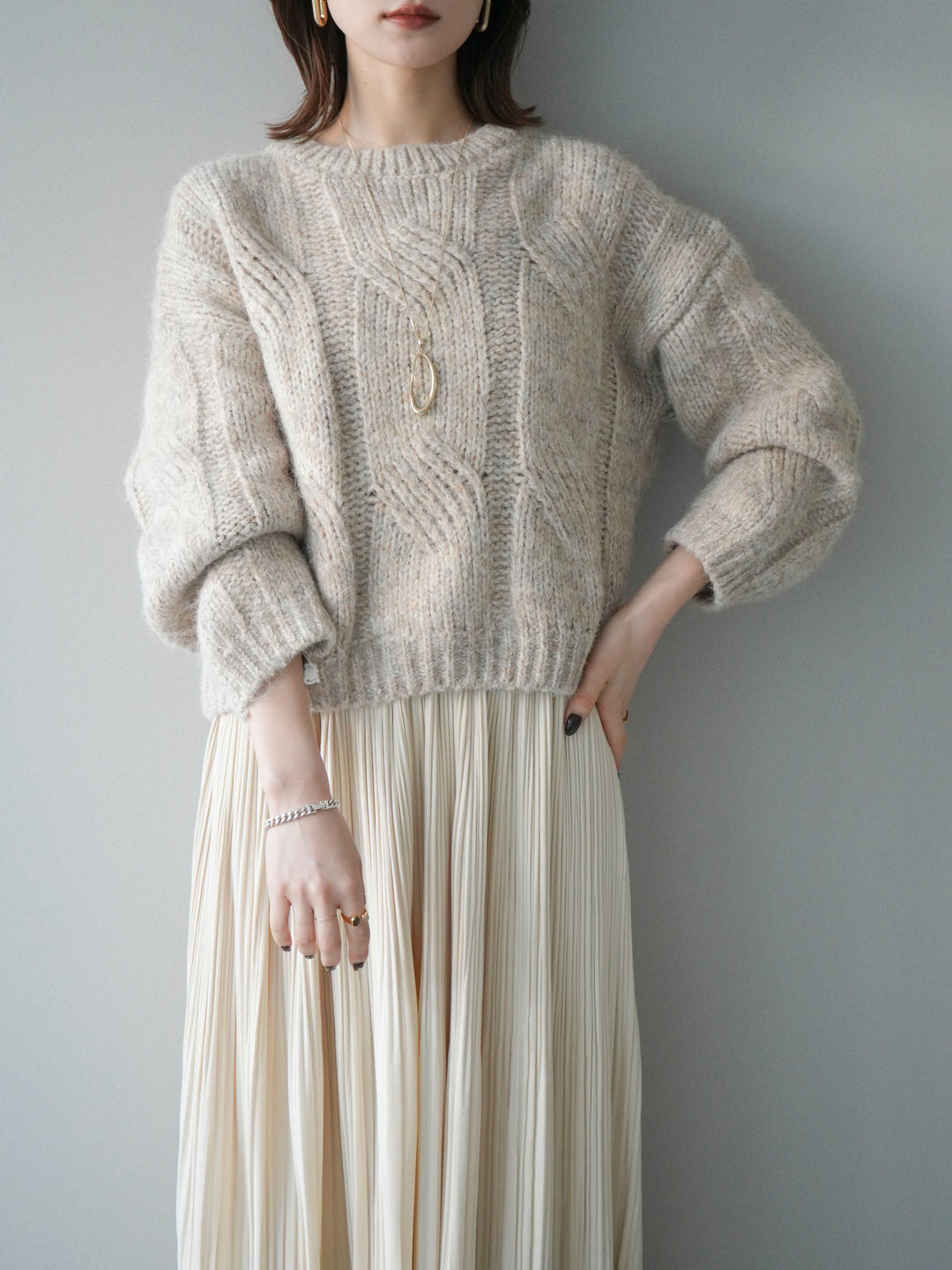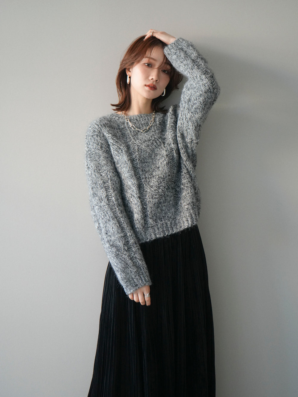 [予約]ワイドケーブルミックスニットプルオーバー/gray