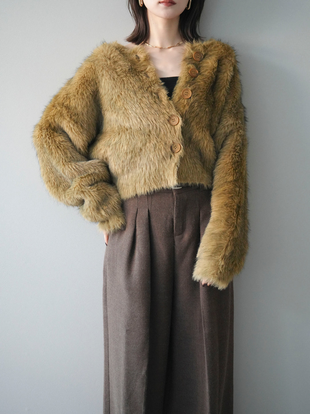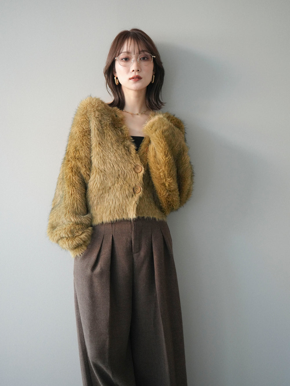 [予約]ミックスシャギーショートニットカーディガン/green