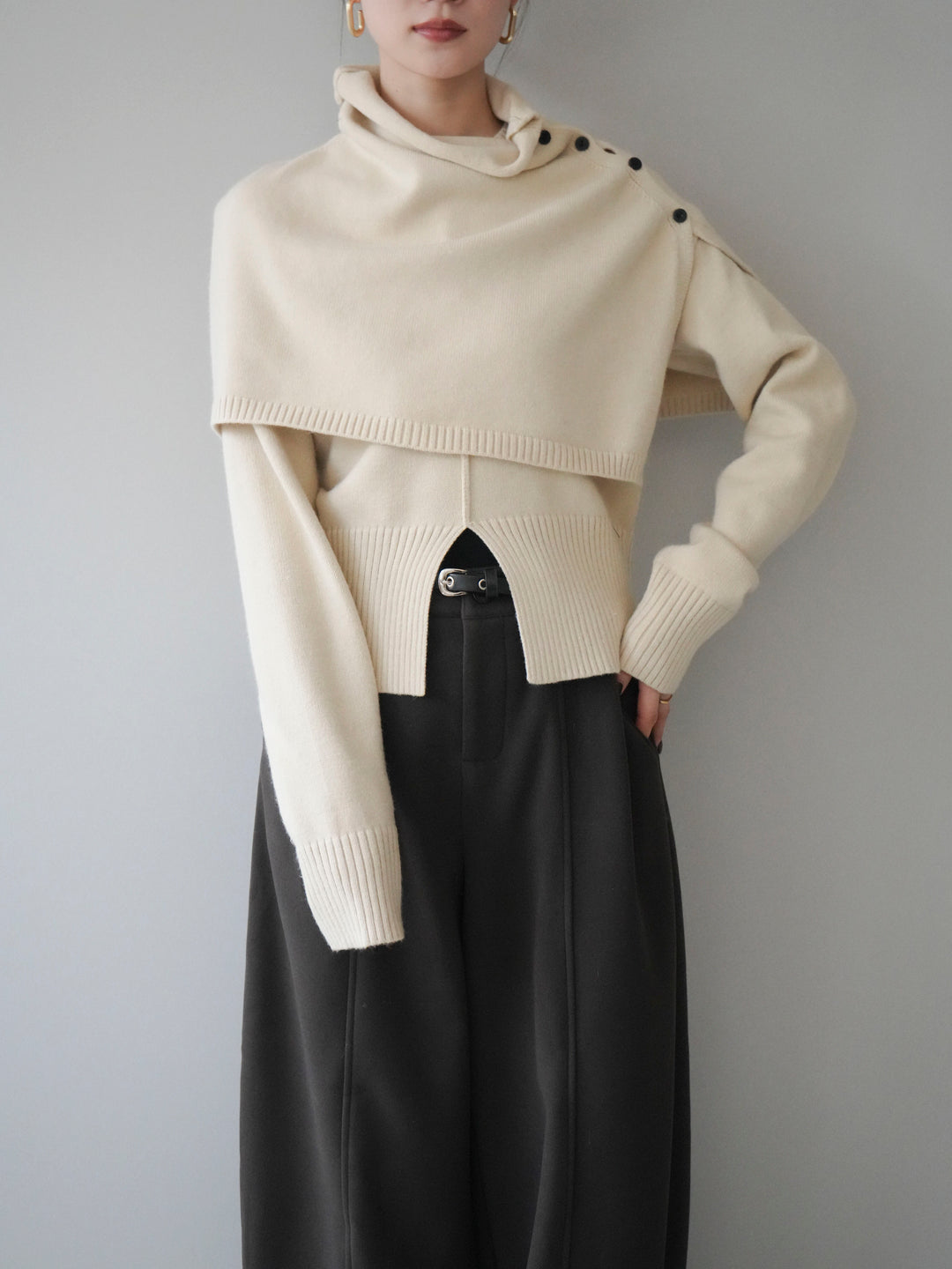 [予約]フロントスリットネックアンサンブルニット/ivory