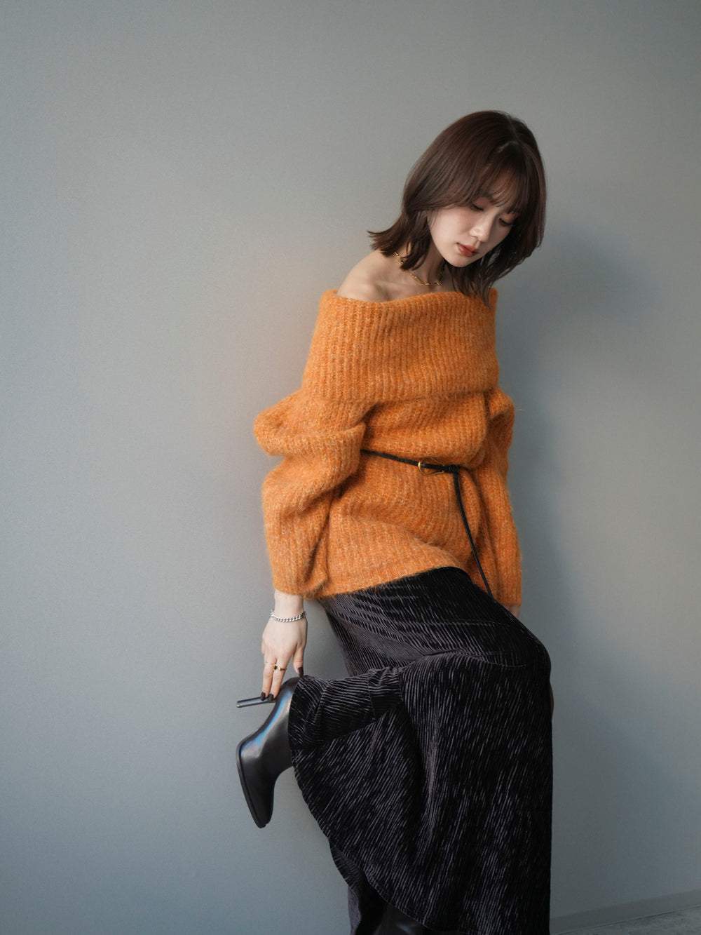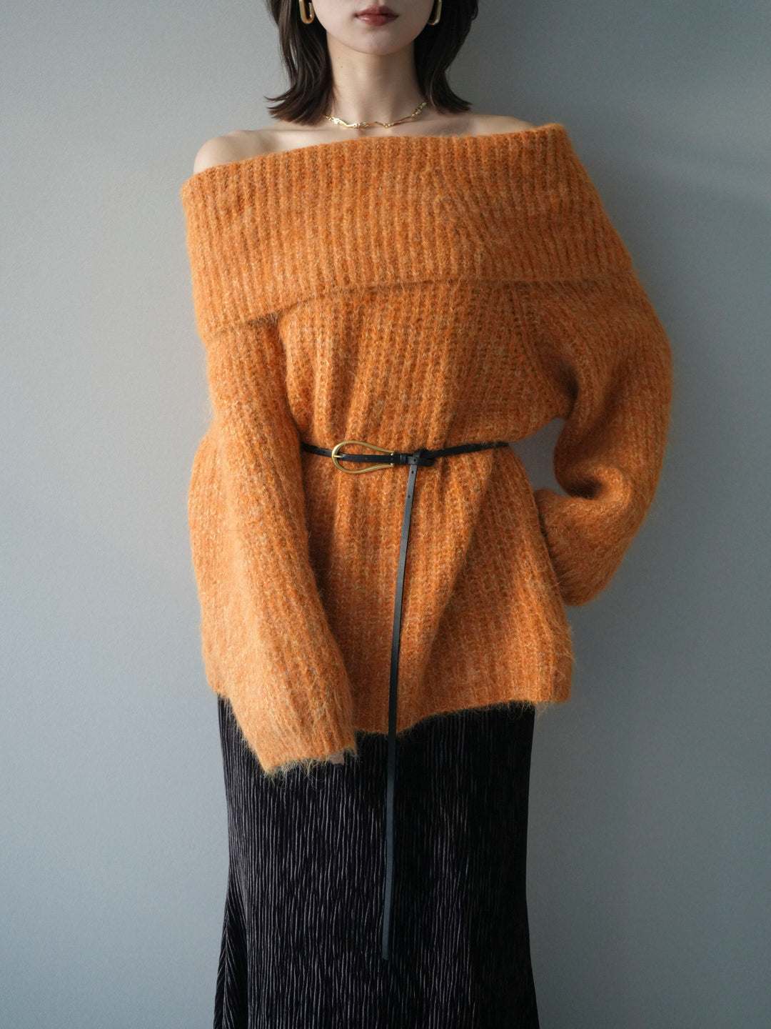 [予約]オフショルミックスニットプルオーバー/orange
