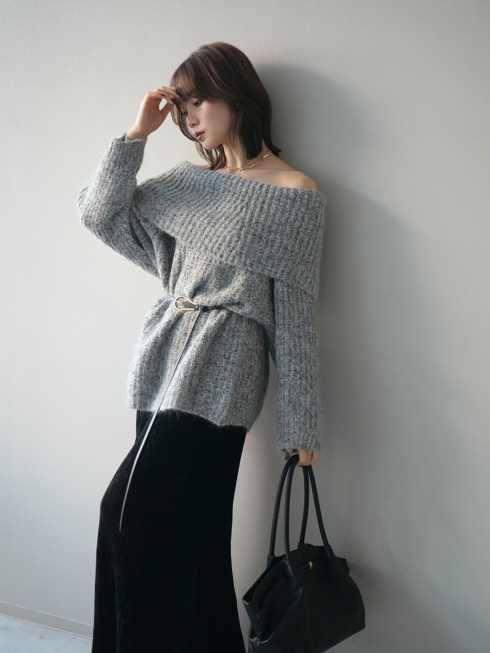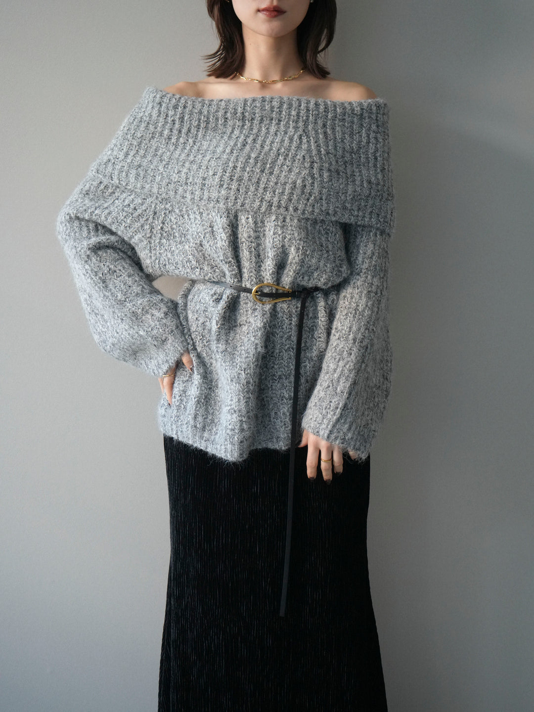 [予約]オフショルミックスニットプルオーバー/gray