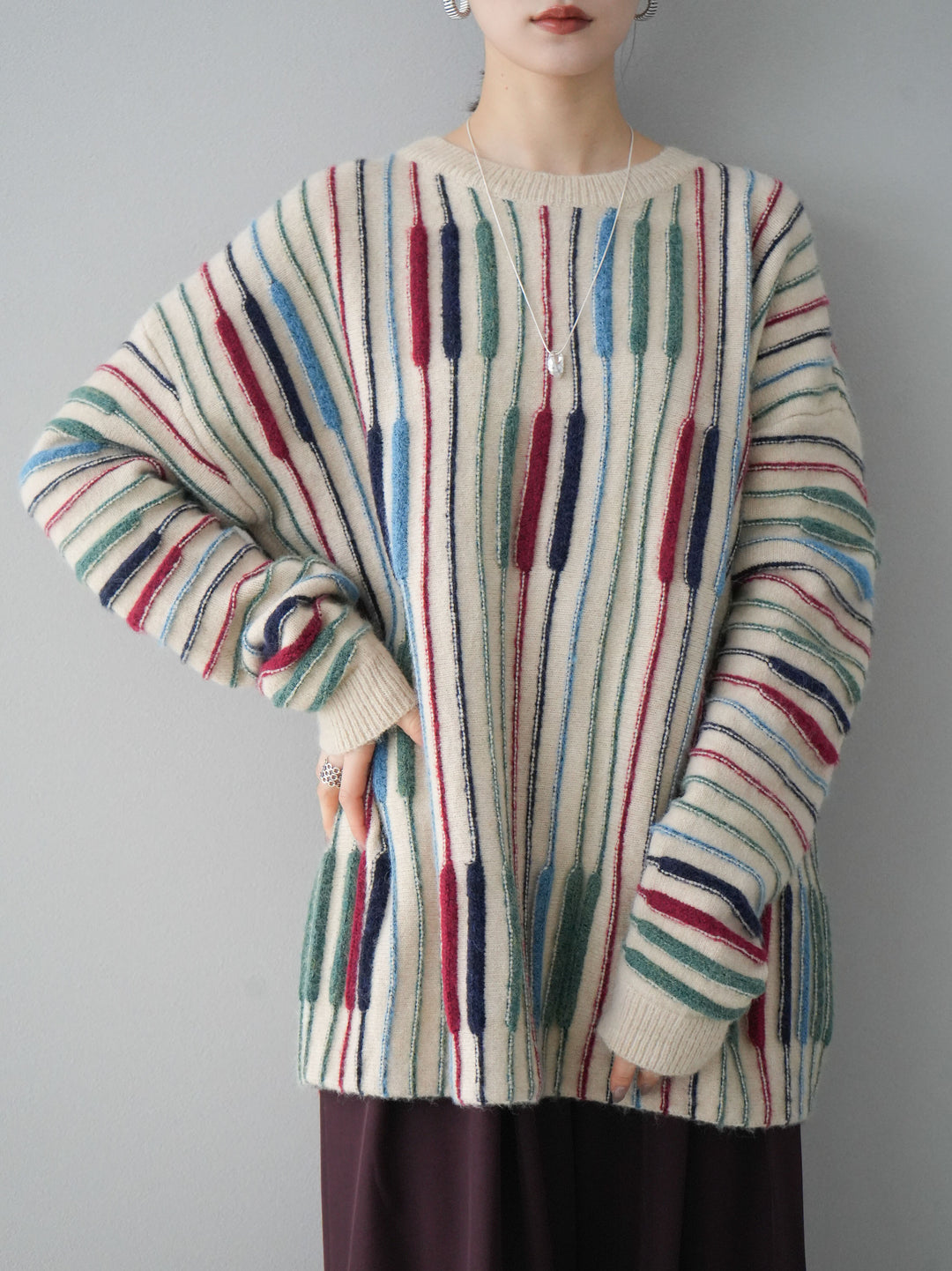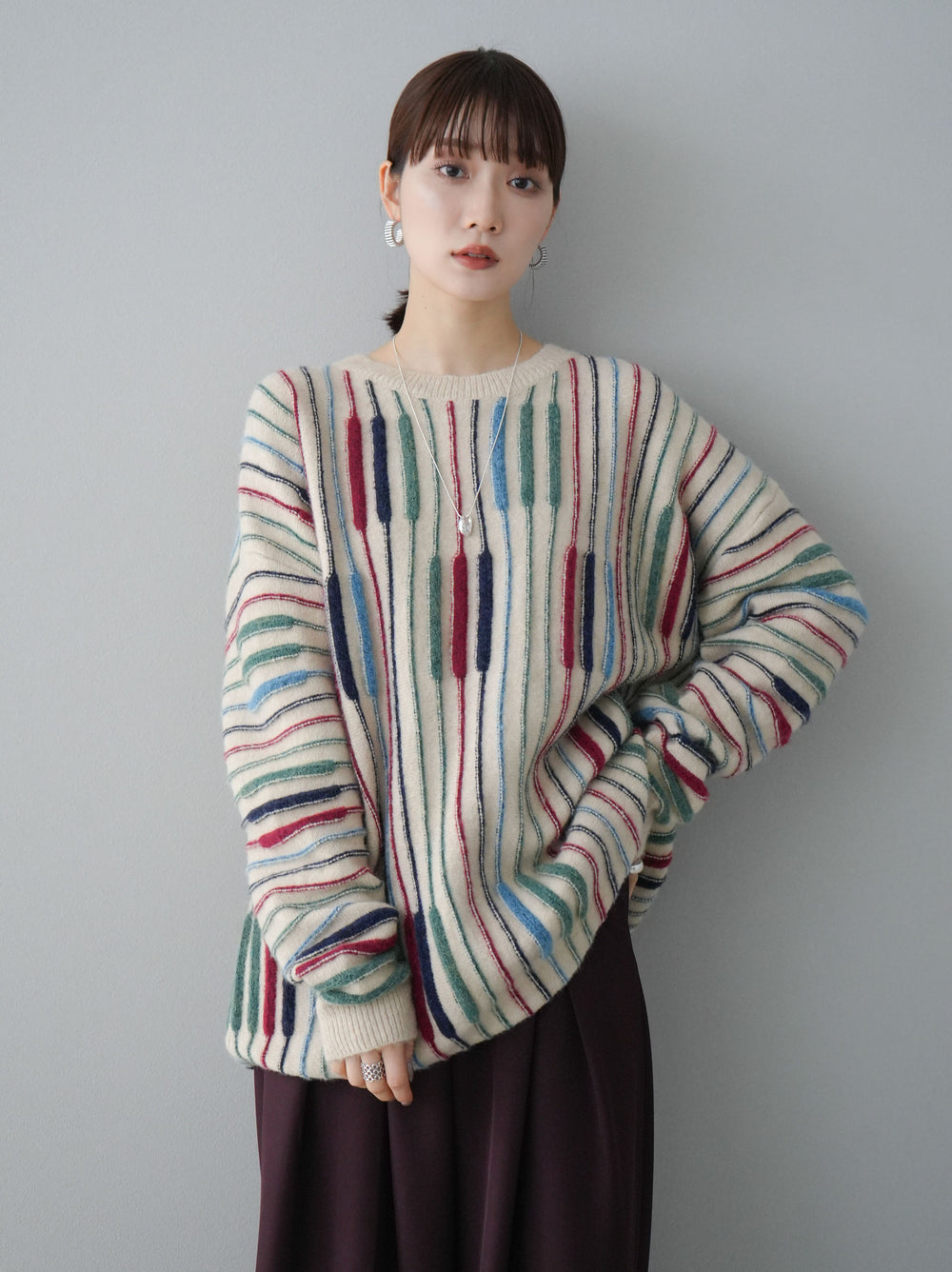 [予約]ランダムラインオーバーニットプルオーバー/アイボリー
