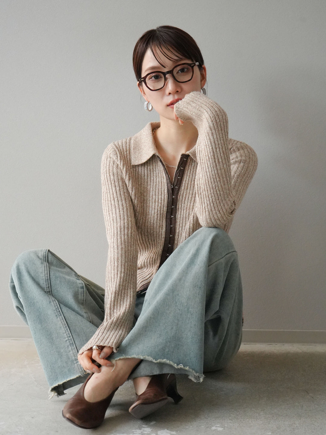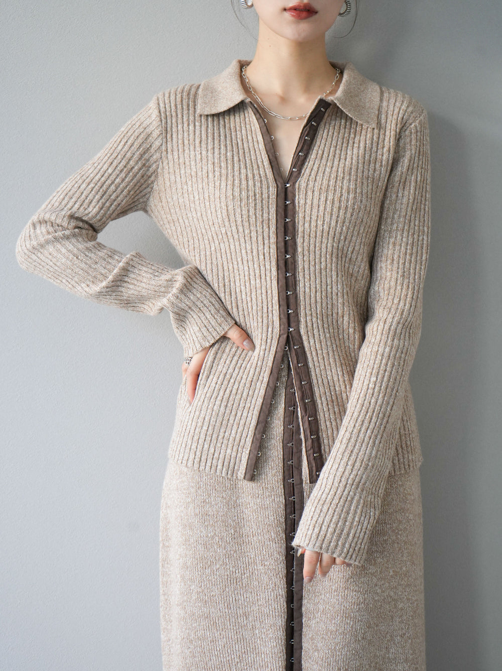 [予約]ホックディティール襟付きニットカーディガン/チャコール