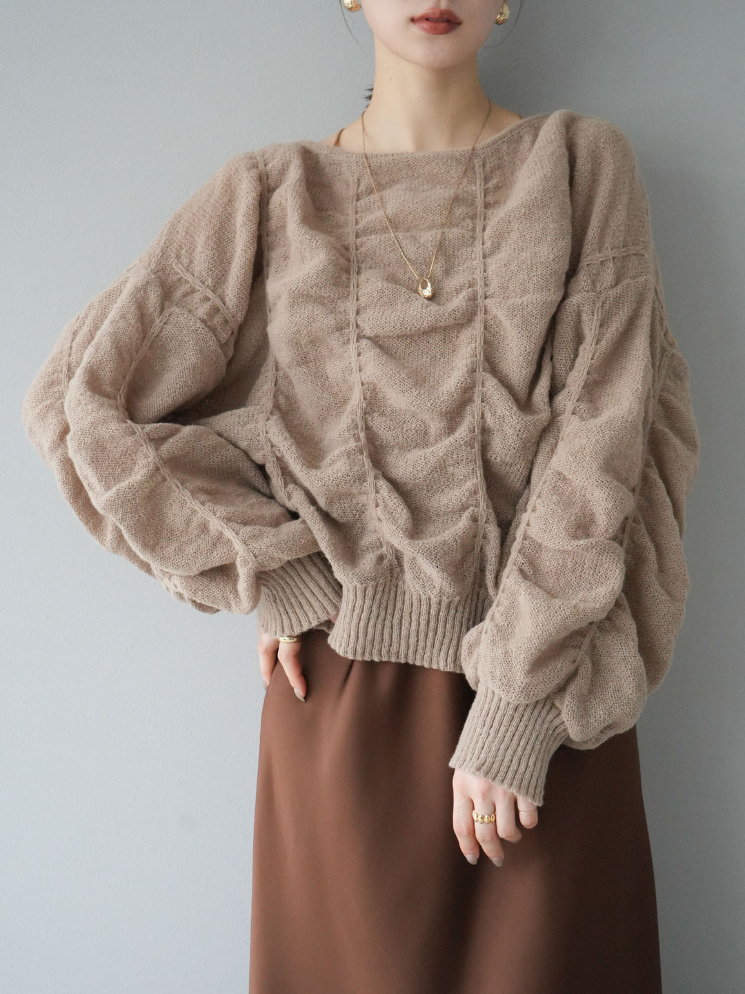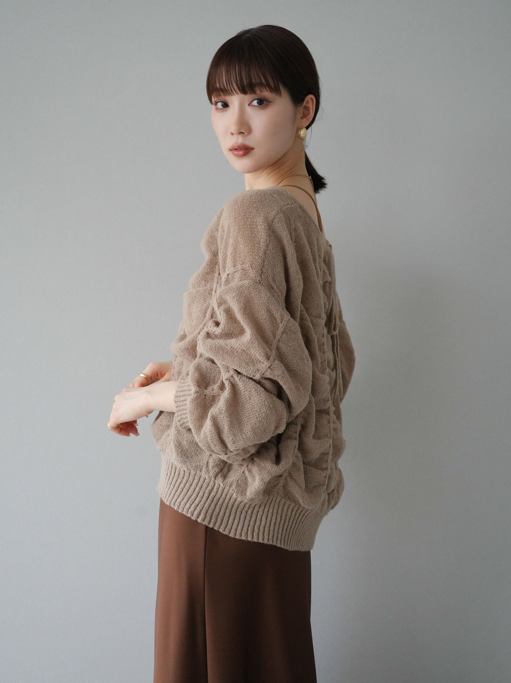 [予約]コード刺繍ルーズニットプルオーバー/ブラウン