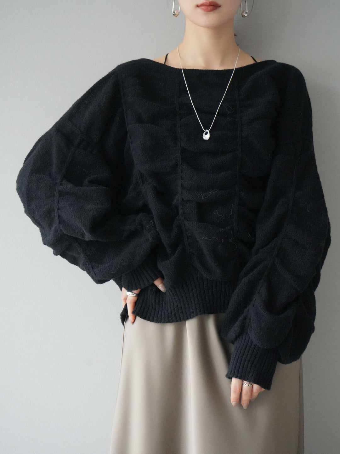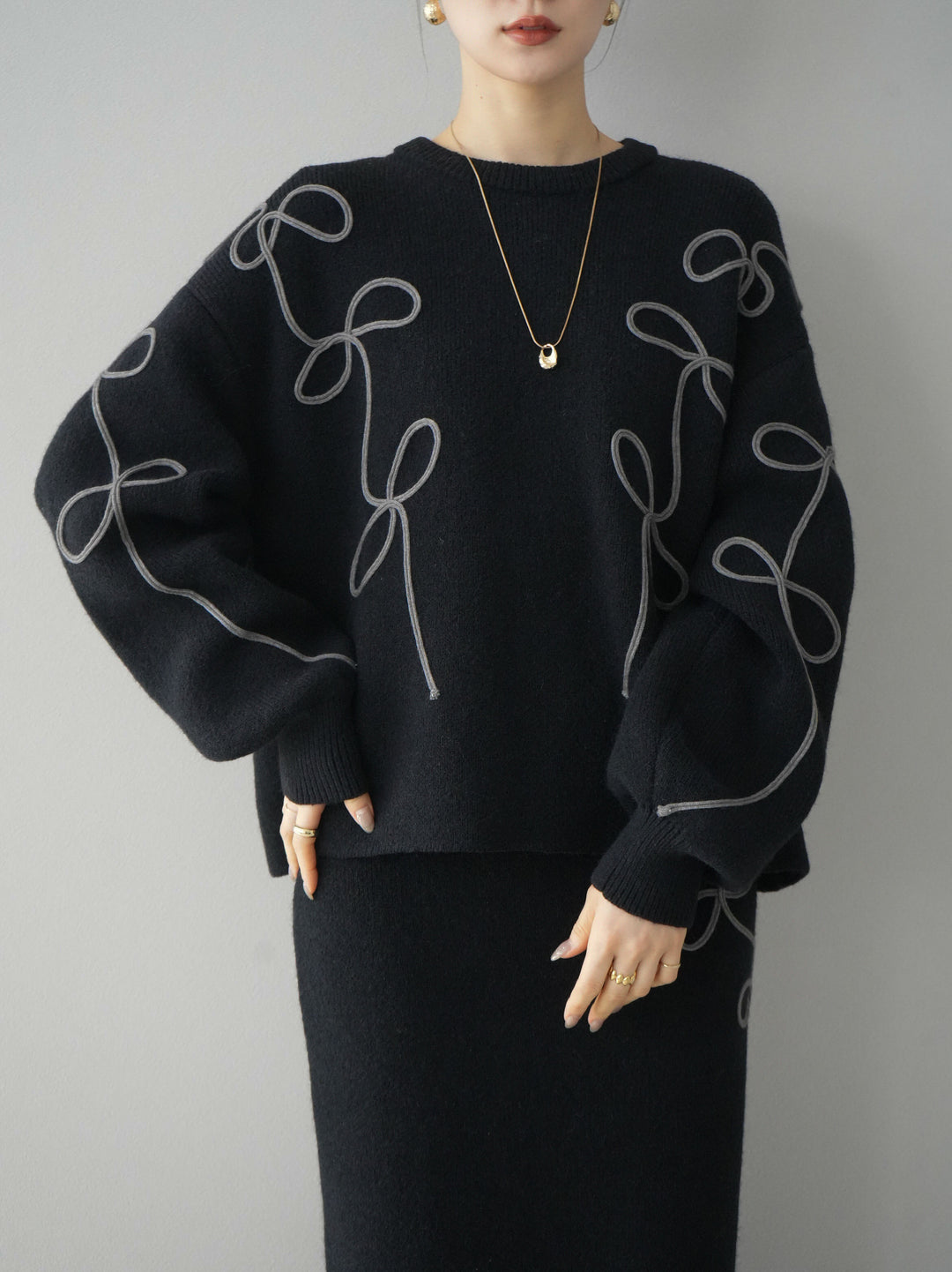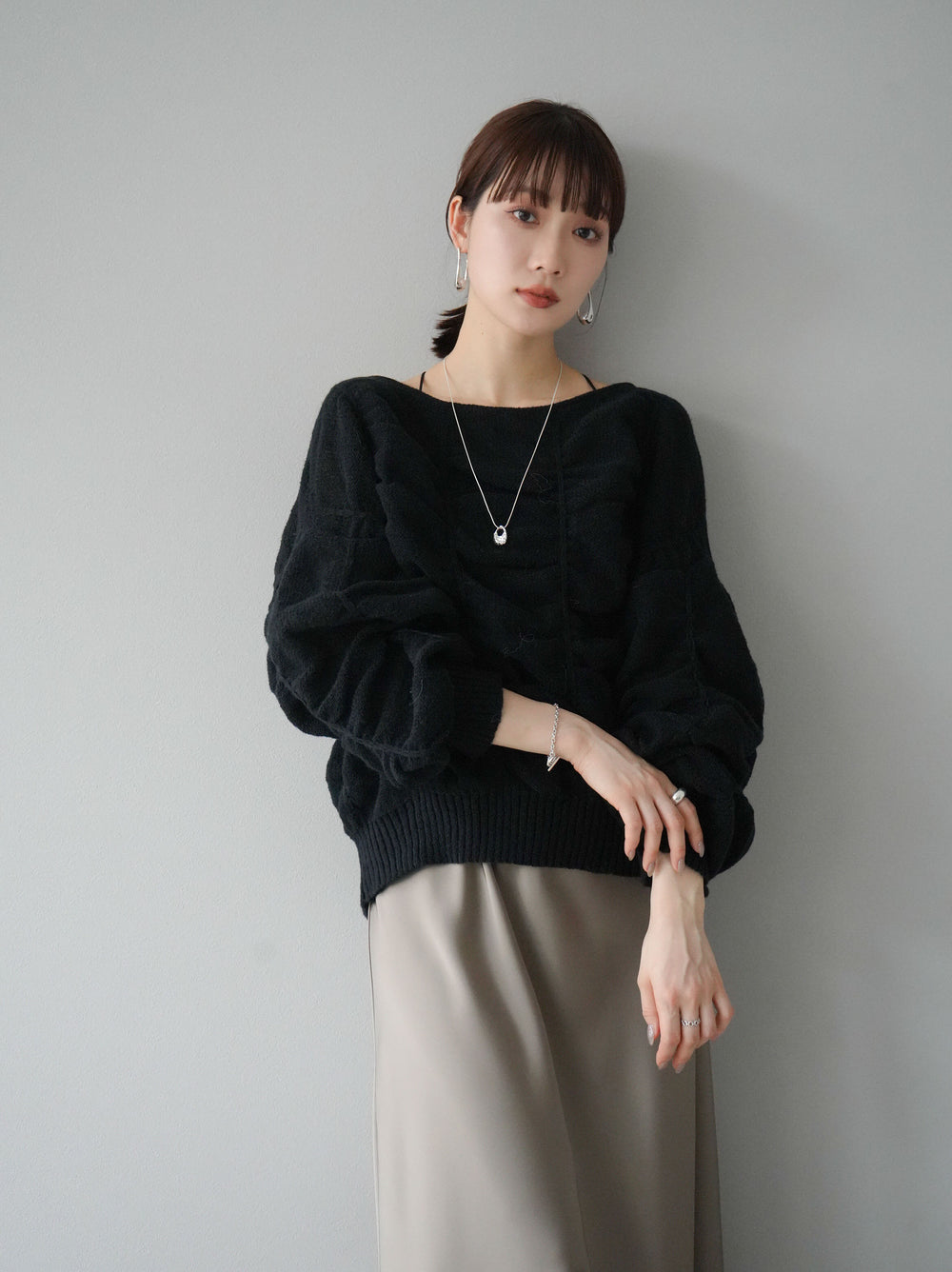 [予約]コード刺繍ルーズニットプルオーバー/ブラック