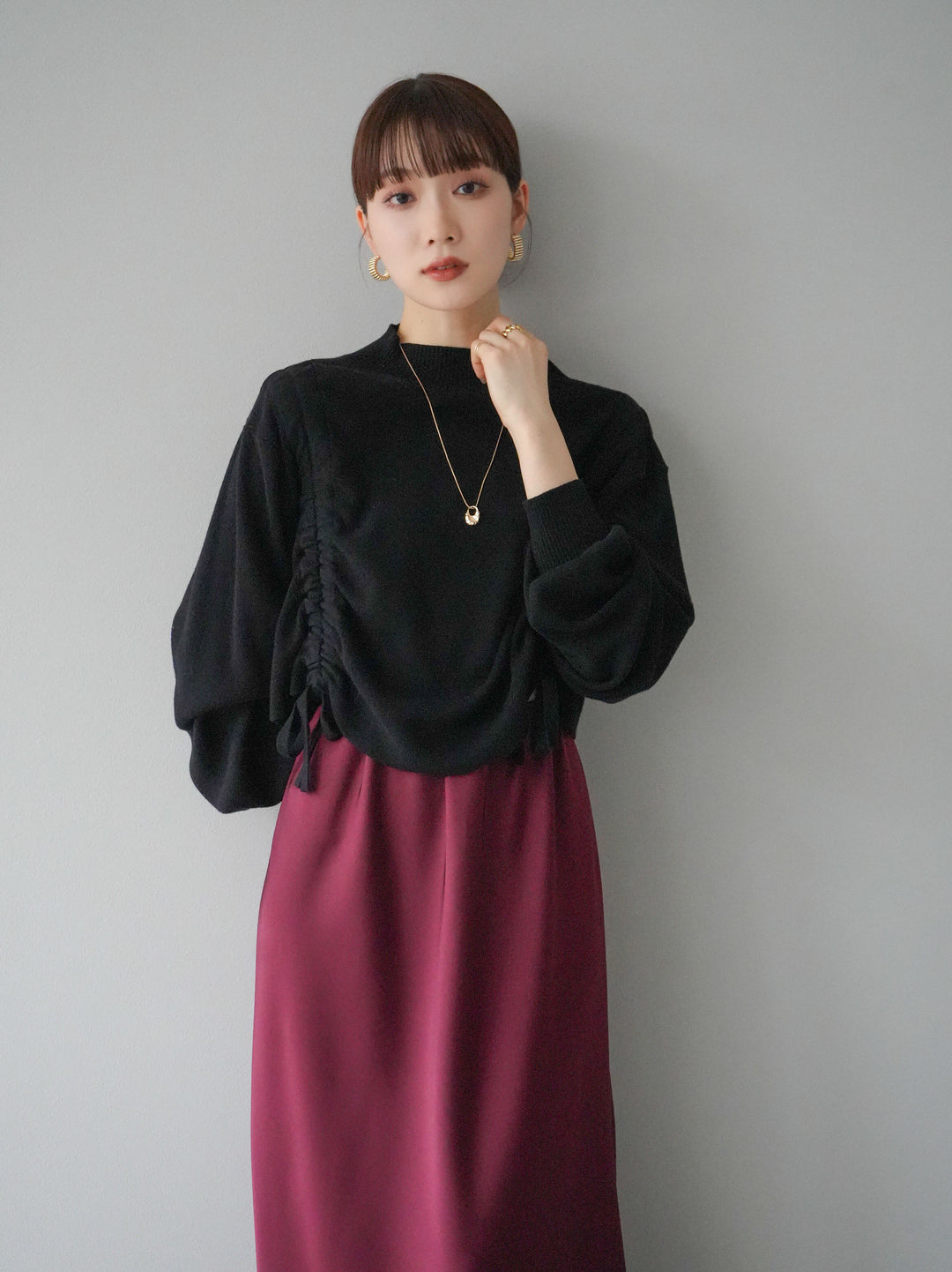 [予約]サイドスリットクルーネックニットプルオーバー/ネイビー