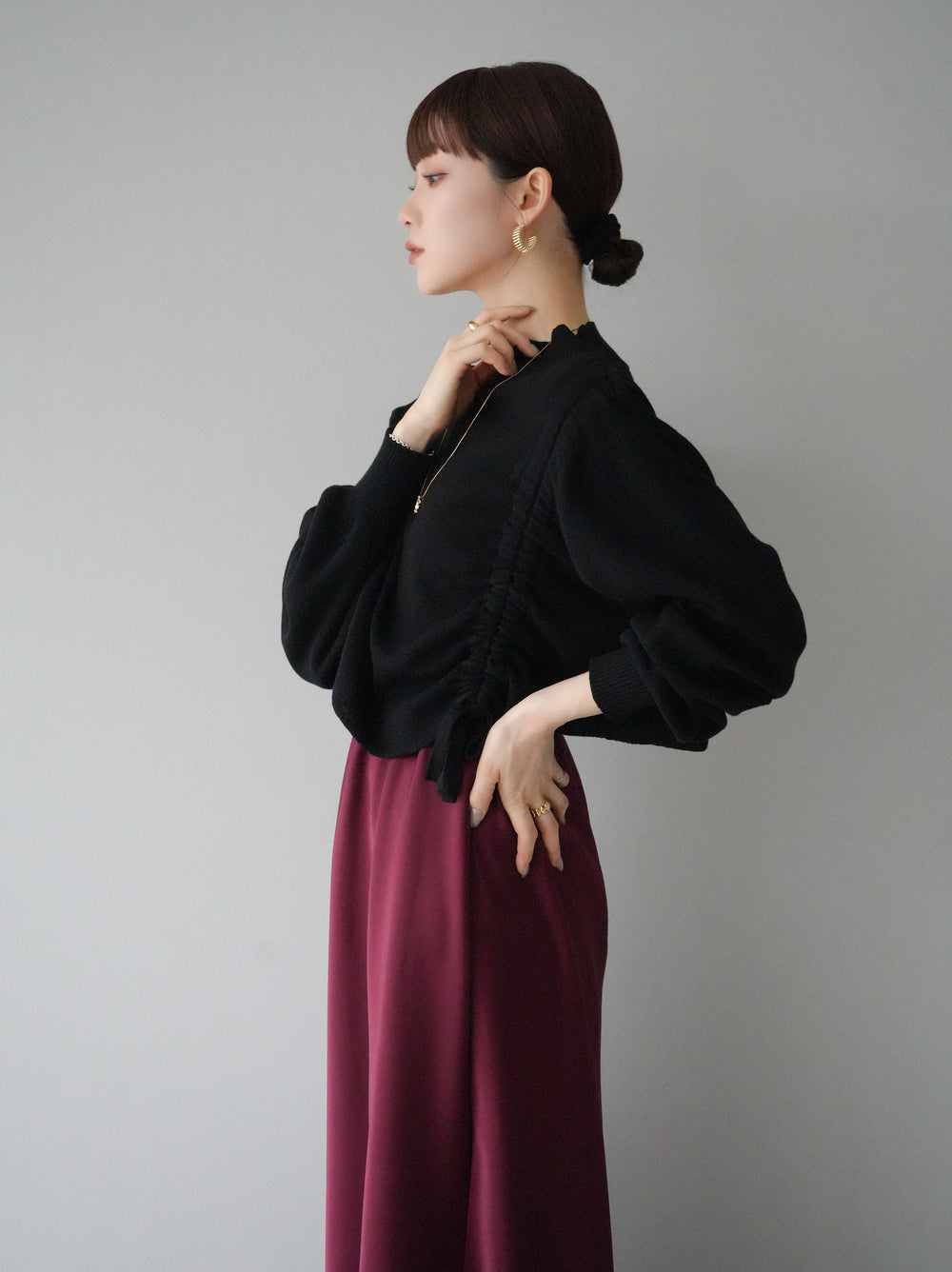 [予約]バックオープンシャーリングニットプルオーバー/ブラック