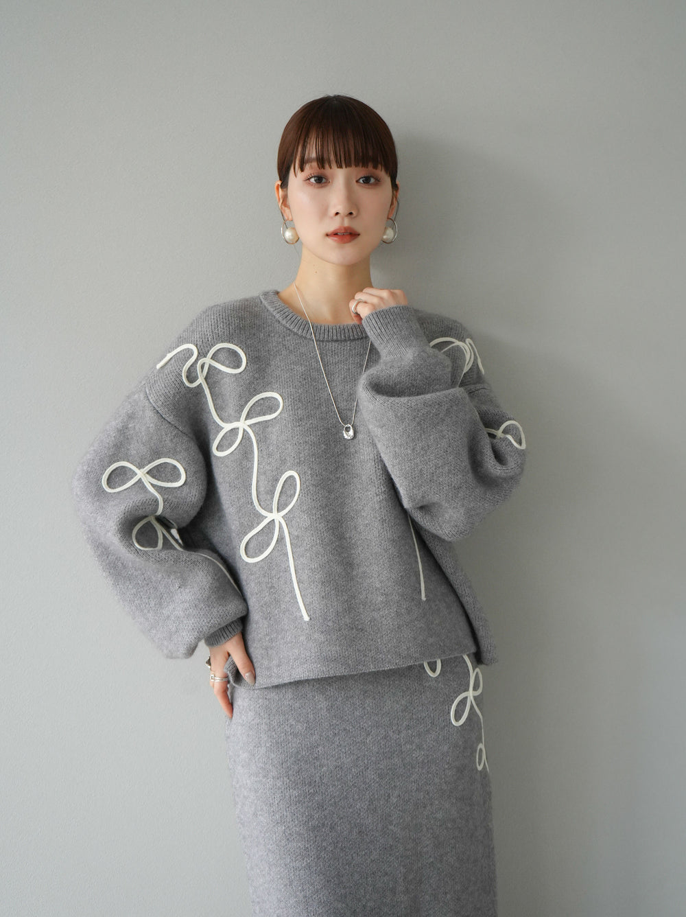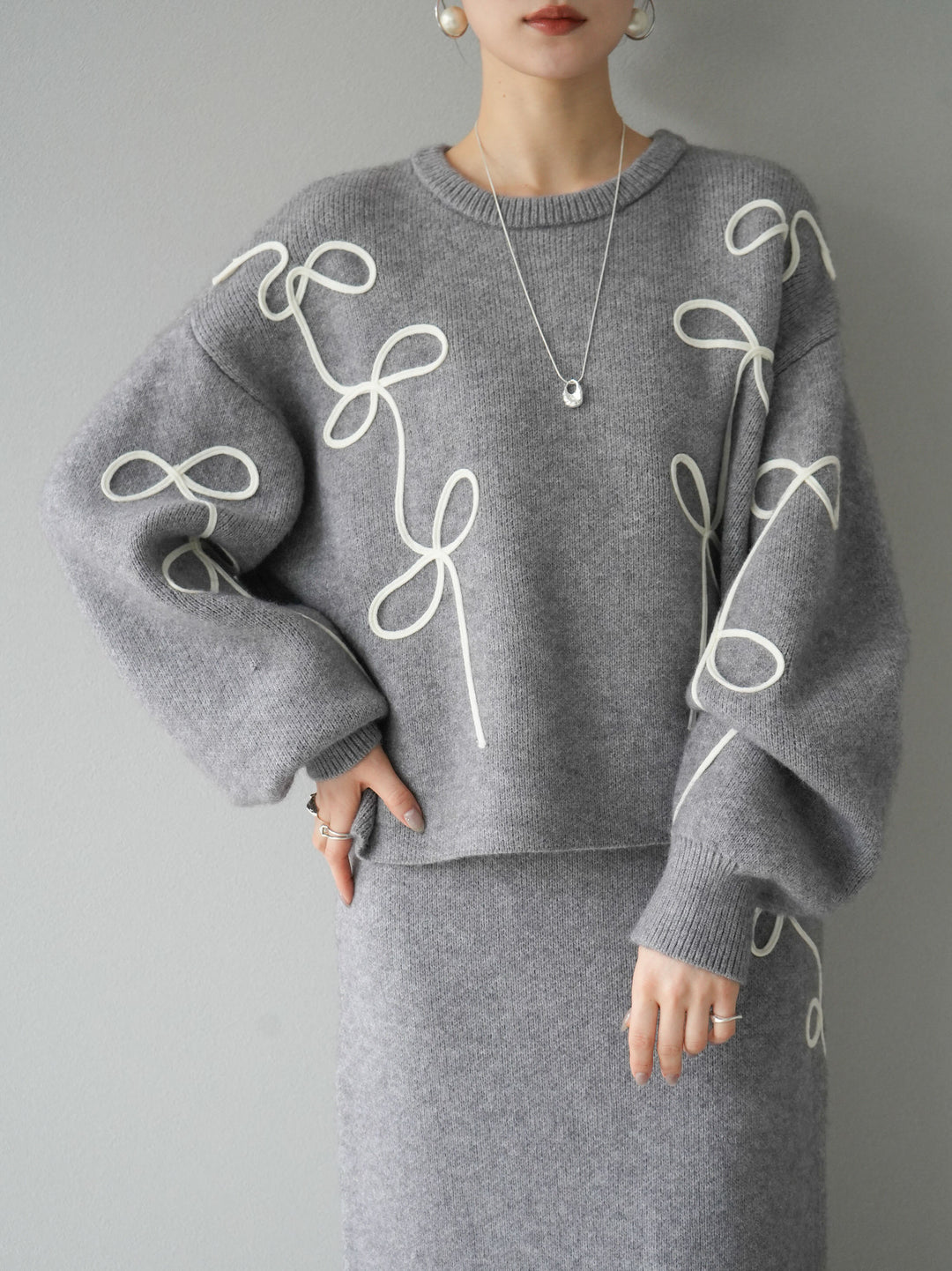 [予約]コード刺繍ルーズニットプルオーバー/グレー
