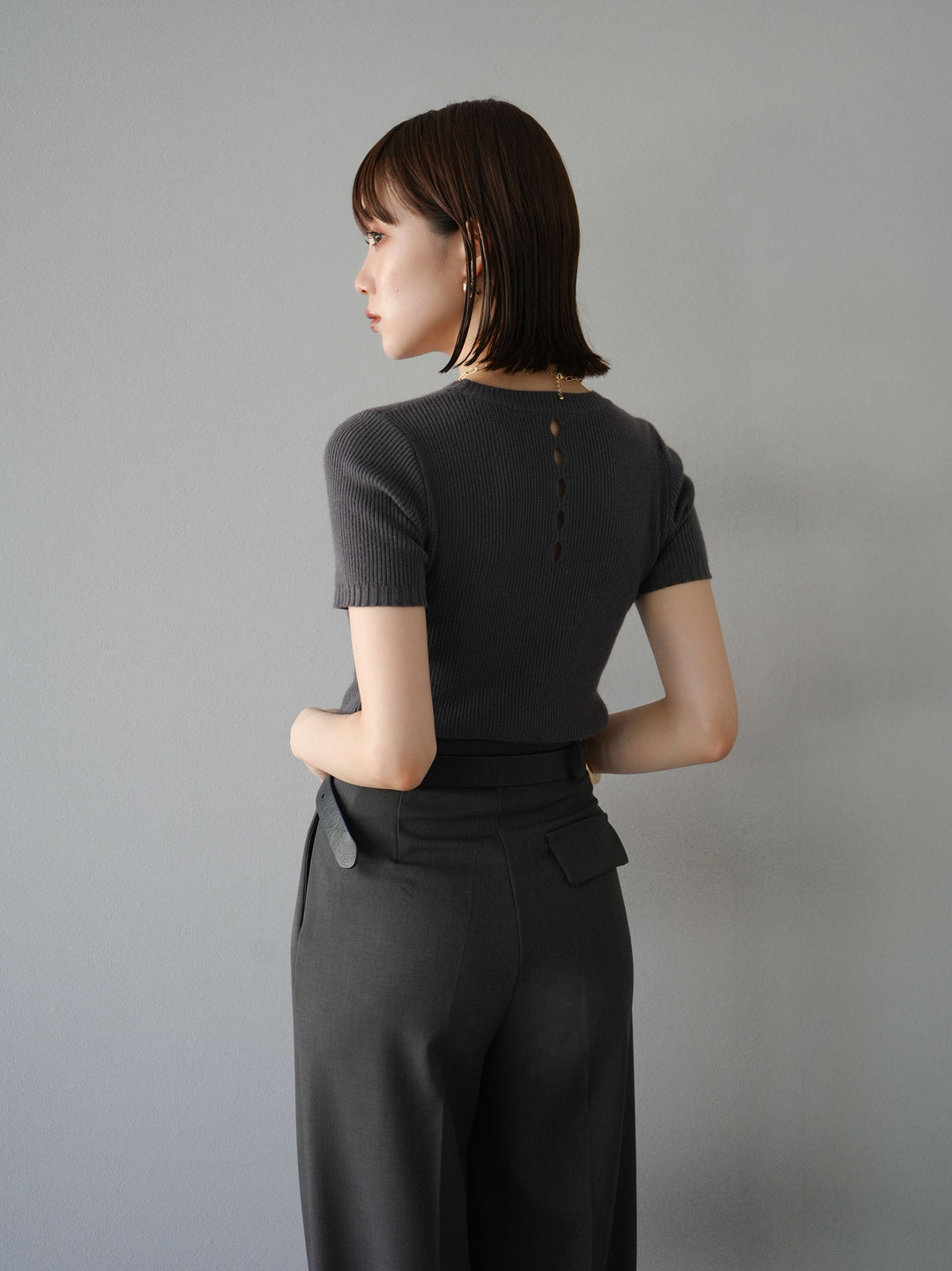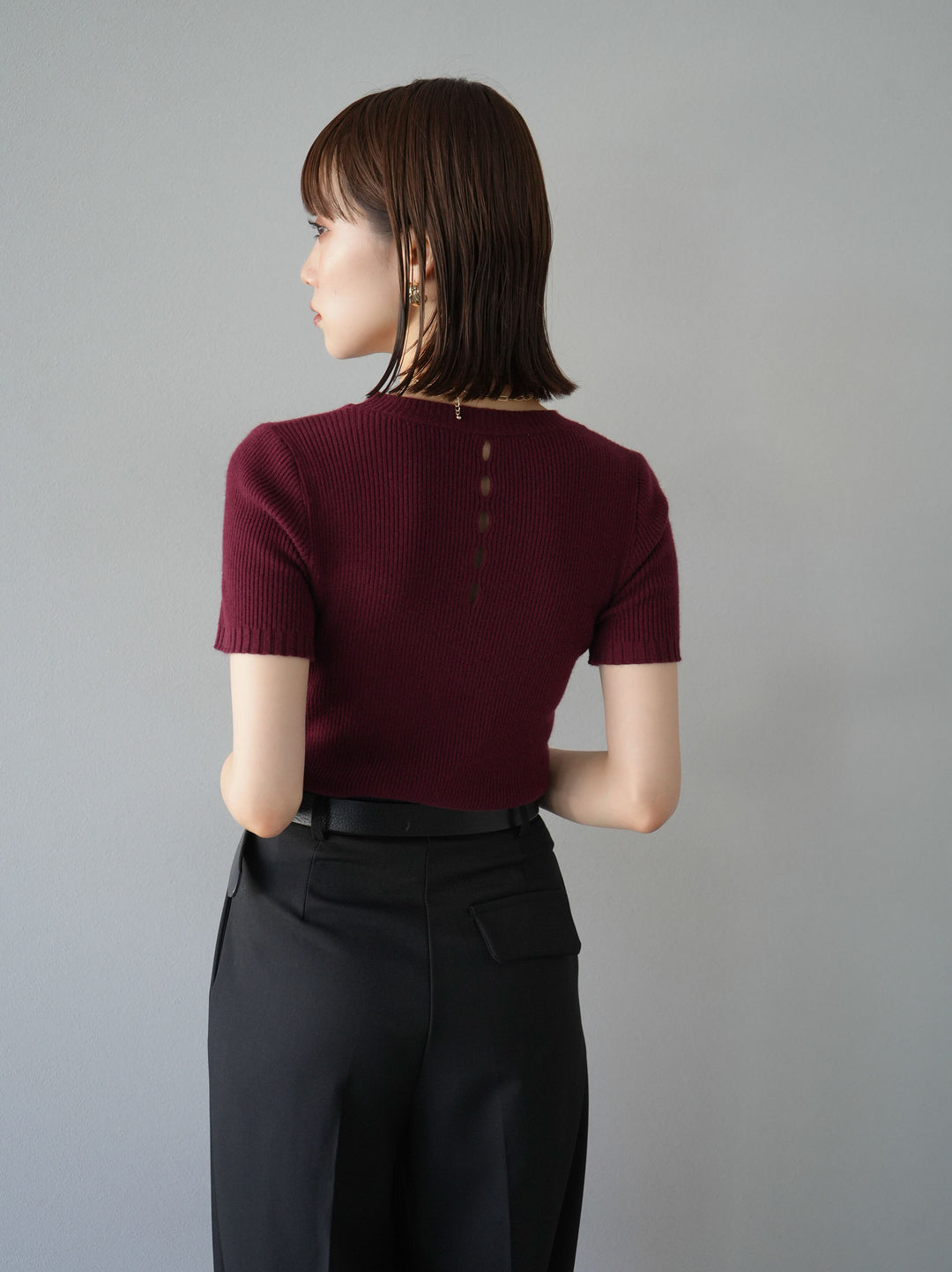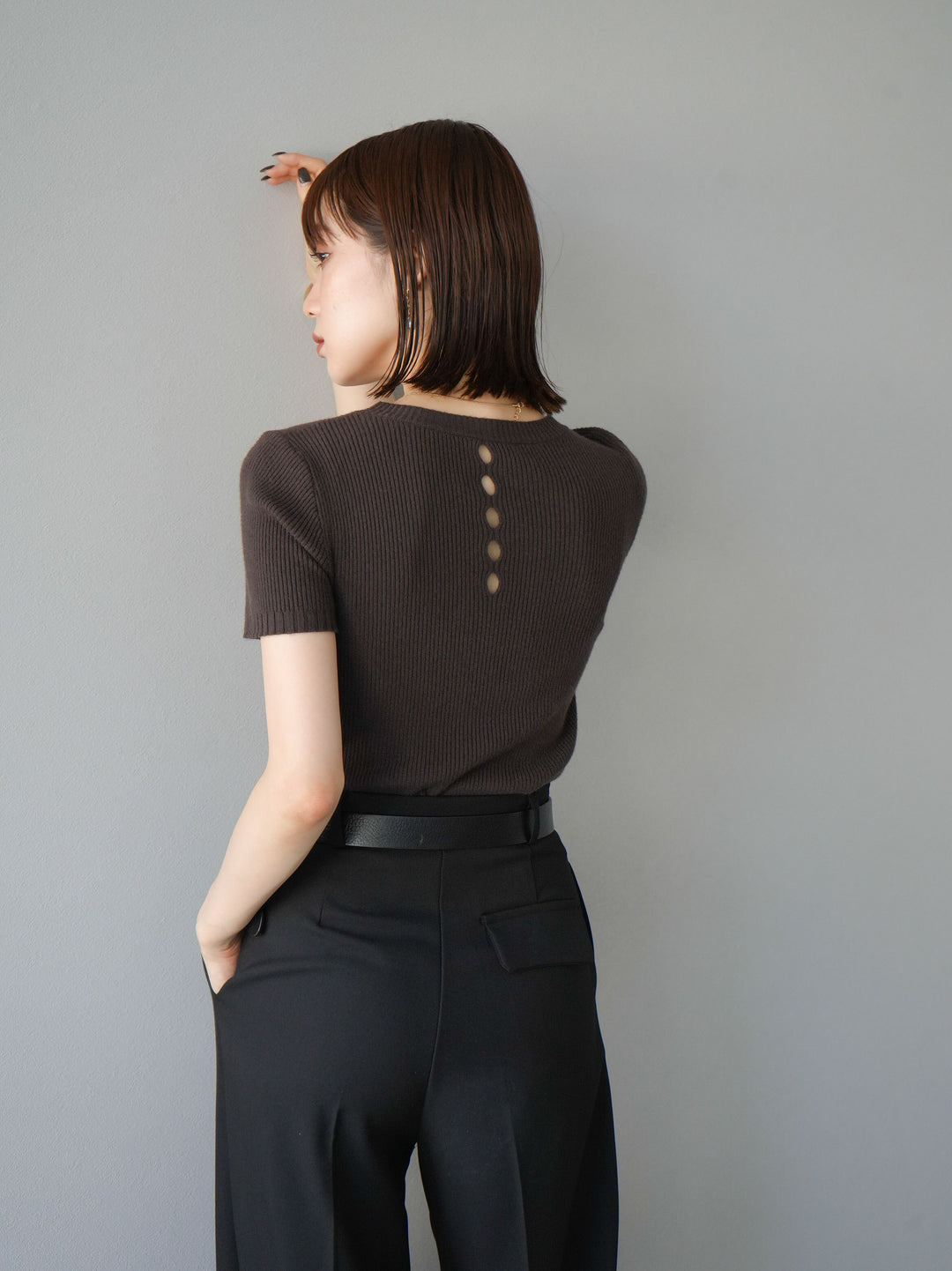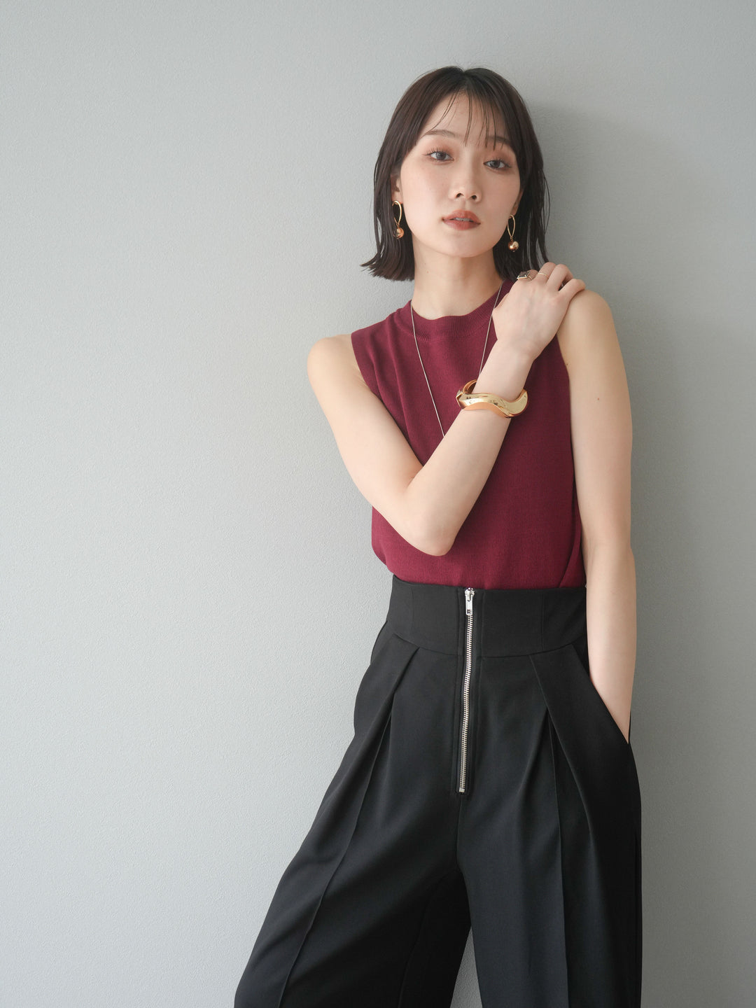 [予約]袖ボタンハイネック配色リブニットトップス/black