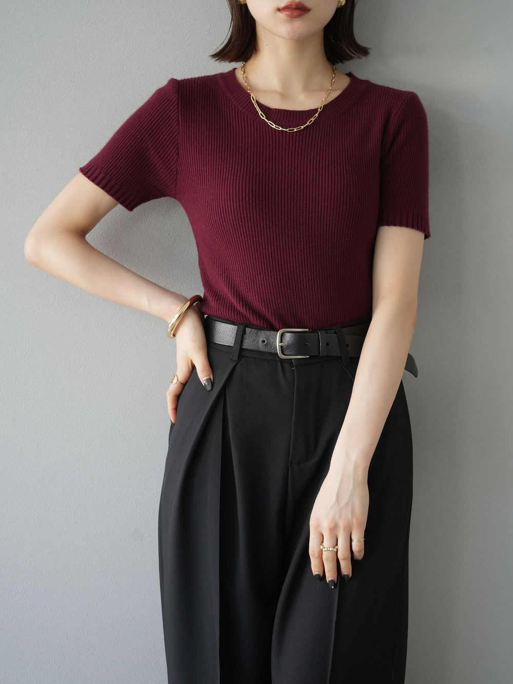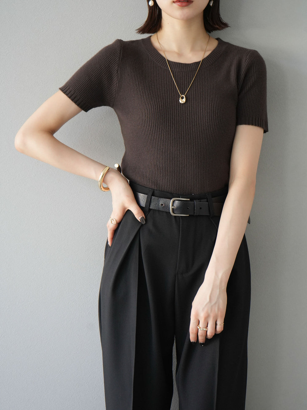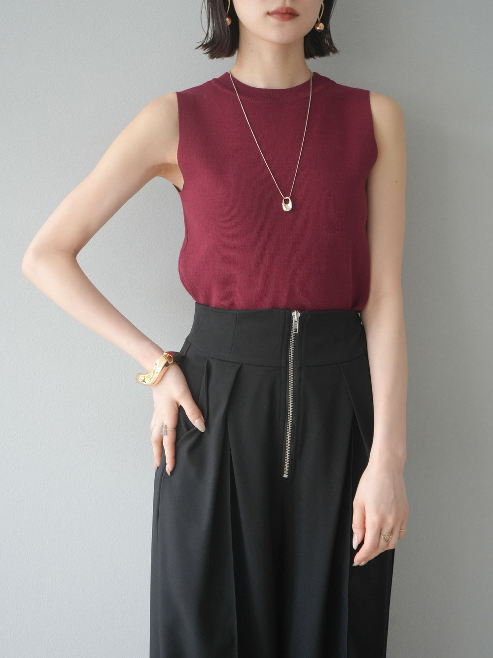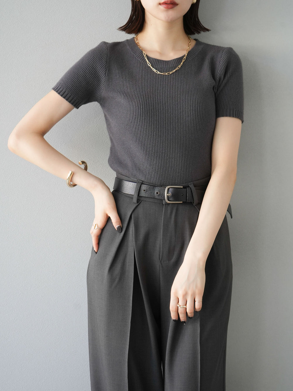 [予約]袖ボタンハイネック配色リブニットトップス/black