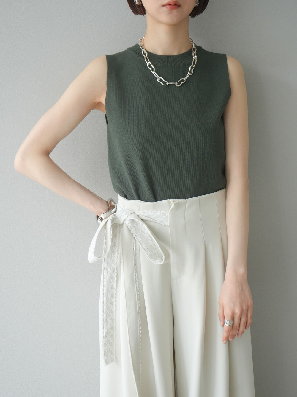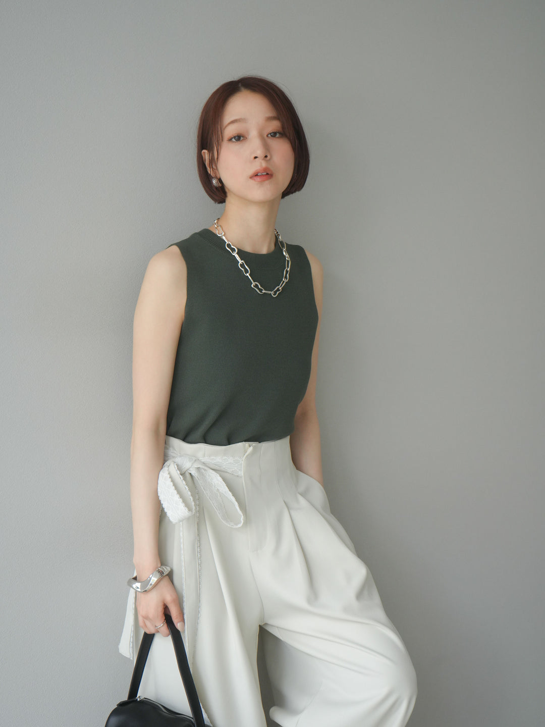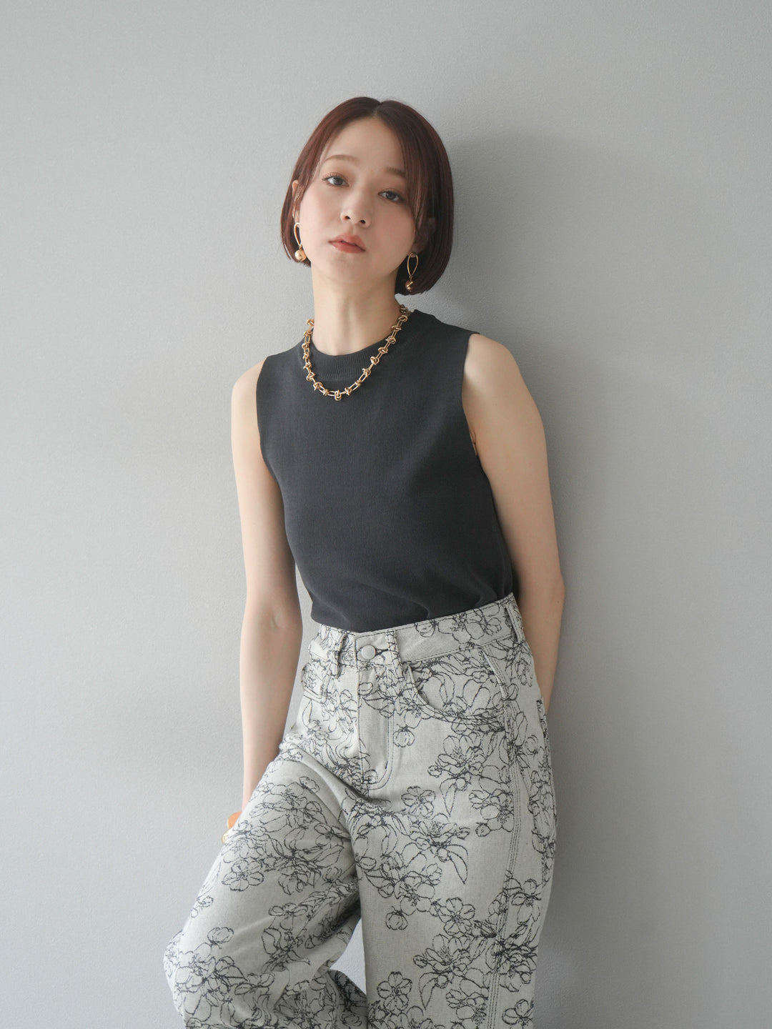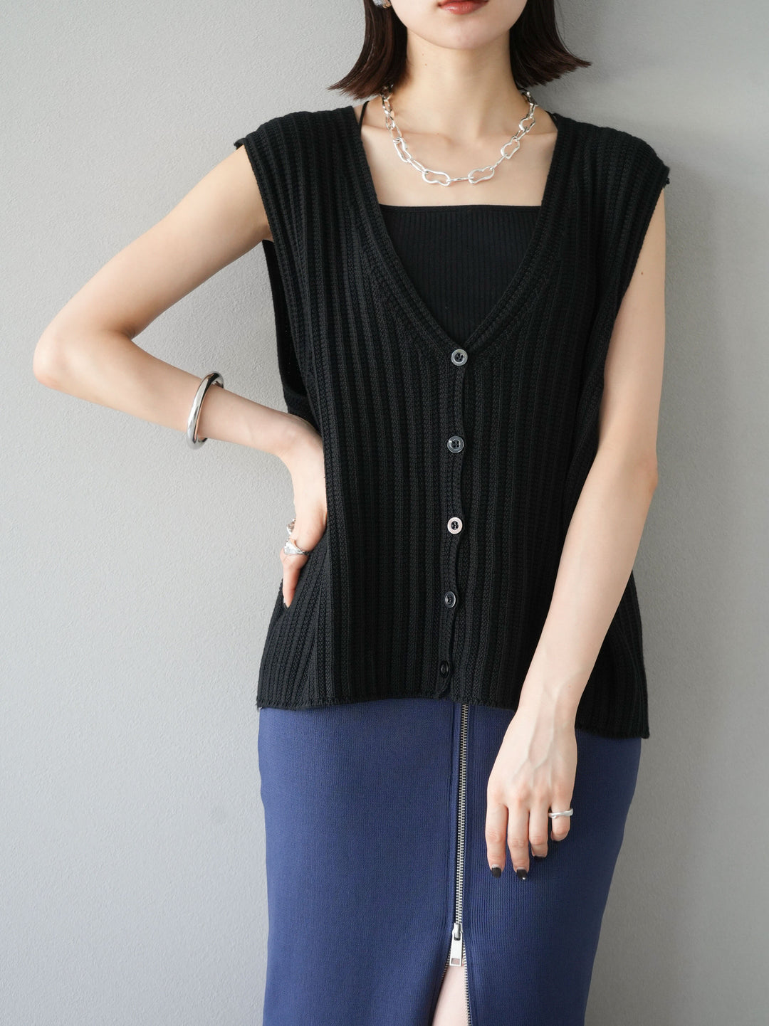 [予約]袖ボタンハイネック配色リブニットトップス/black