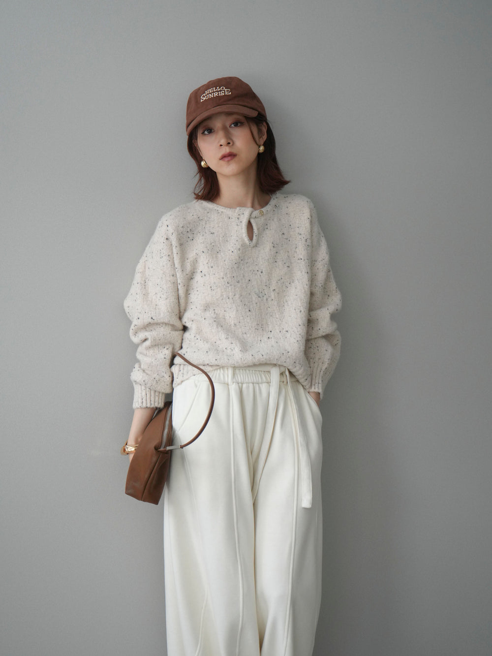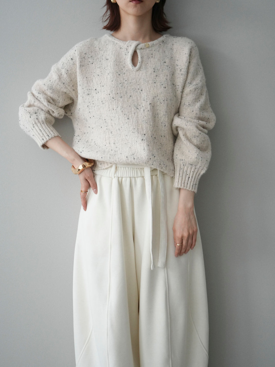 [予約]ツイストネックラメネップヤーンニットプルオーバー/ivory