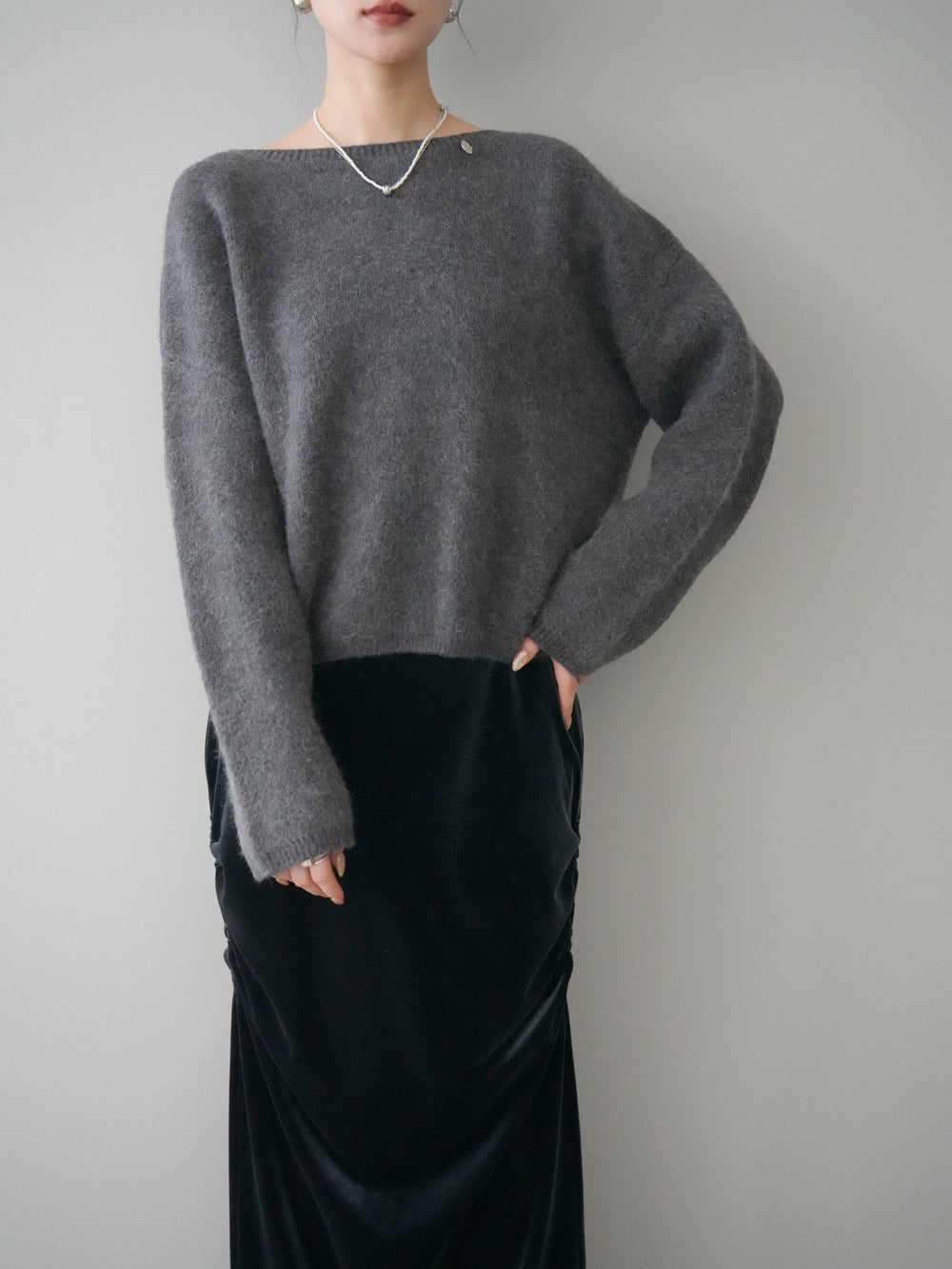 [予約]アンゴラタッチボートネッククロップドプルオーバー/charcoal