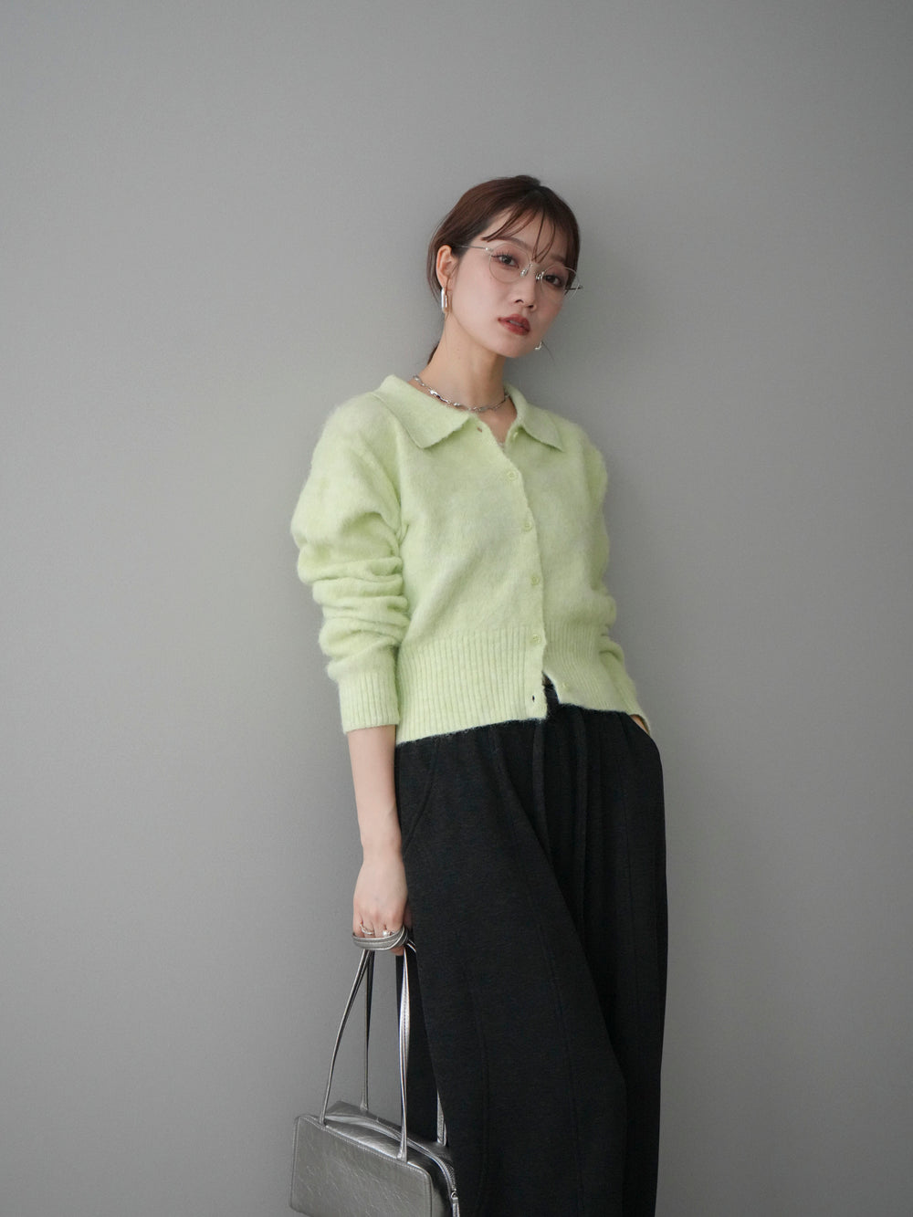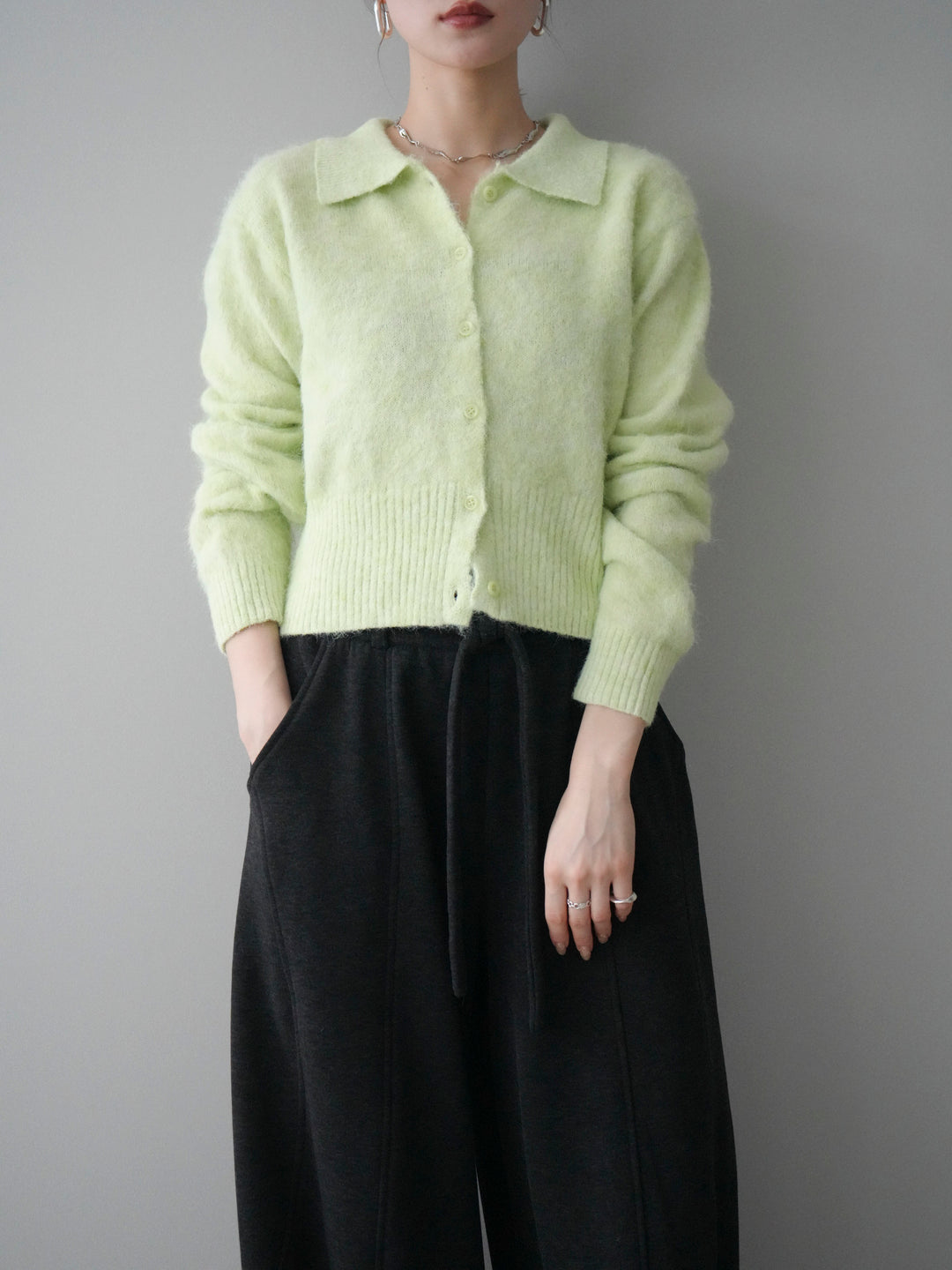 [予約]モヘア衿付きボタンプルオーバー/lime