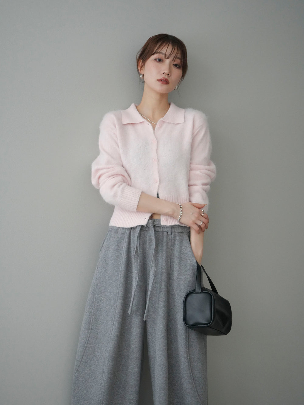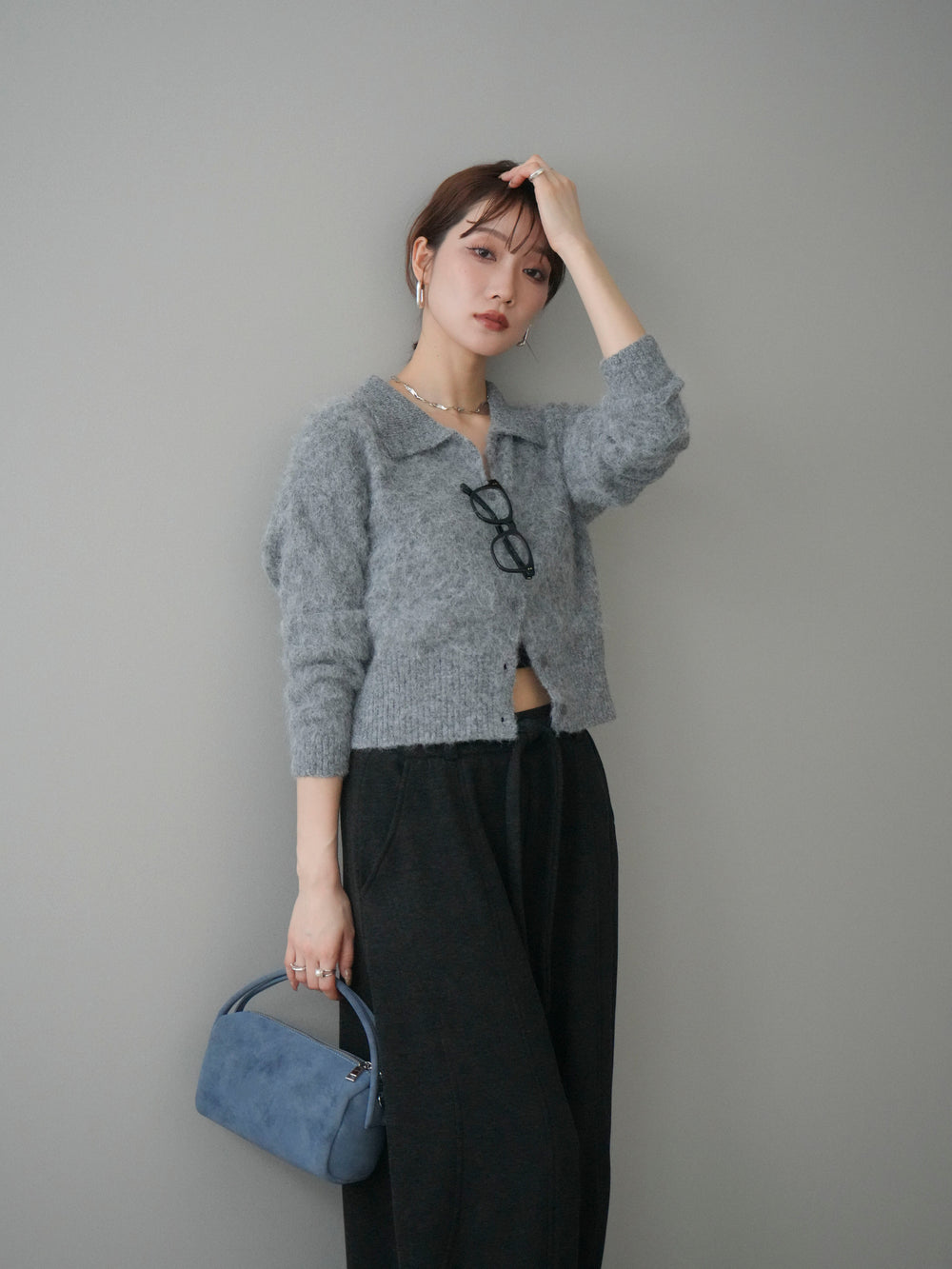 [予約]モヘア衿付きボタンプルオーバー/charcoal