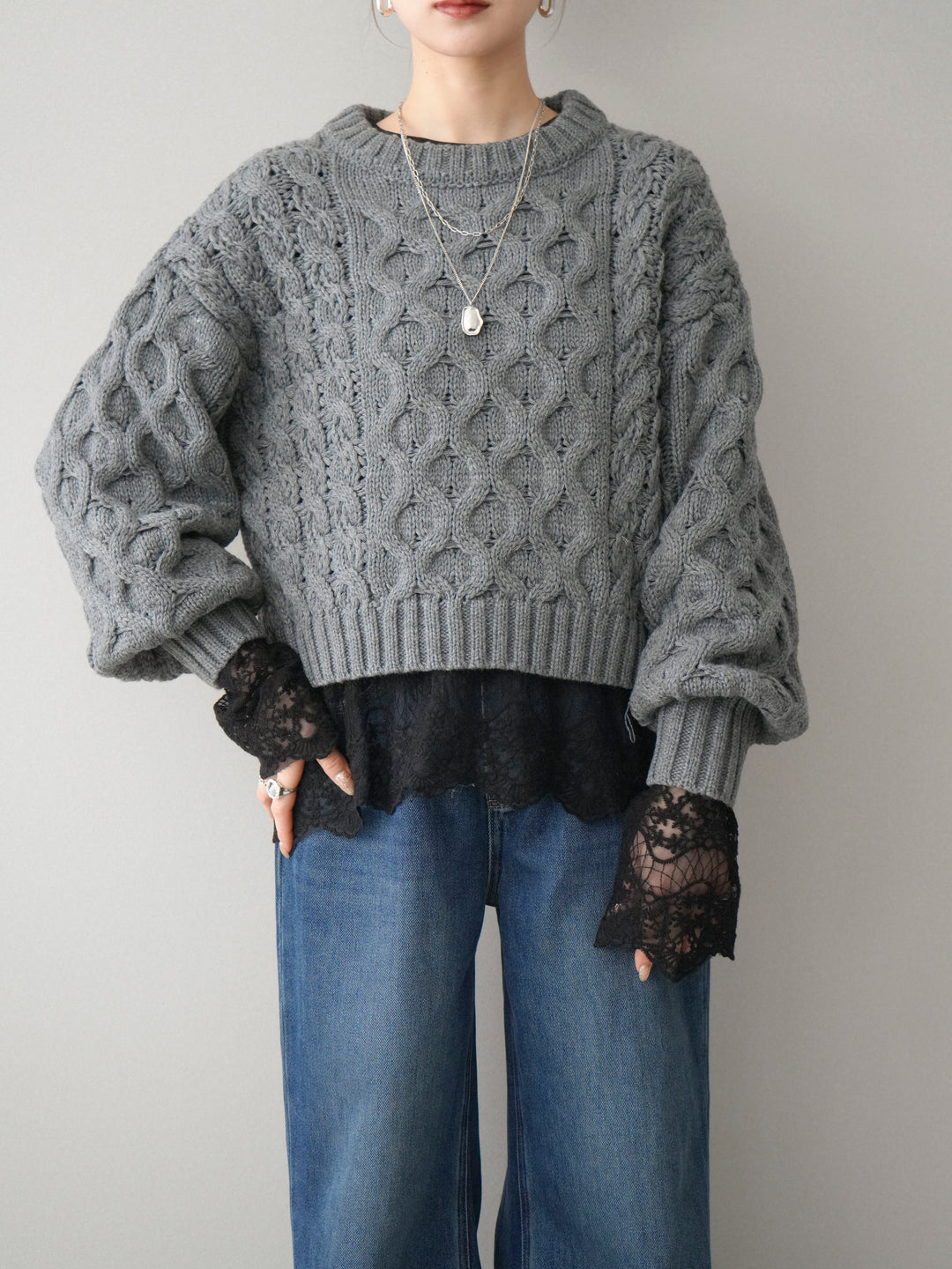 [予約]バルキーケーブルクロップドニットプルオーバー/charcoal