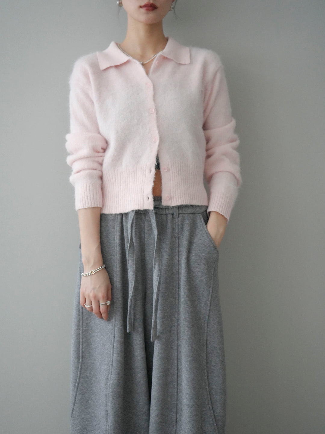 [予約]モヘア衿付きボタンプルオーバー/pink
