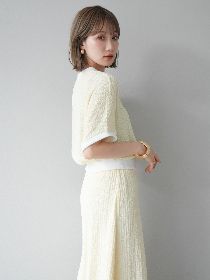 [SET]バイカラー膨れジャガードカットプルオーバー+バイカラー膨れジャガードカットフレアスカート(2set)