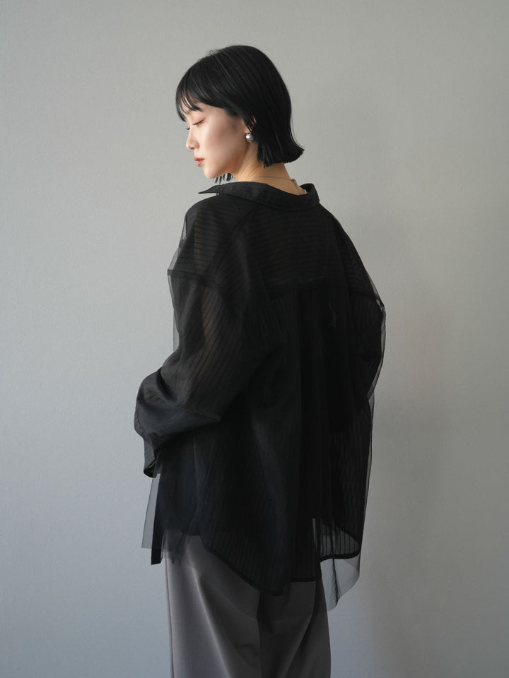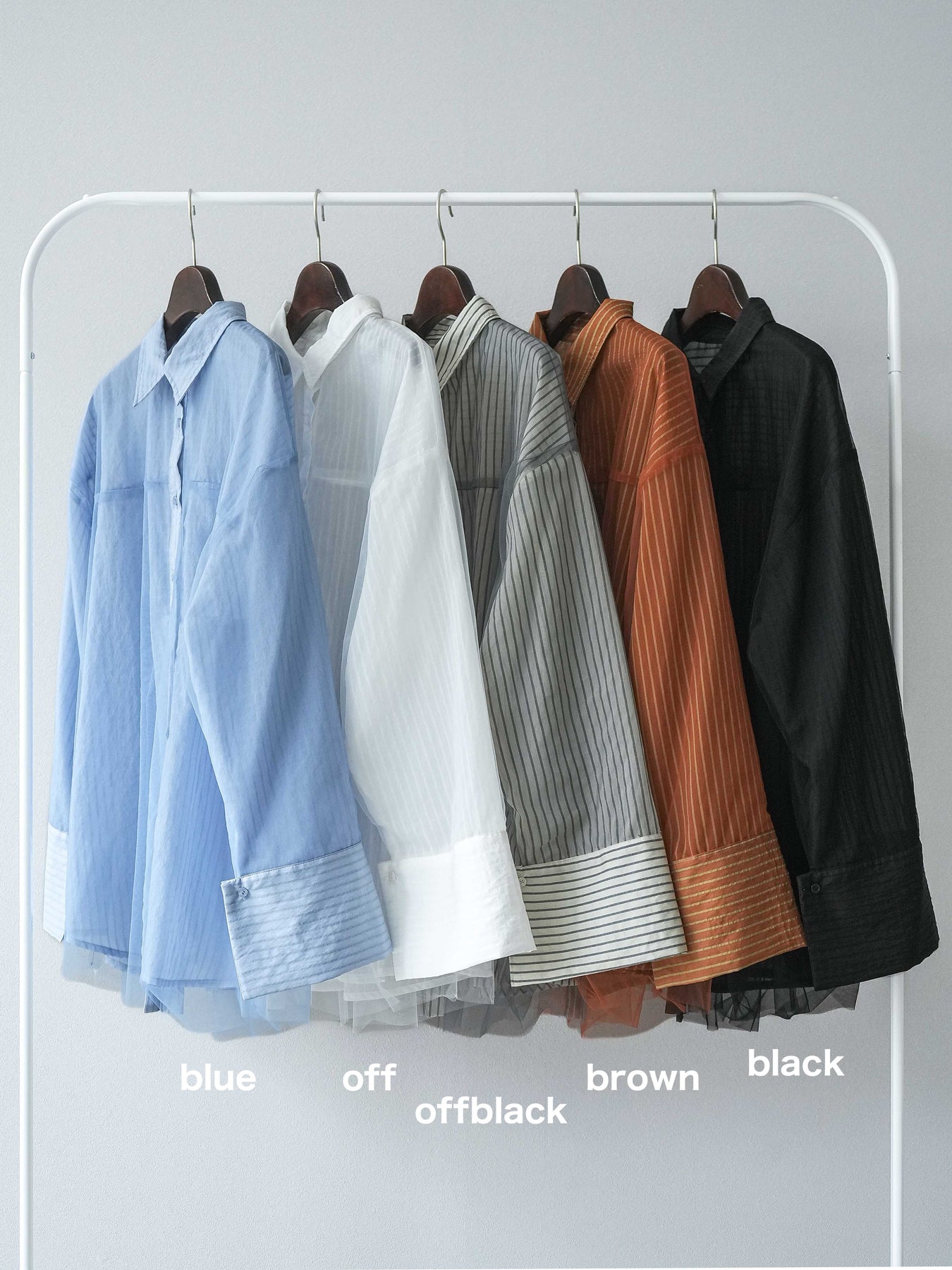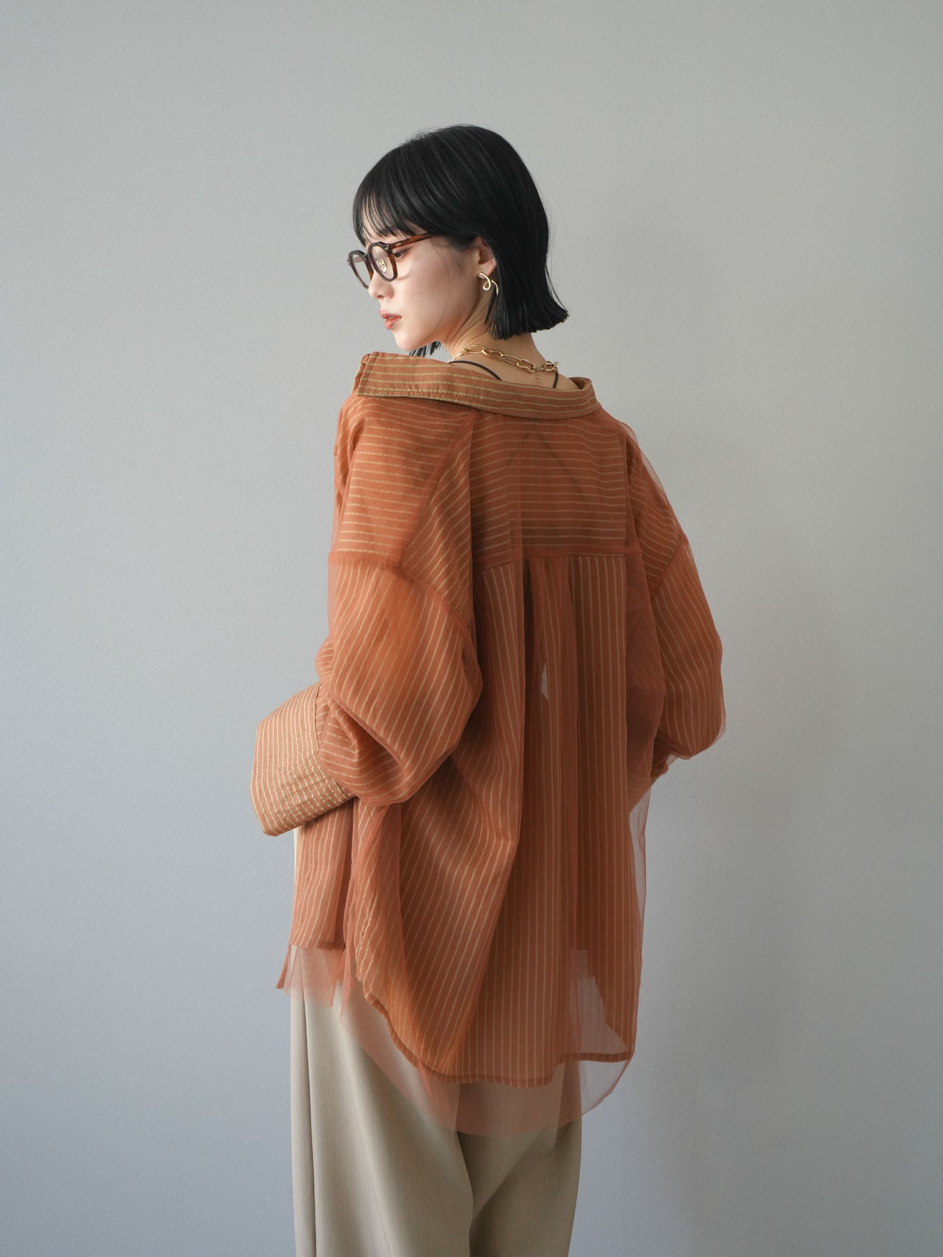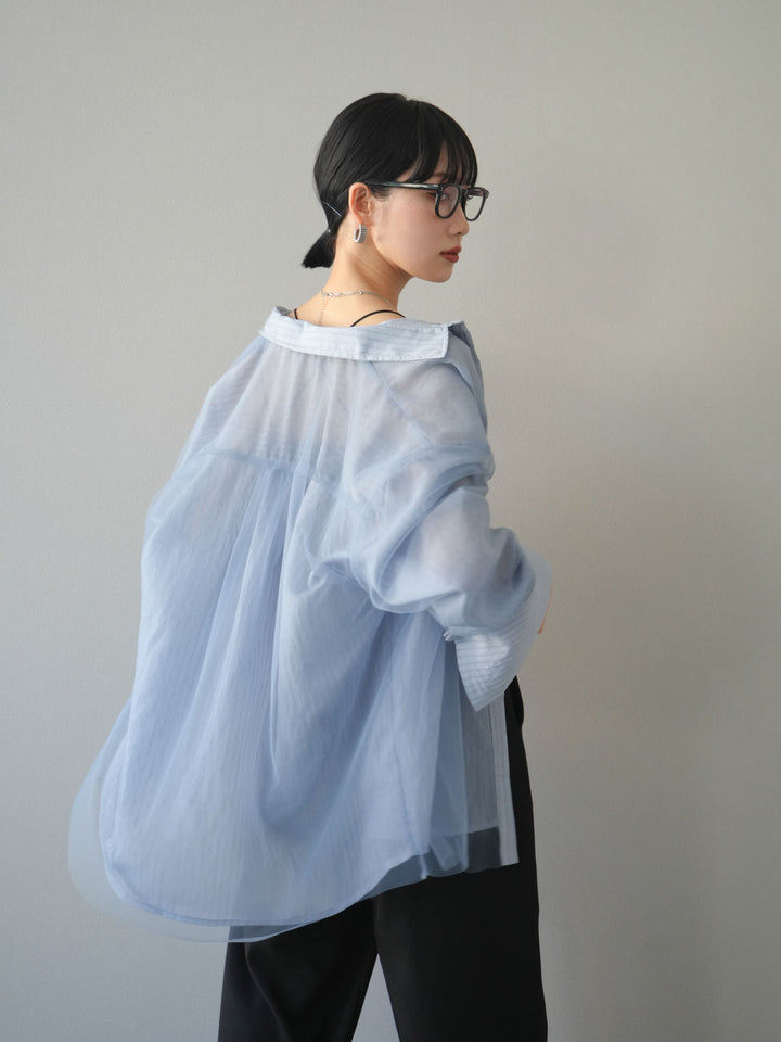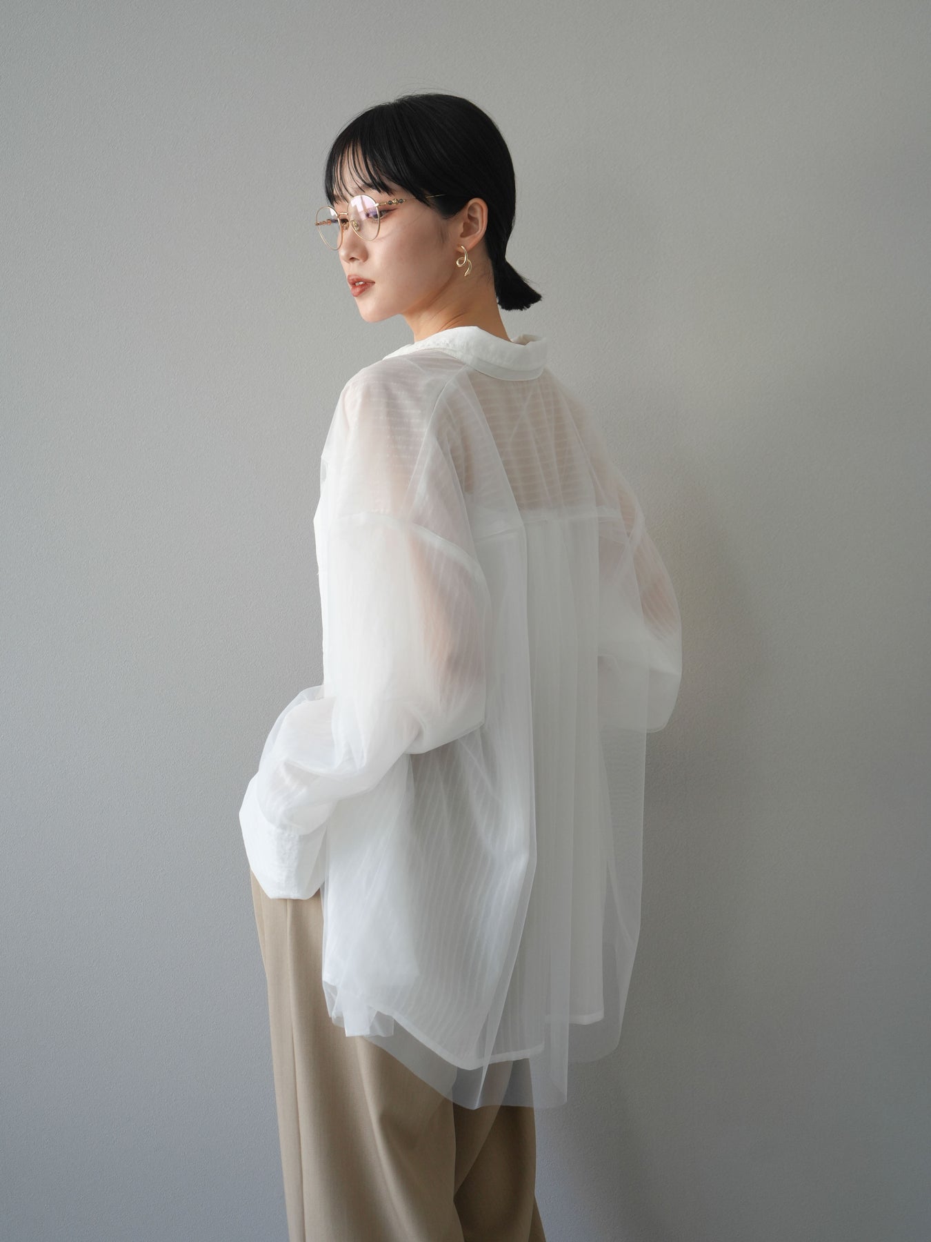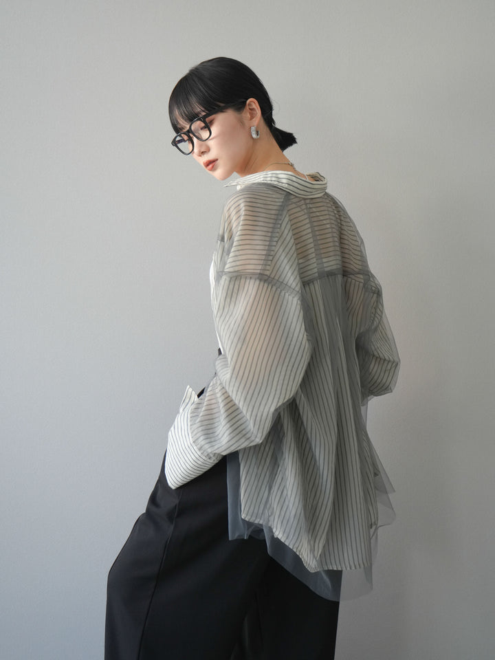 ◆ [予約]チュールドッキングシアーストライプビッグカフスオーバーサイズシャツ