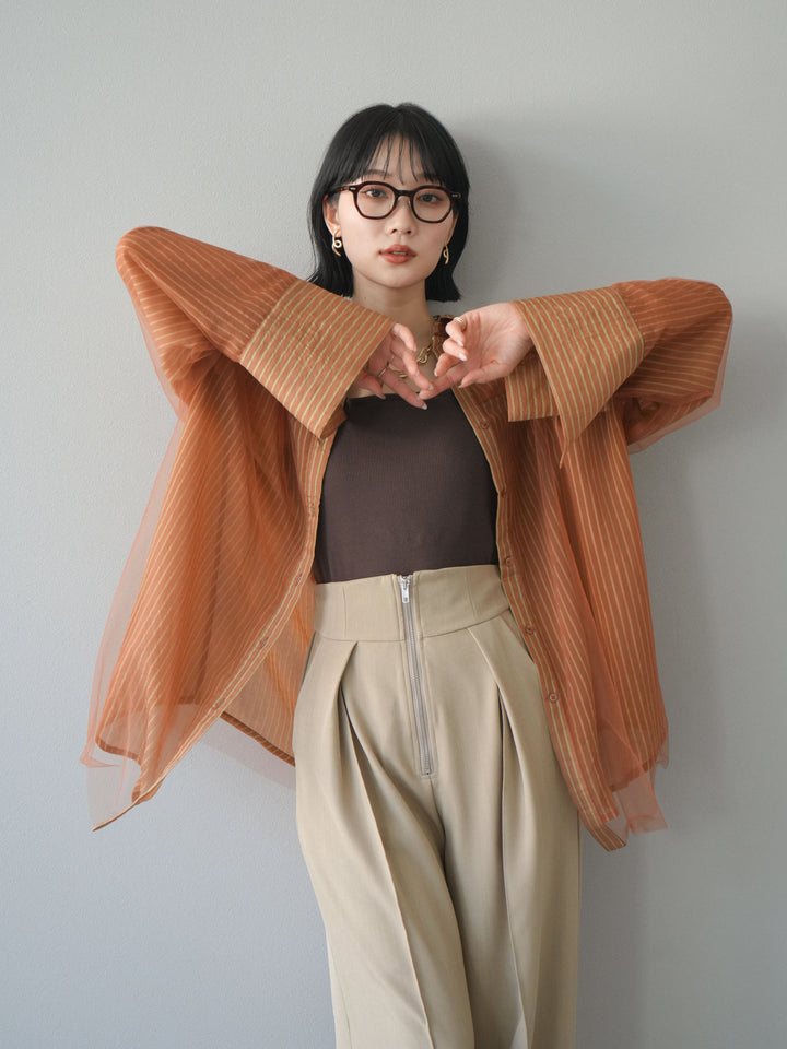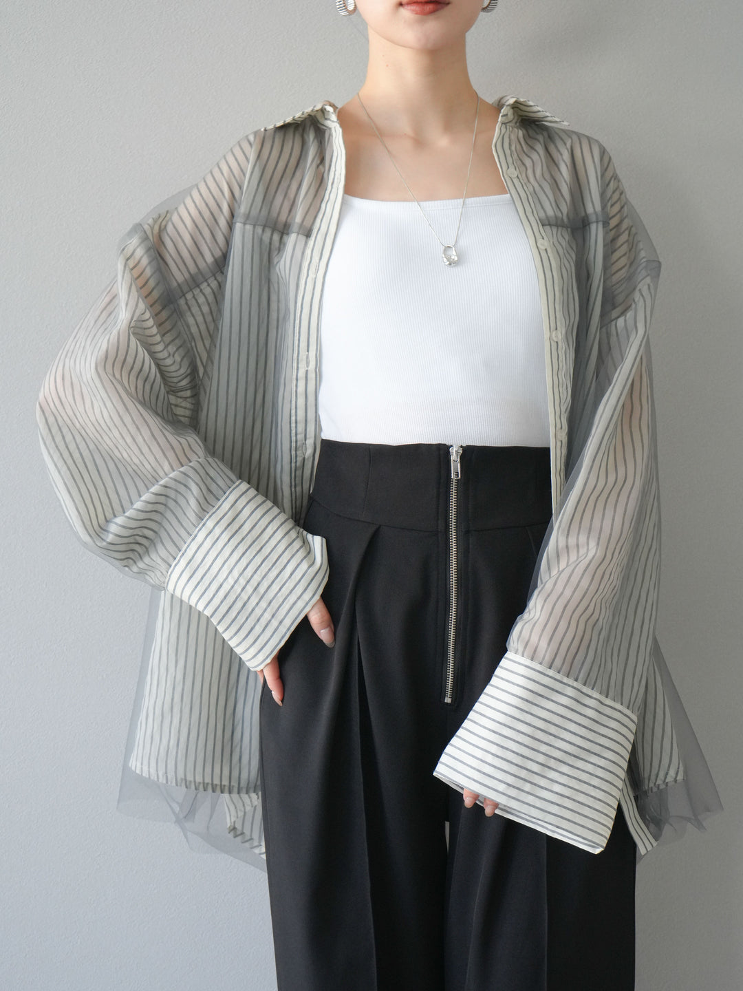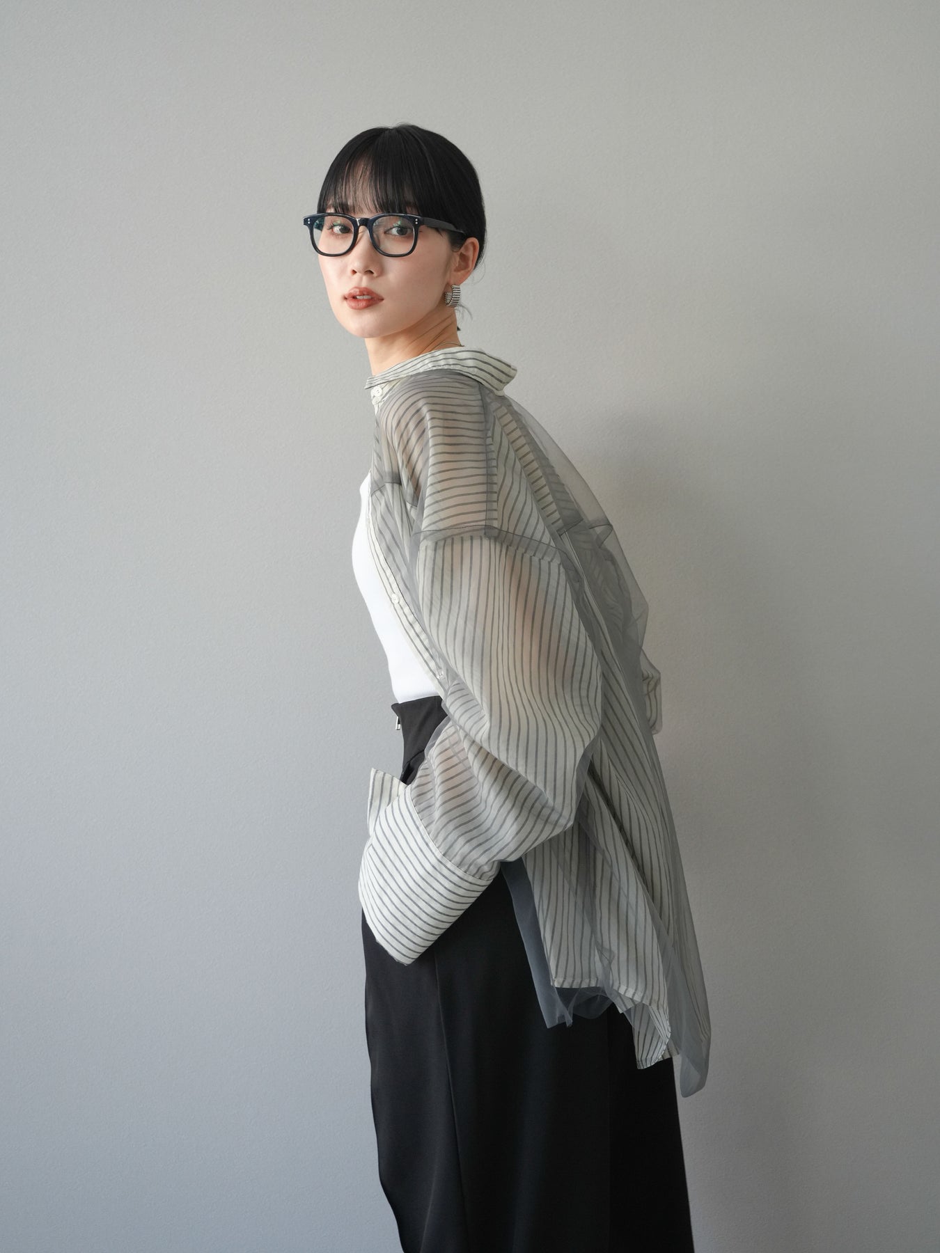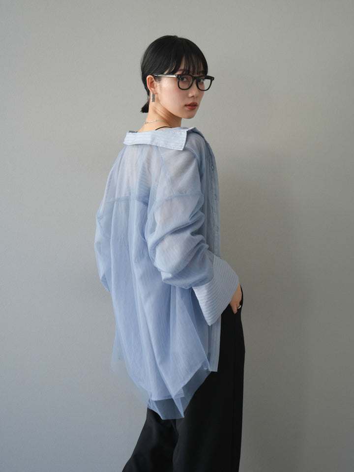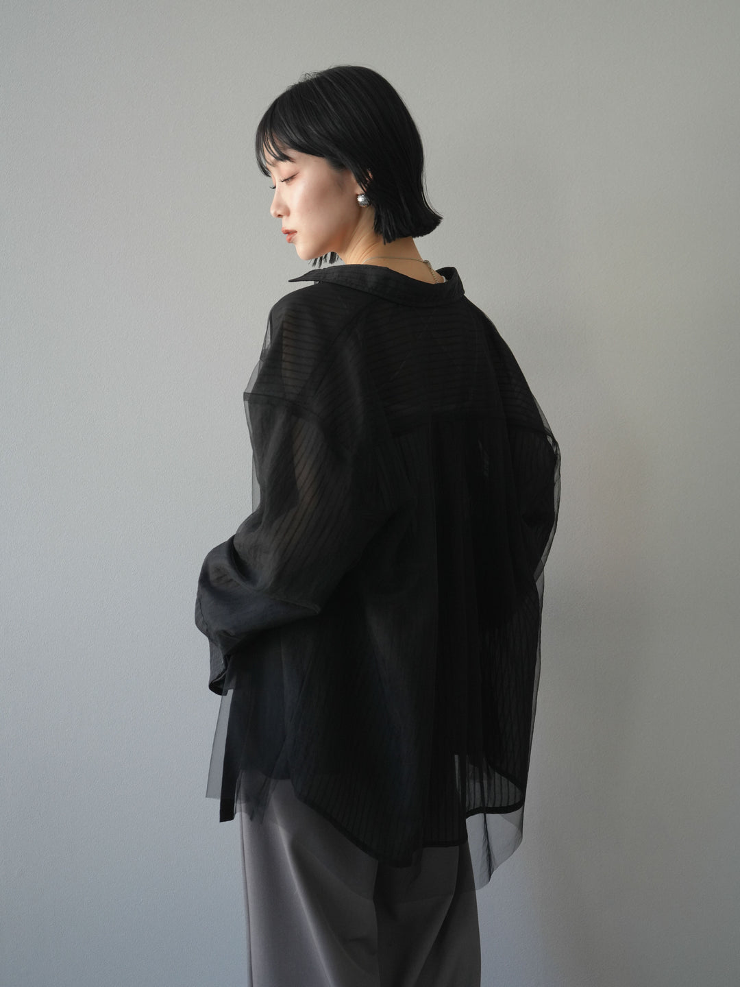 ◆ [予約]チュールドッキングシアーストライプビッグカフスオーバーサイズシャツ