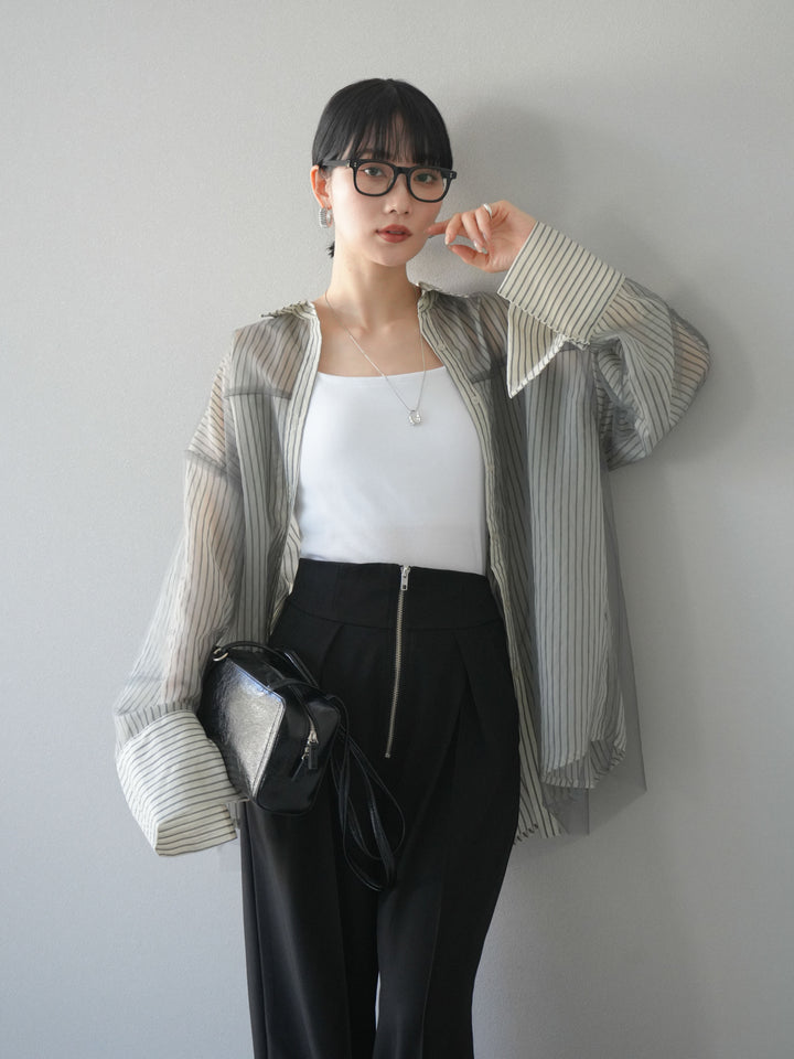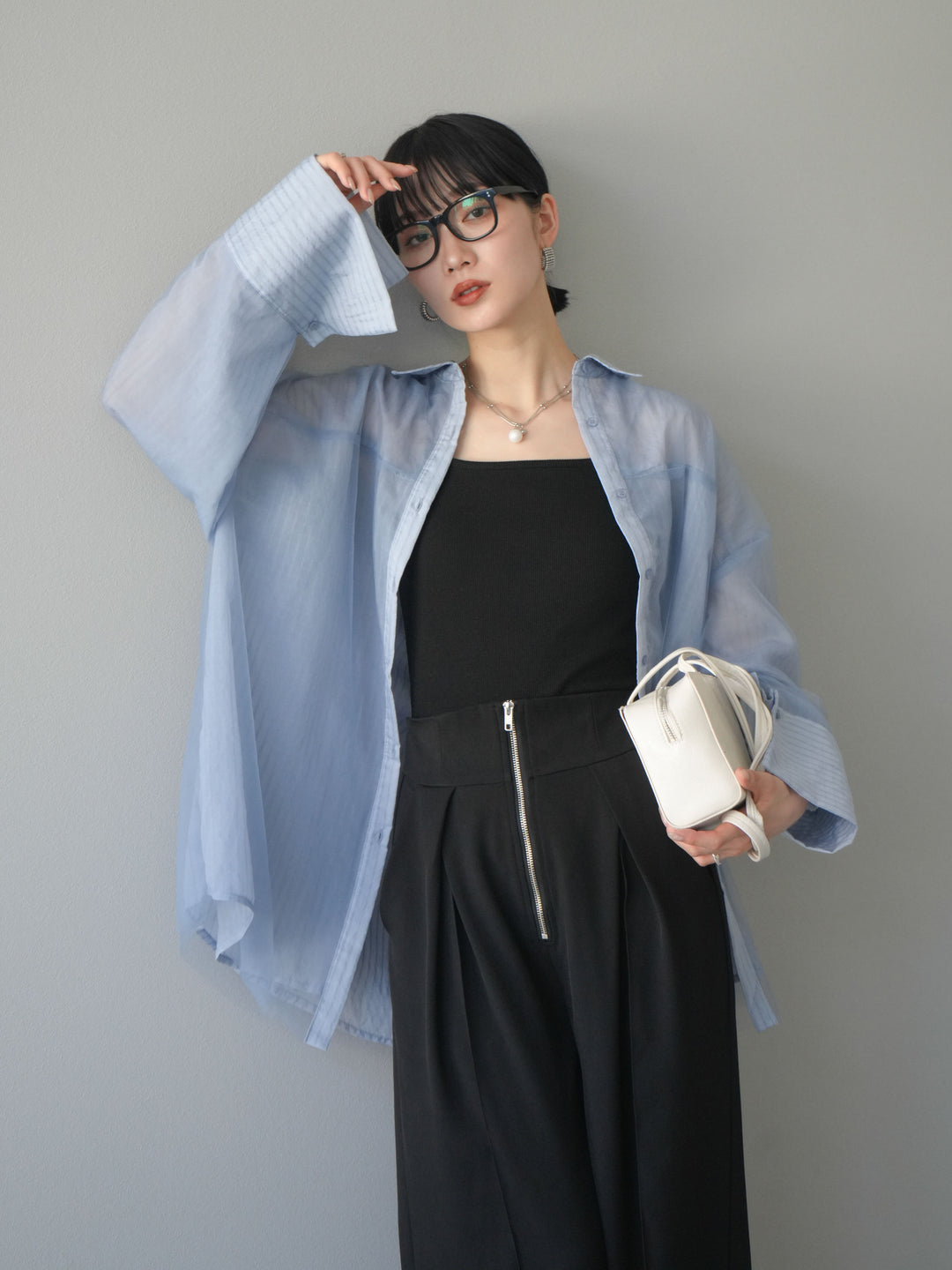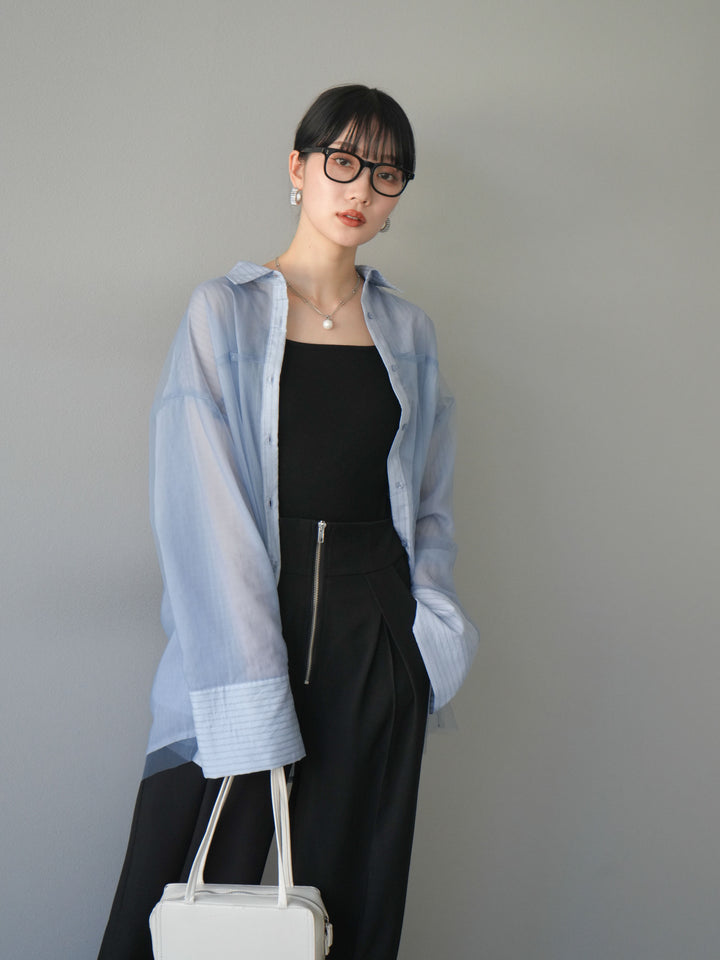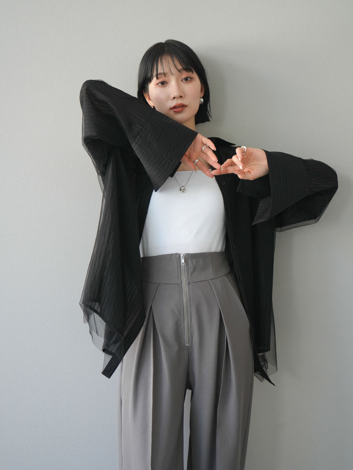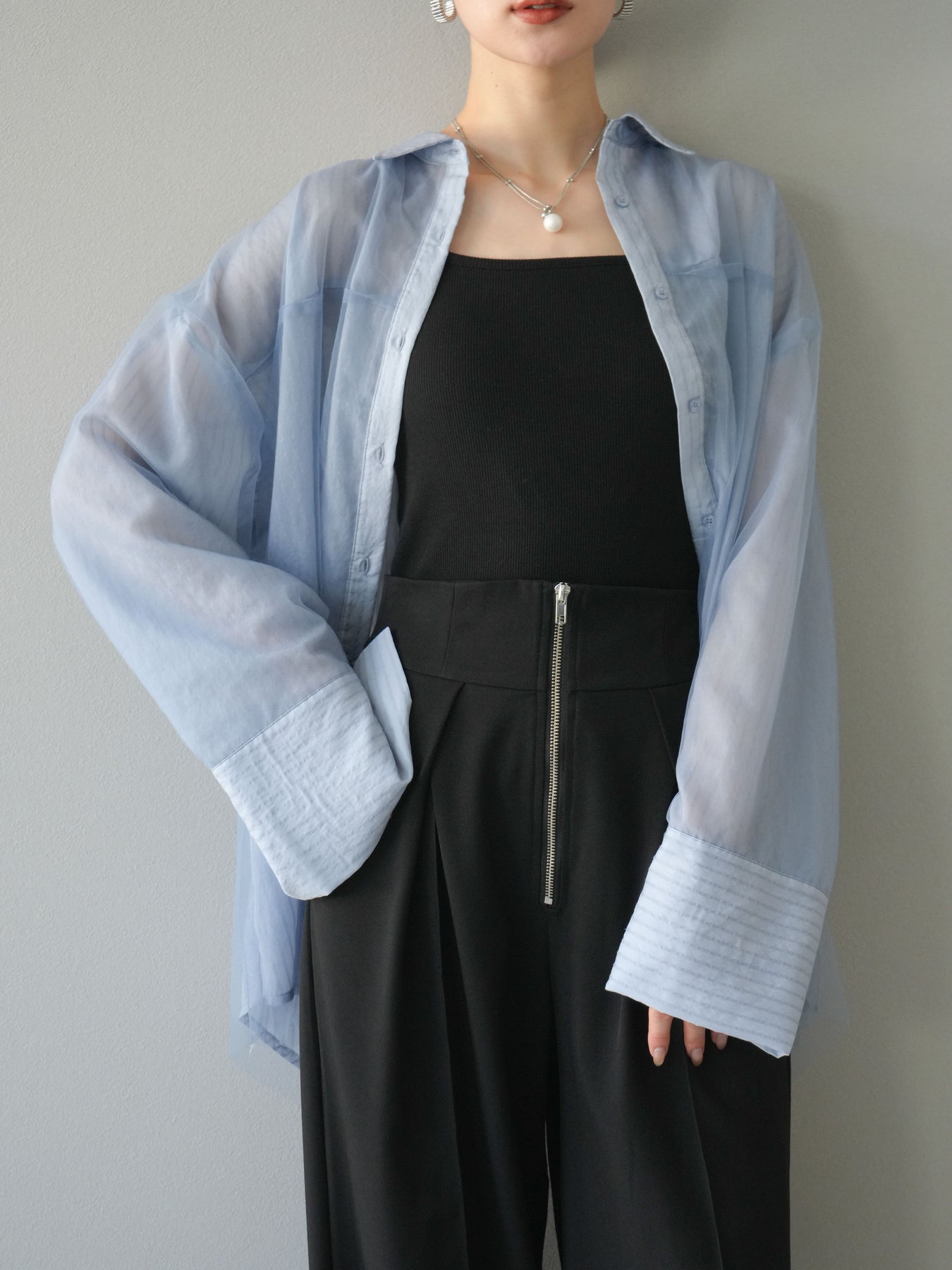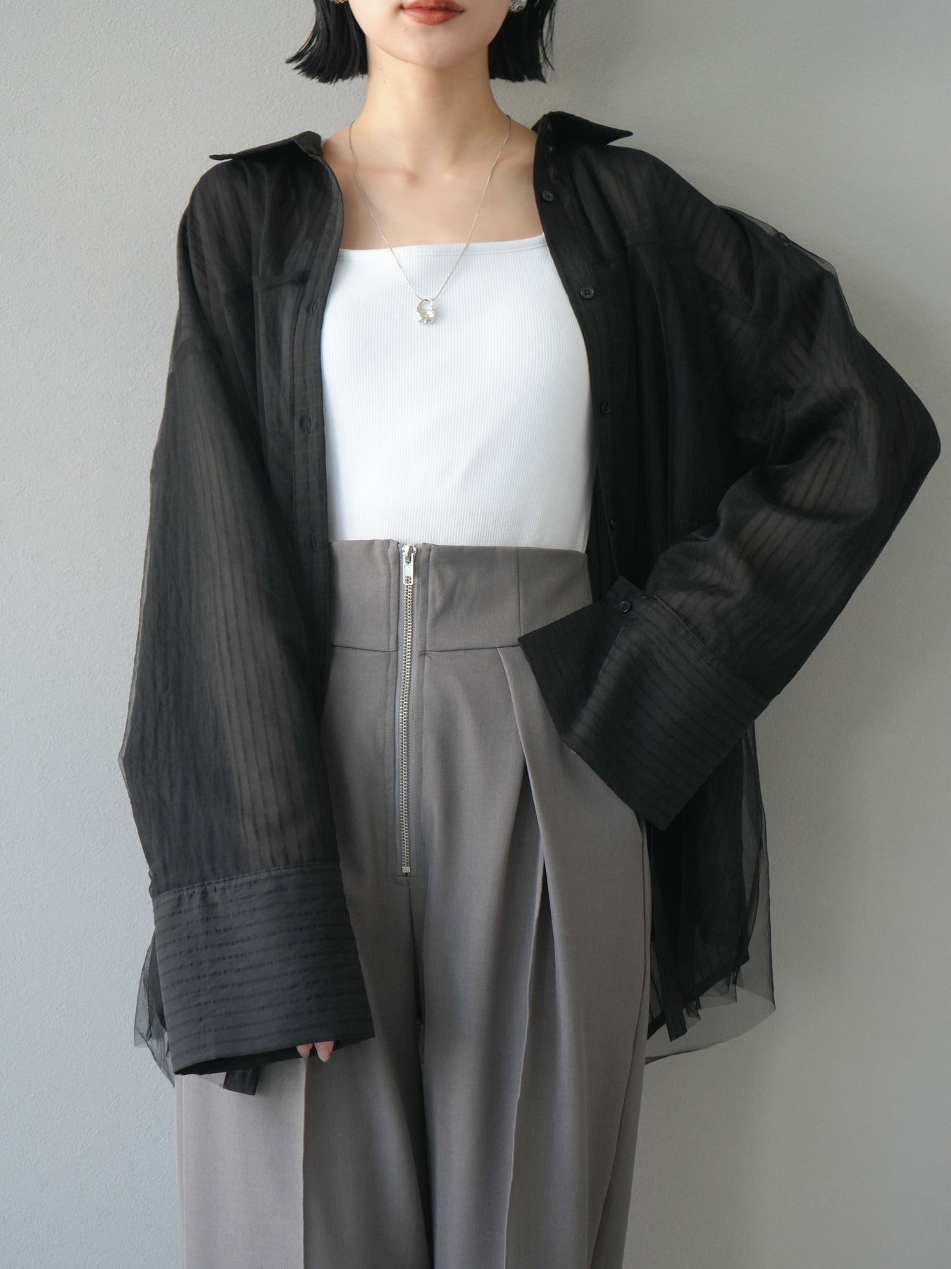 ◆ [予約]チュールドッキングシアーストライプビッグカフスオーバーサイズシャツ