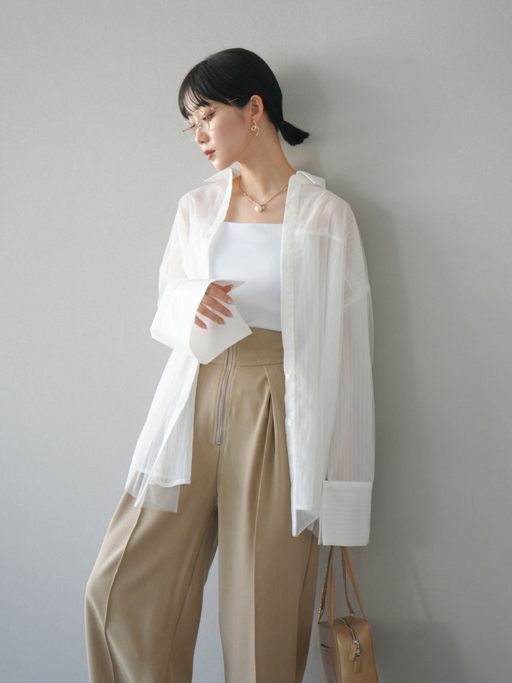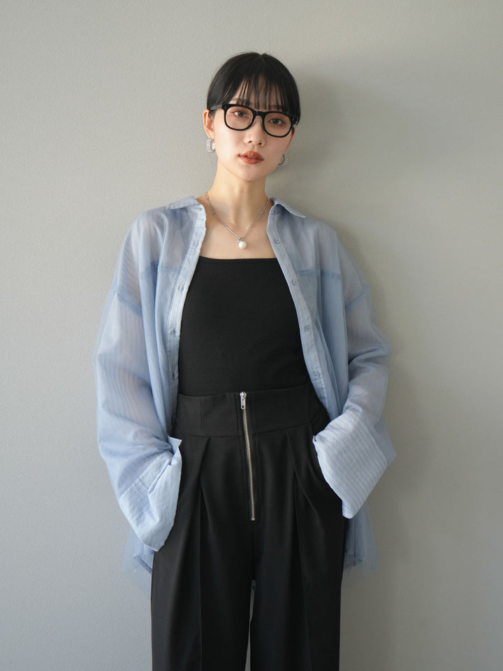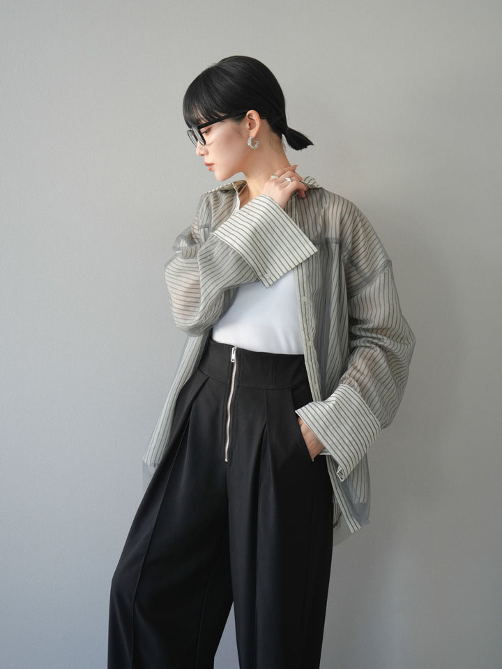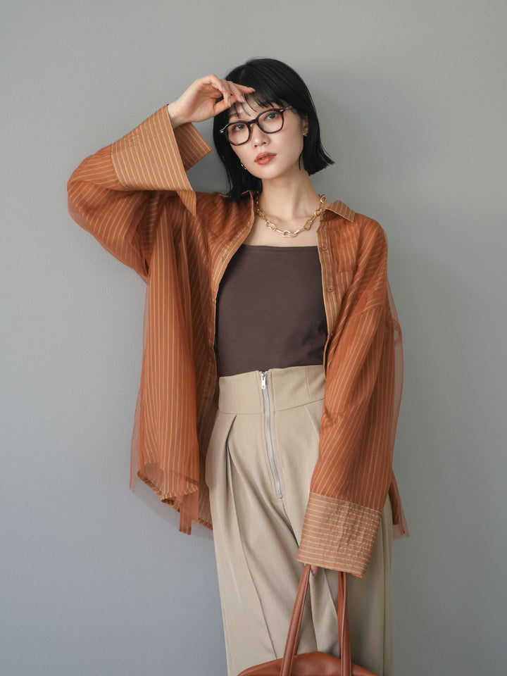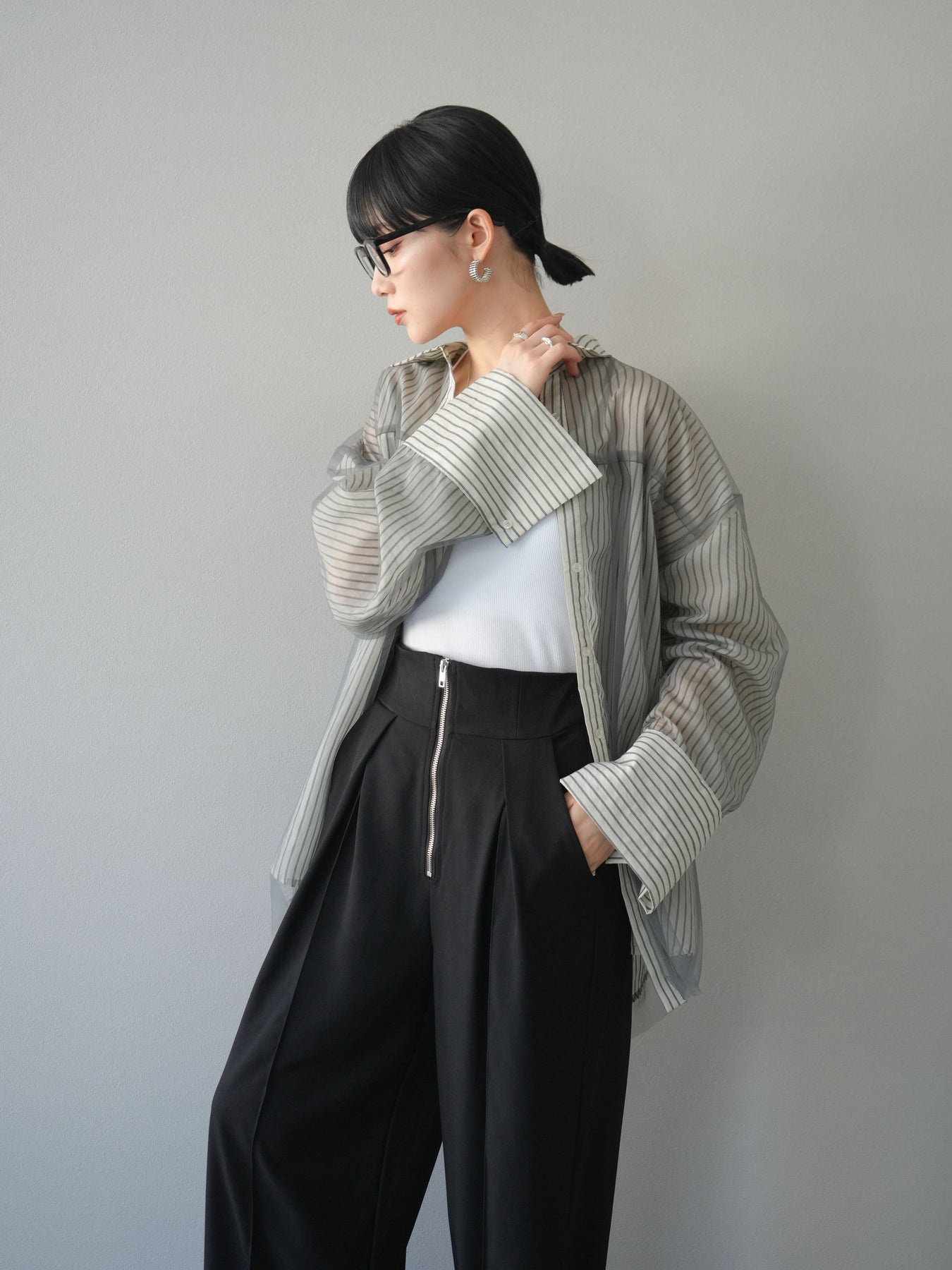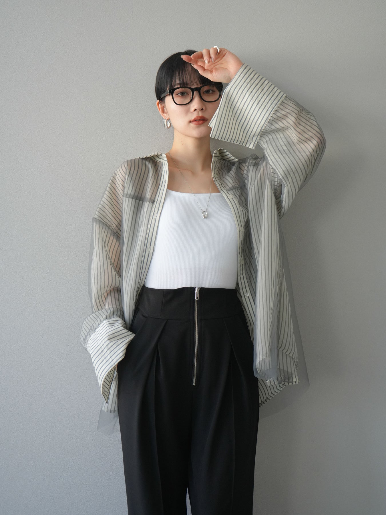 ◆ [予約]チュールドッキングシアーストライプビッグカフスオーバーサイズシャツ