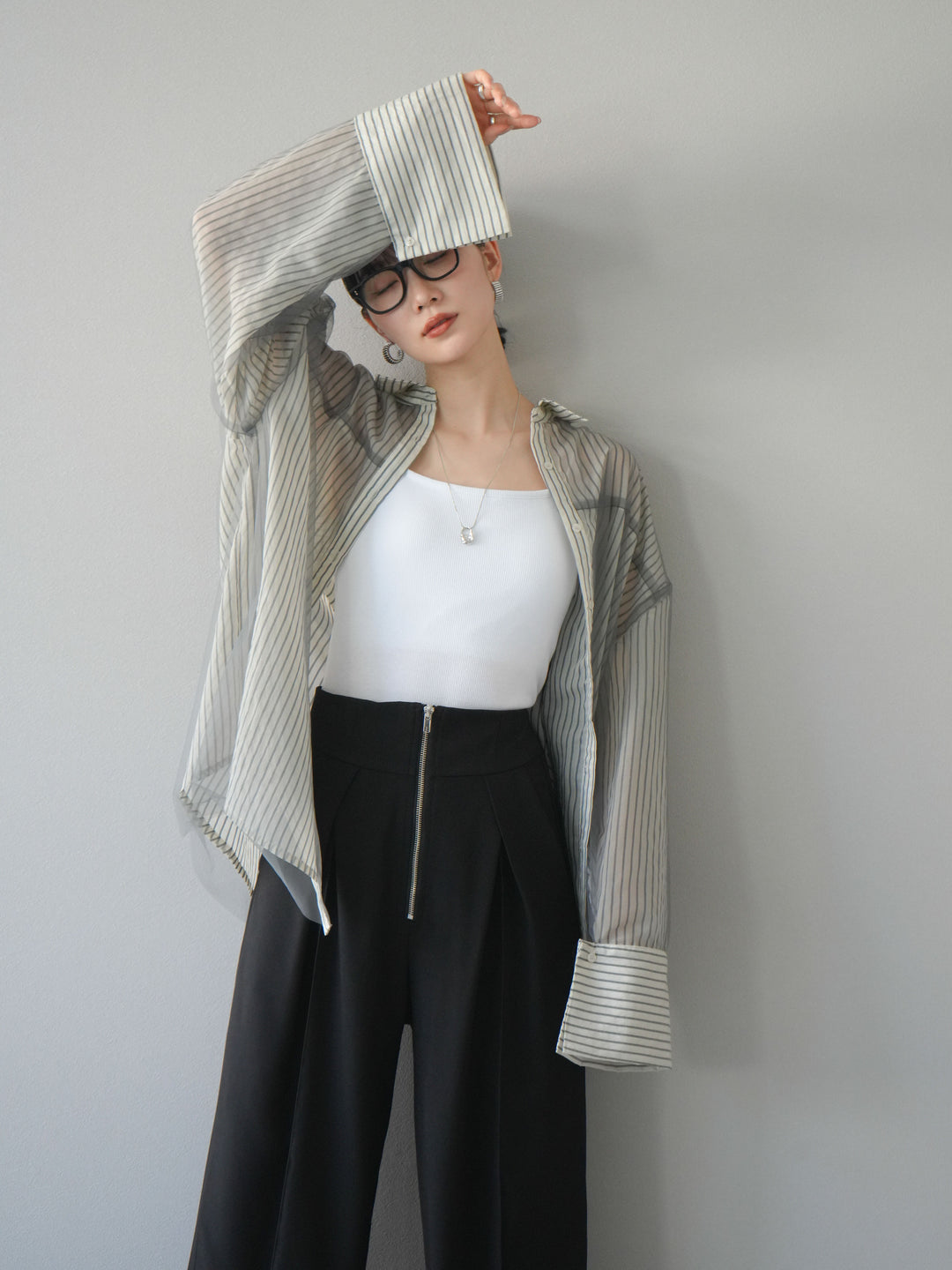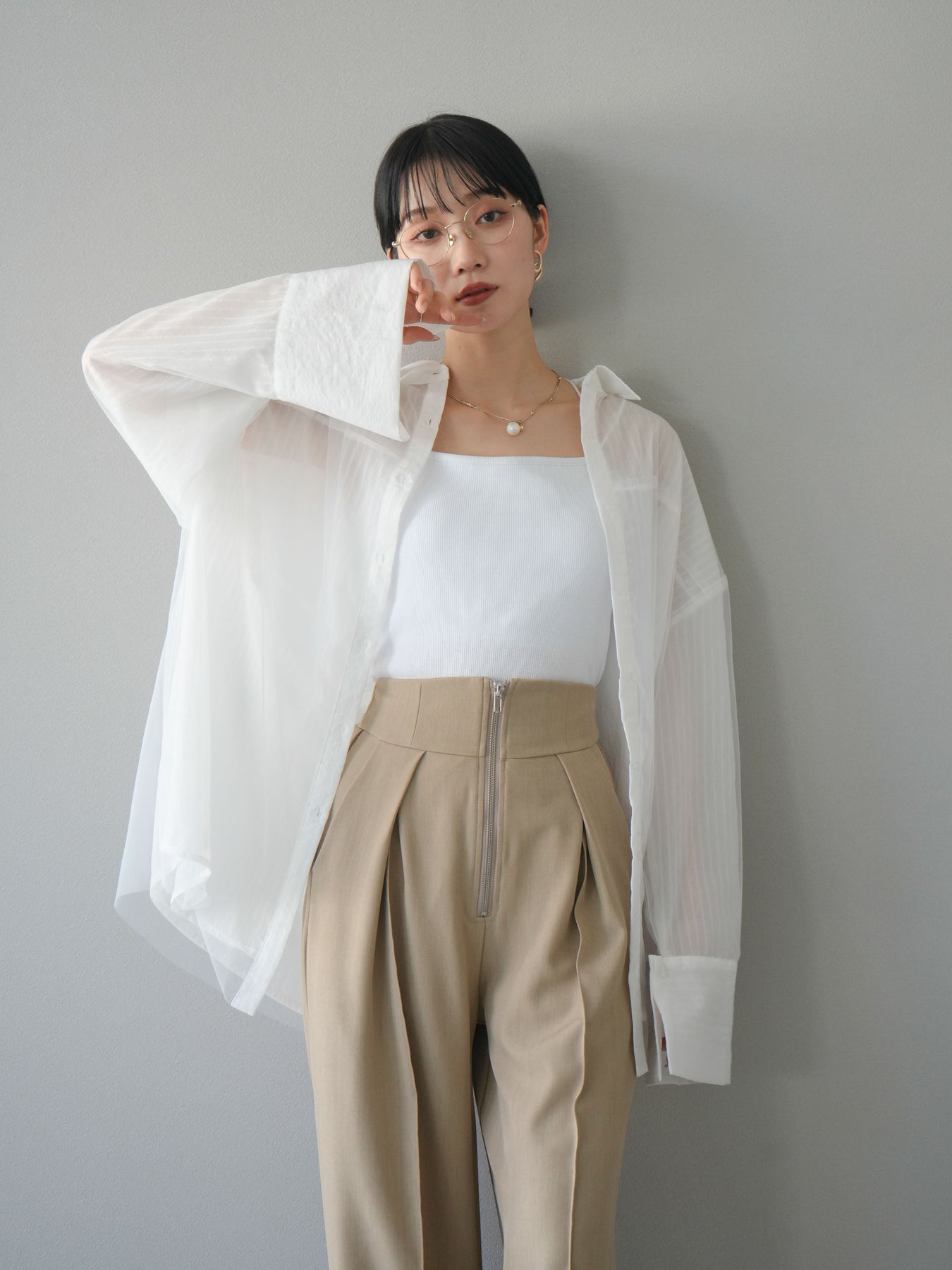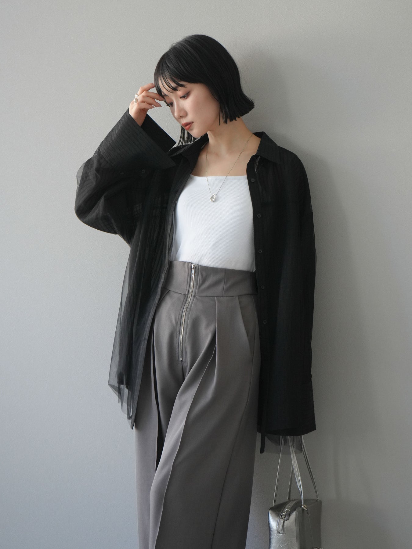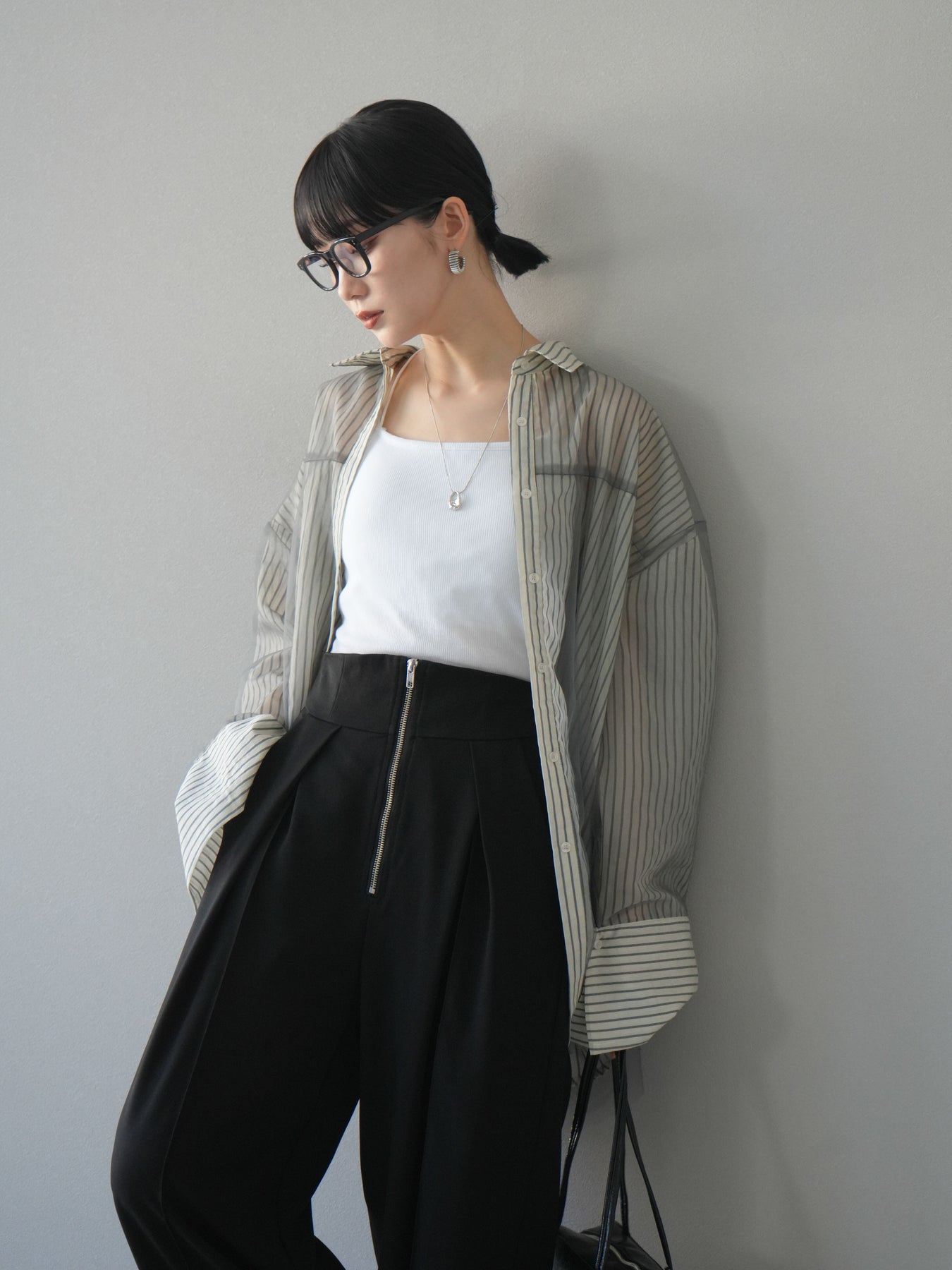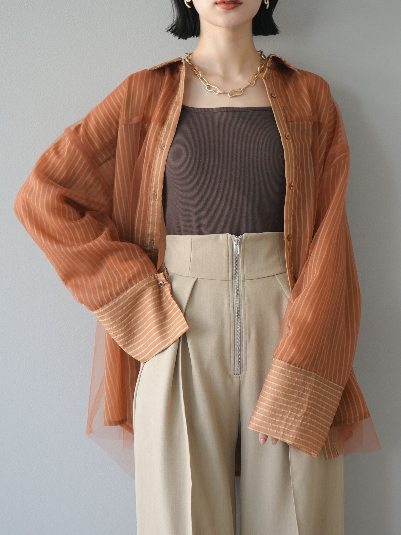 ◆ [予約]チュールドッキングシアーストライプビッグカフスオーバーサイズシャツ