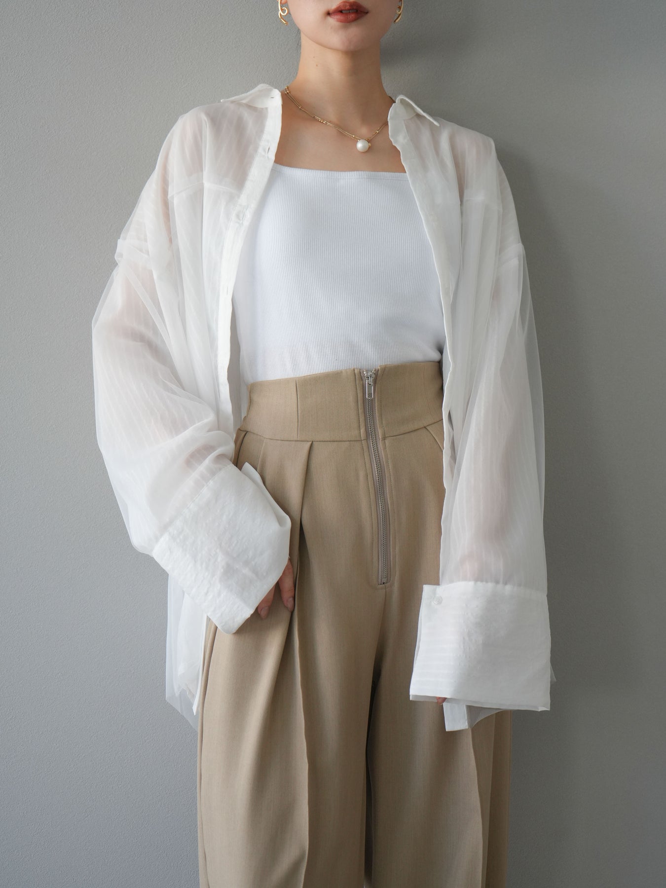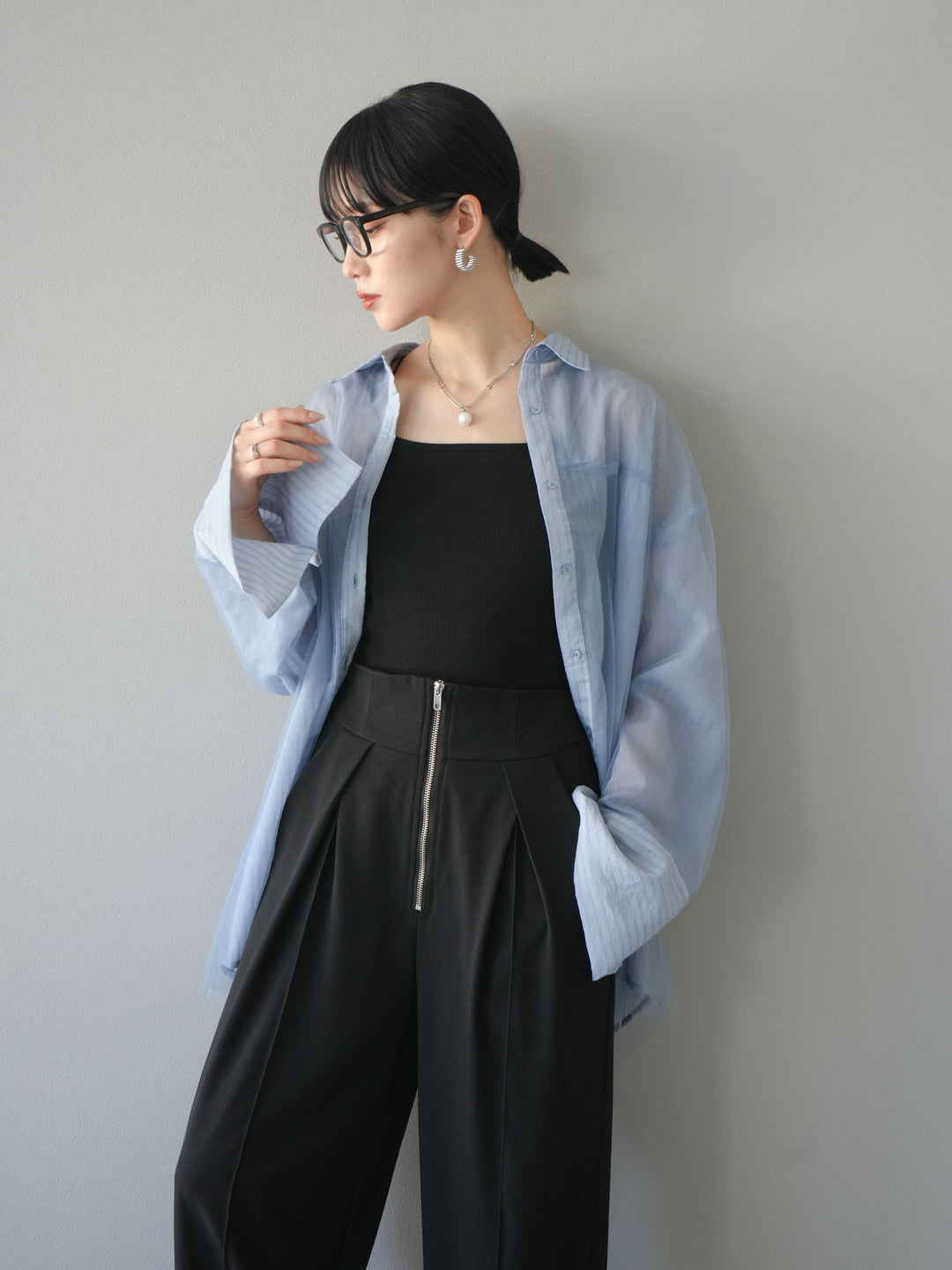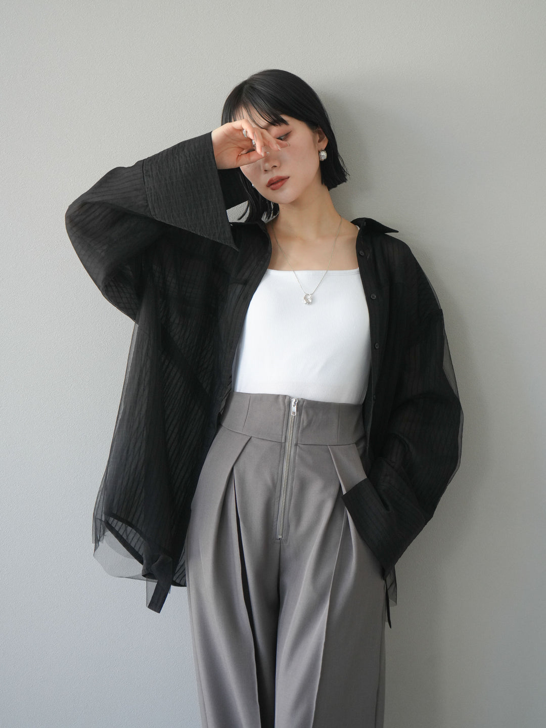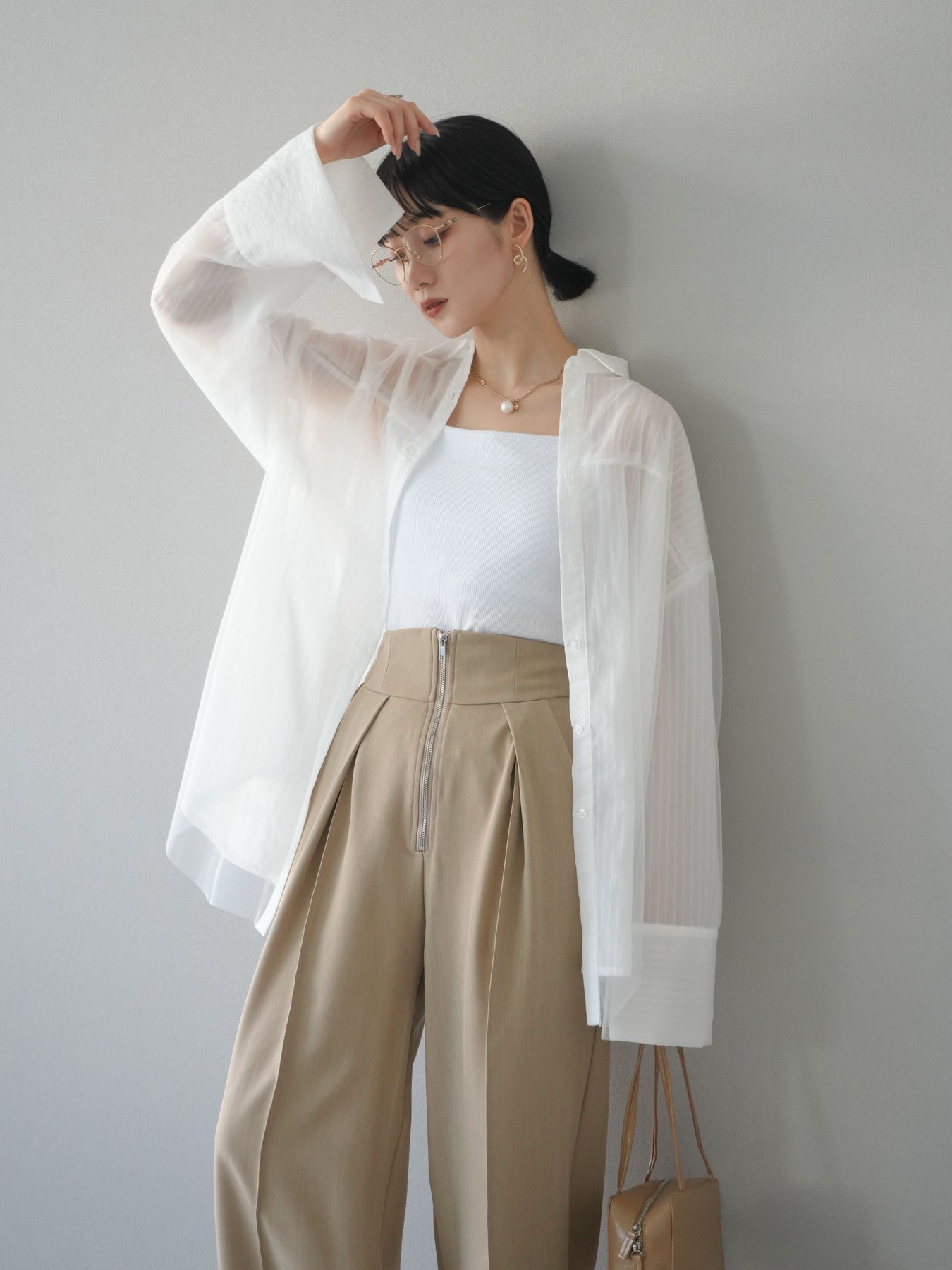 ◆ [予約]チュールドッキングシアーストライプビッグカフスオーバーサイズシャツ