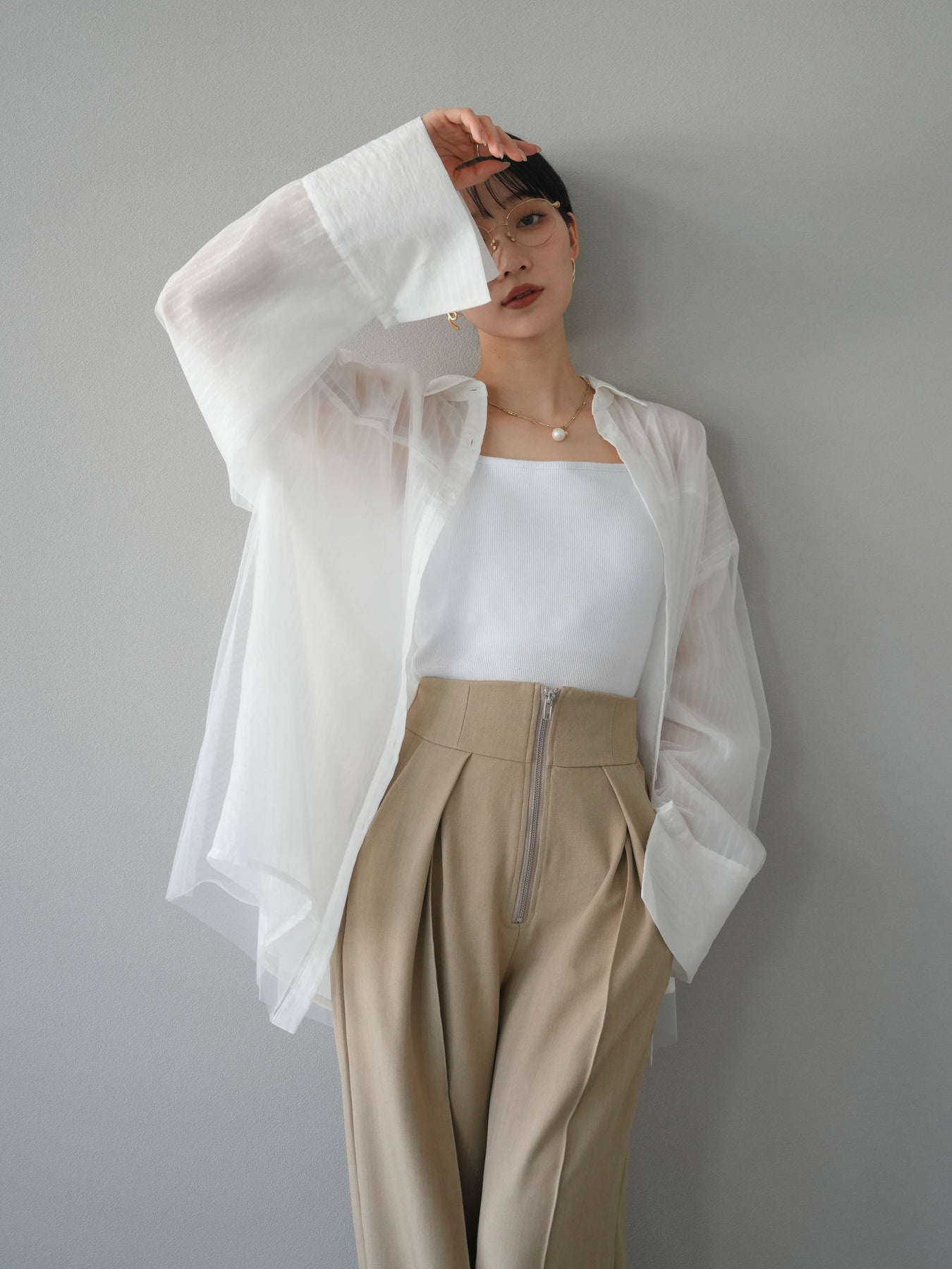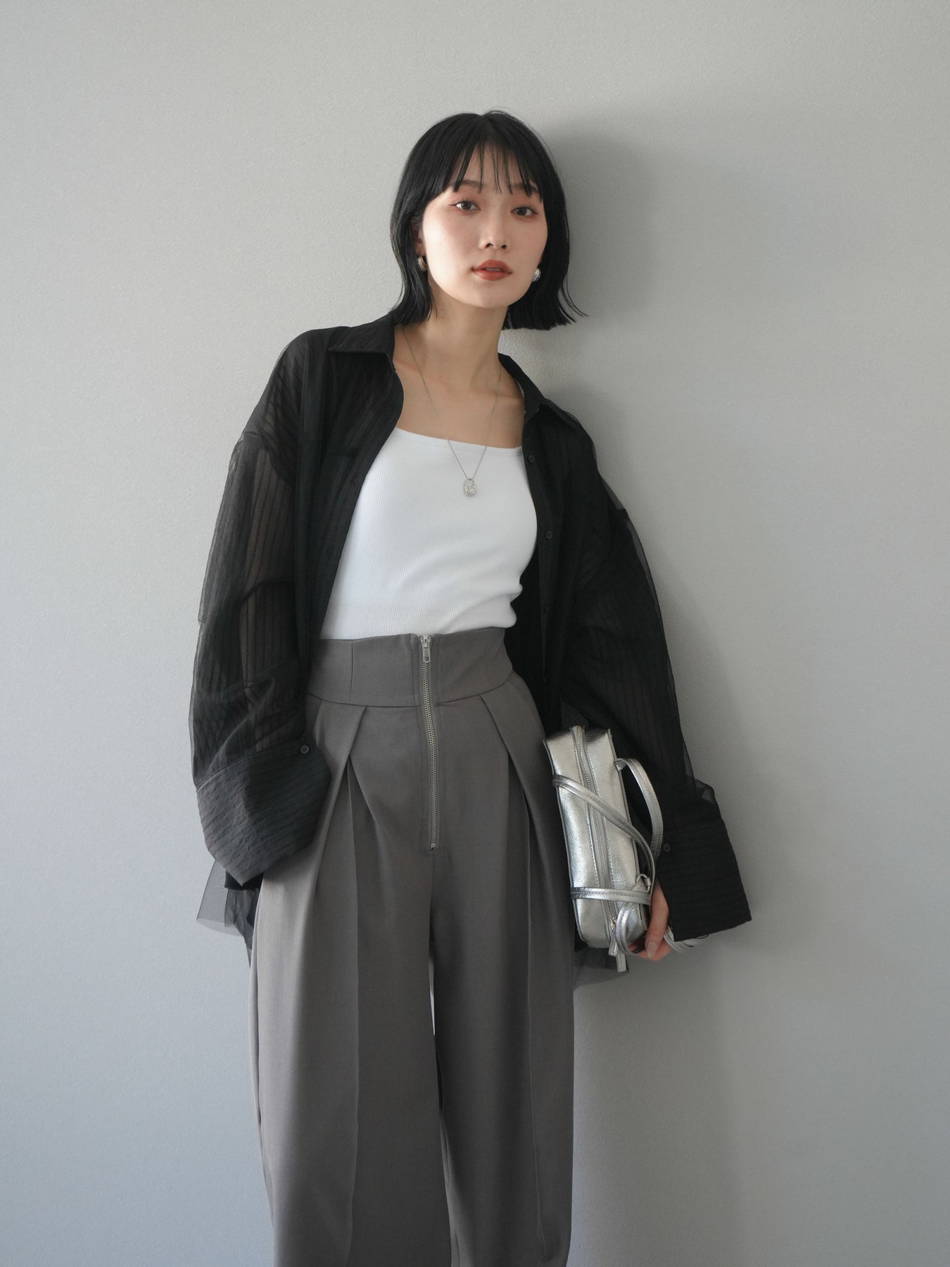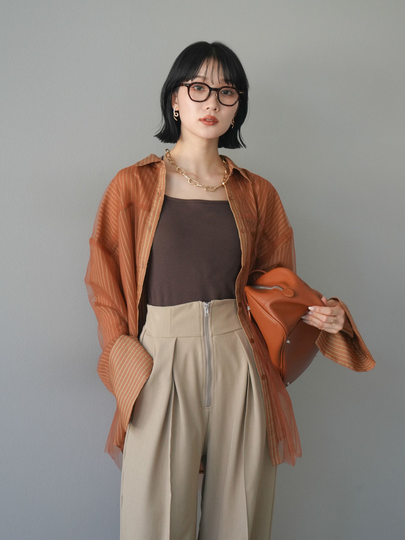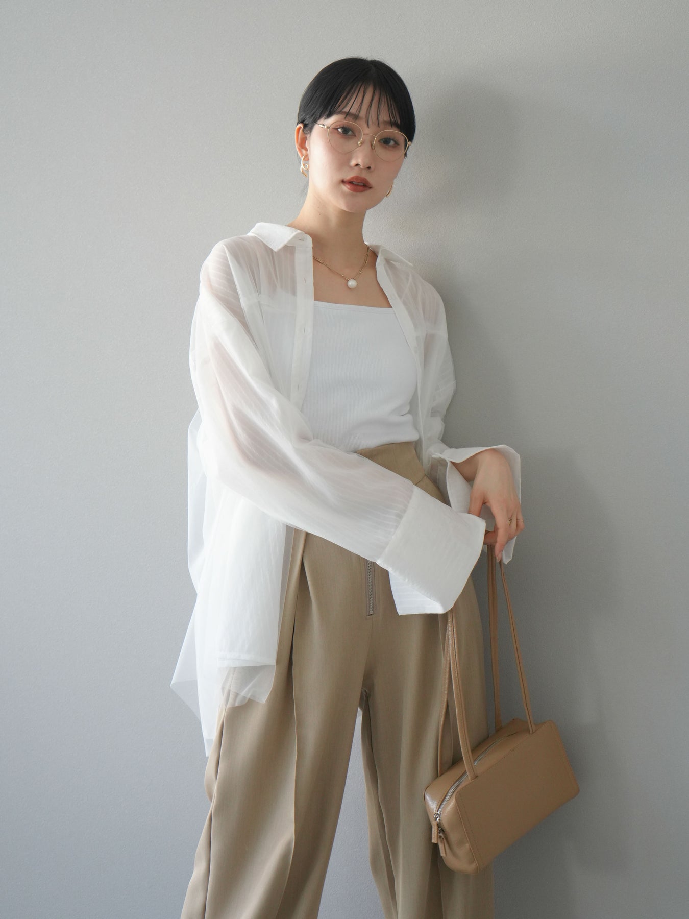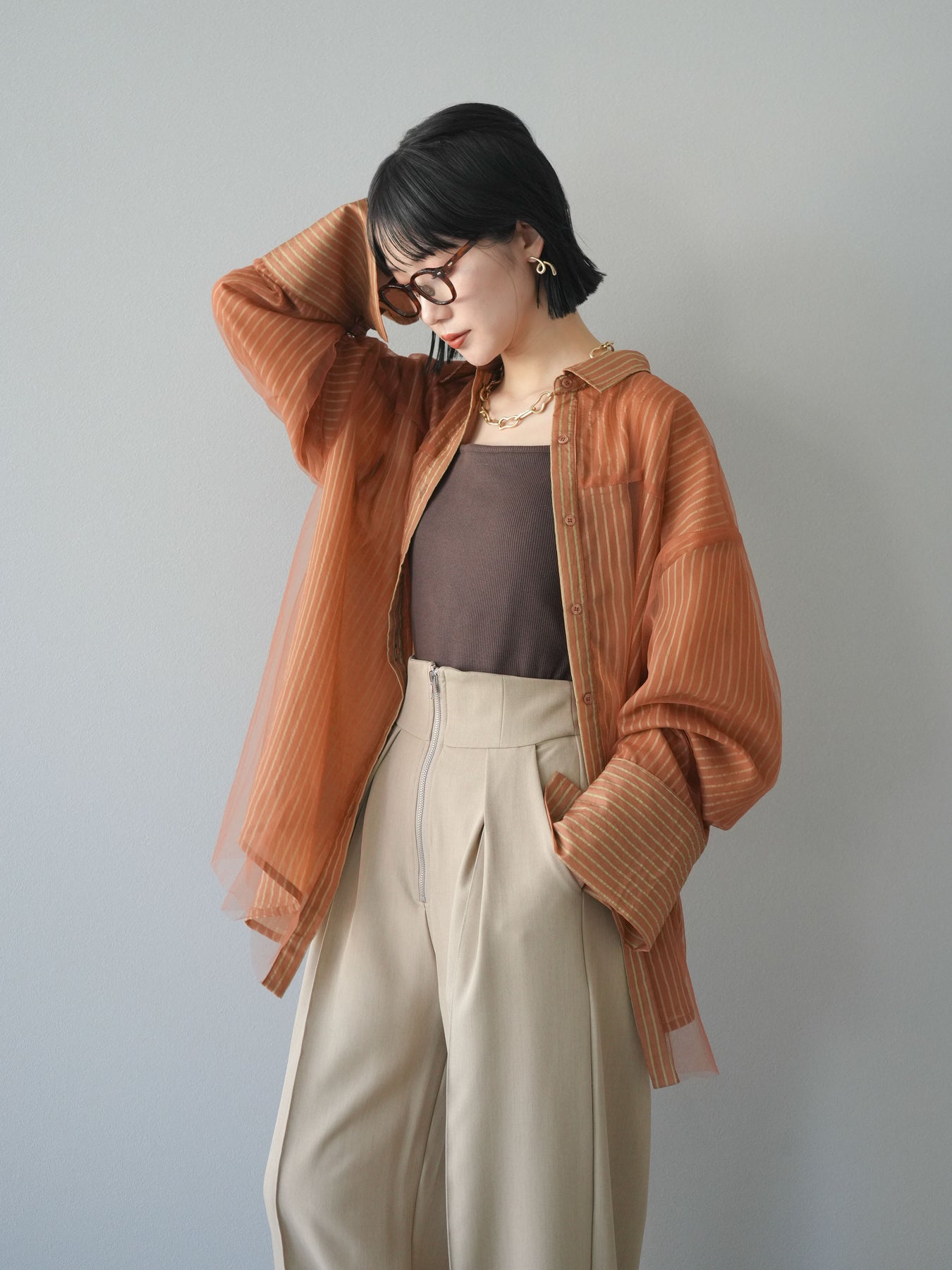 ◆ [予約]チュールドッキングシアーストライプビッグカフスオーバーサイズシャツ