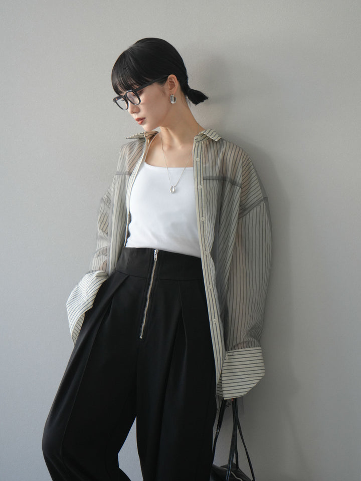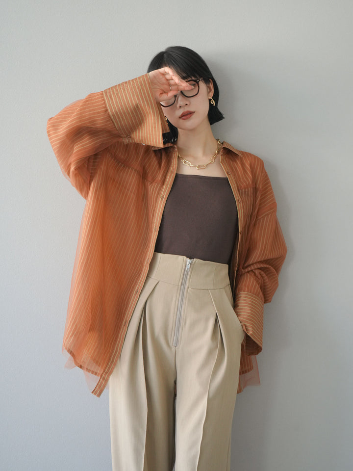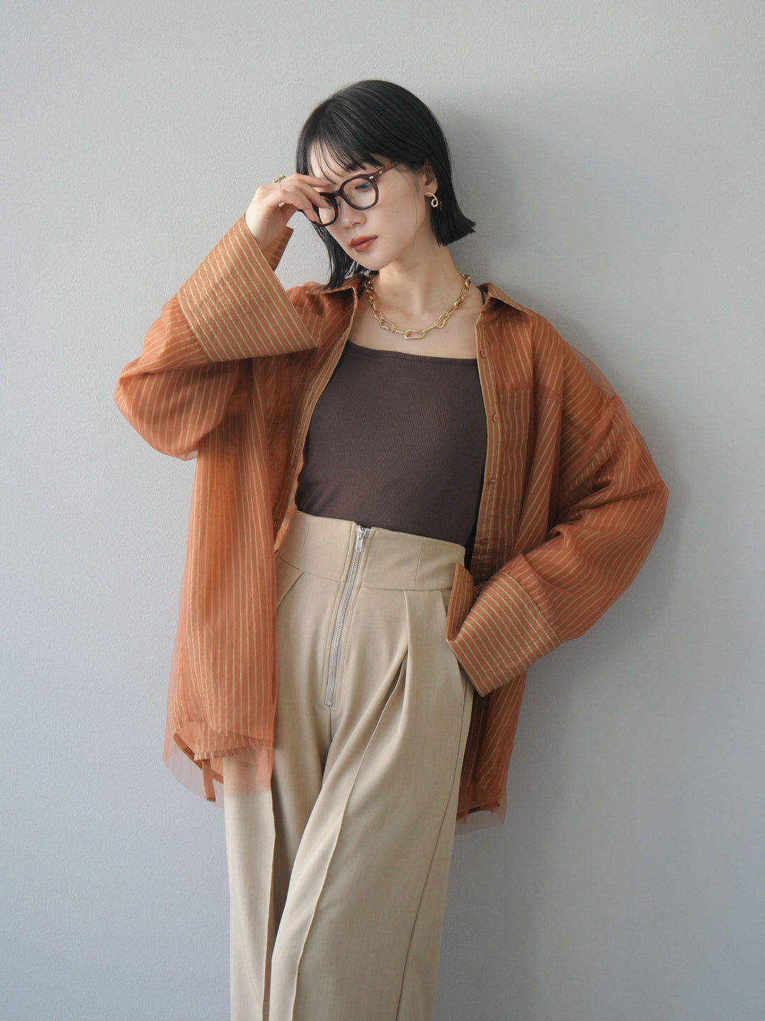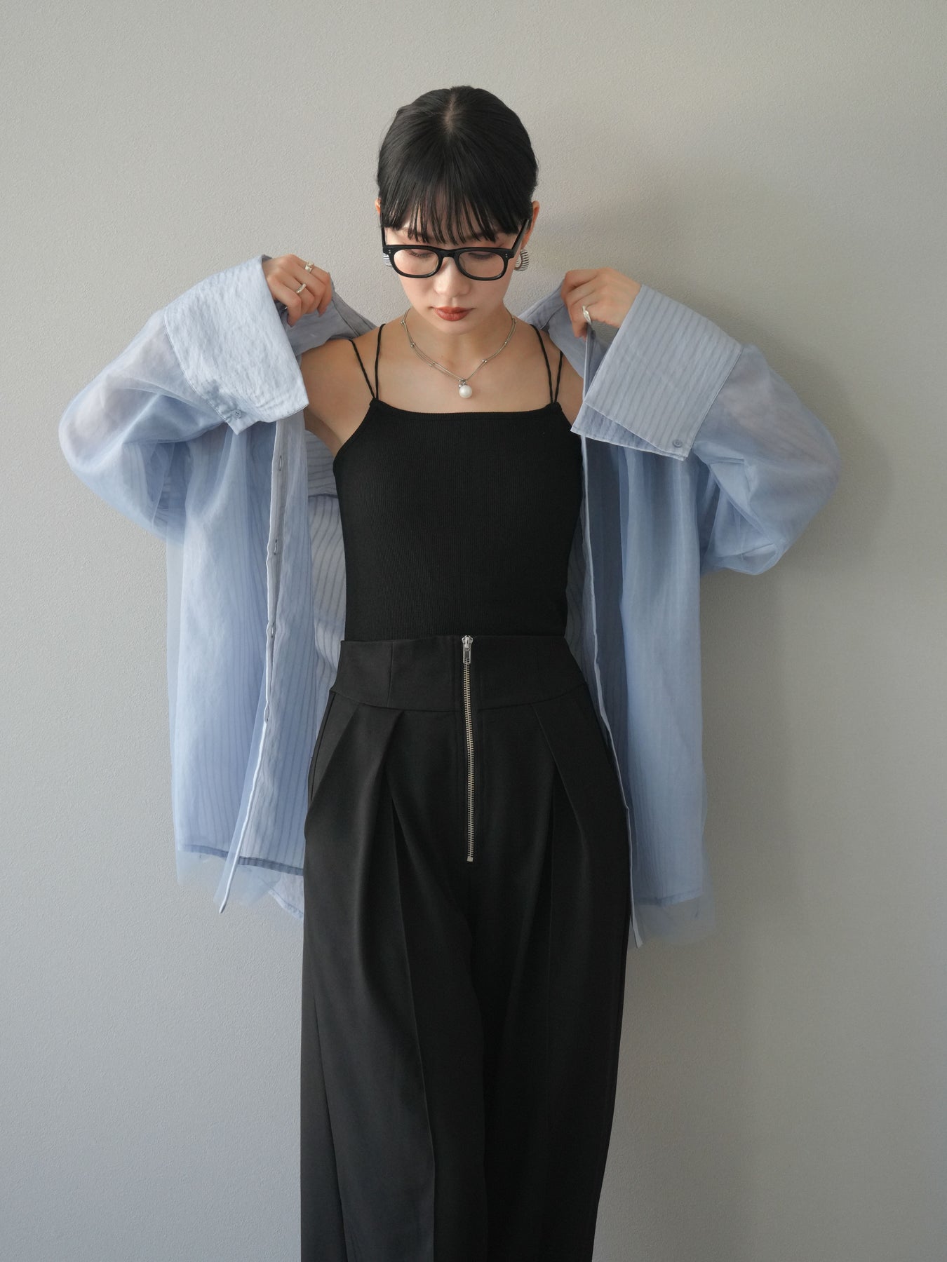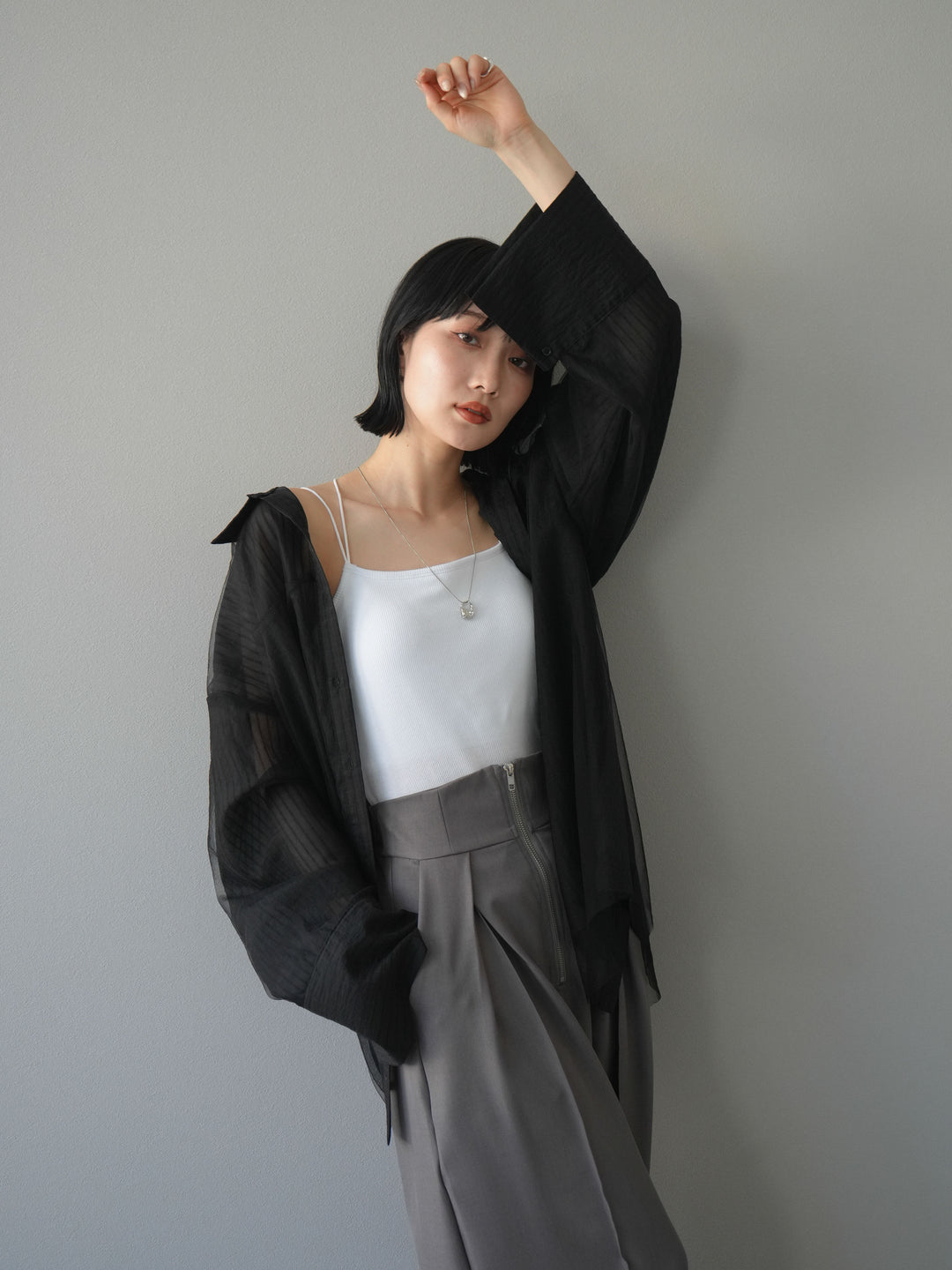 [SET]チュールドッキングシアーストライプビッグカフスオーバーサイズシャツ+カップ付きバッククロスキャミソール(2set)