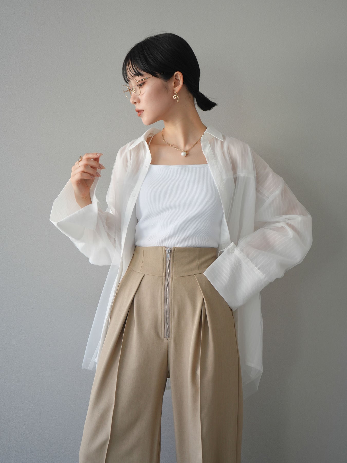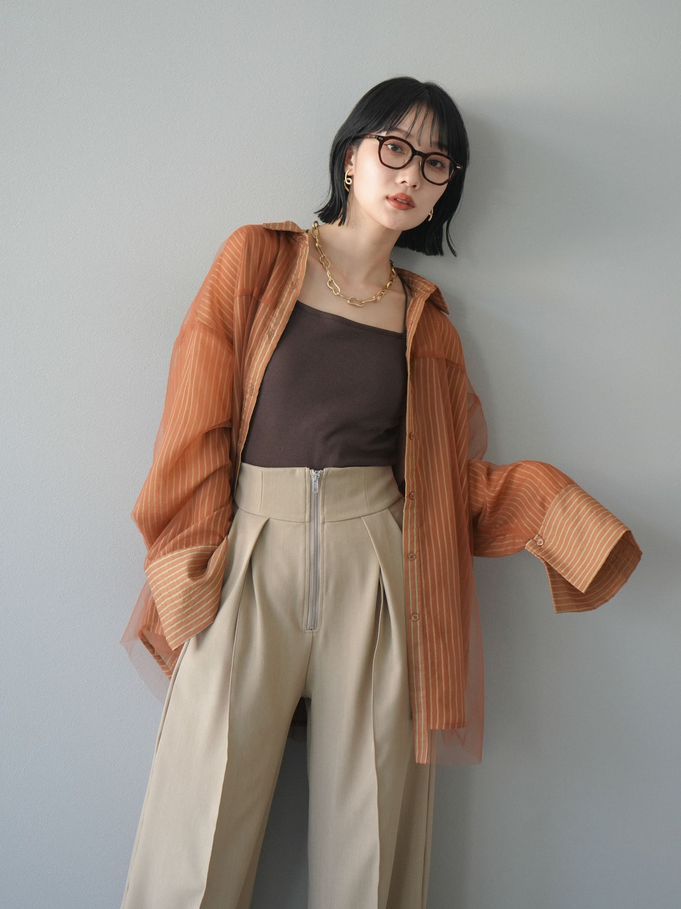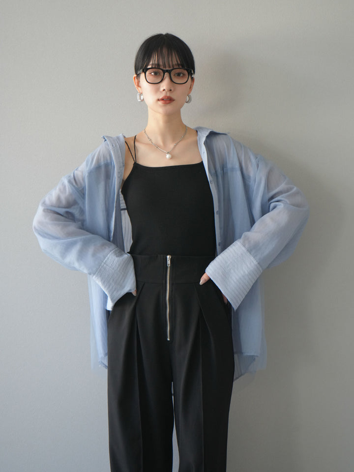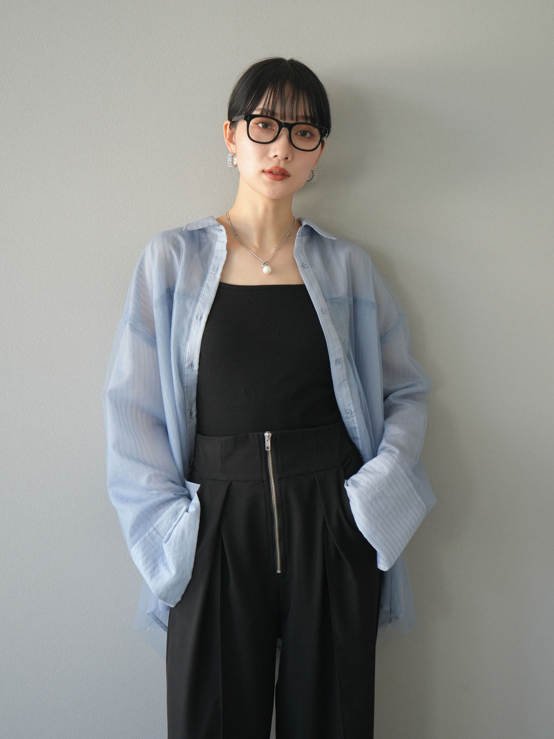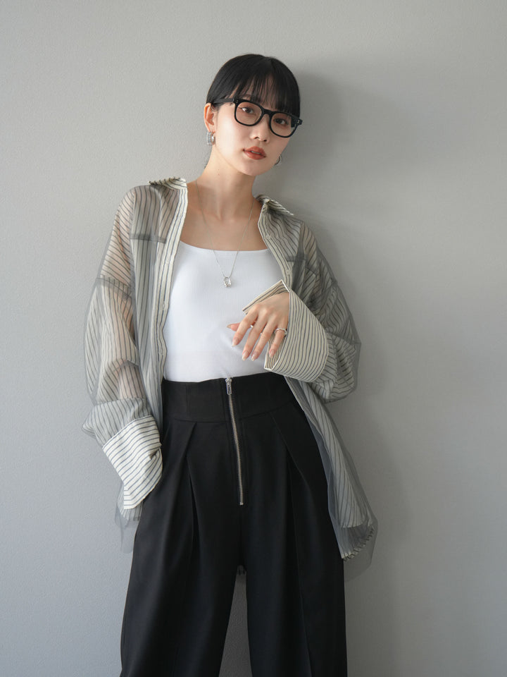 [SET]チュールドッキングシアーストライプビッグカフスオーバーサイズシャツ+カップ付きバッククロスキャミソール(2set)