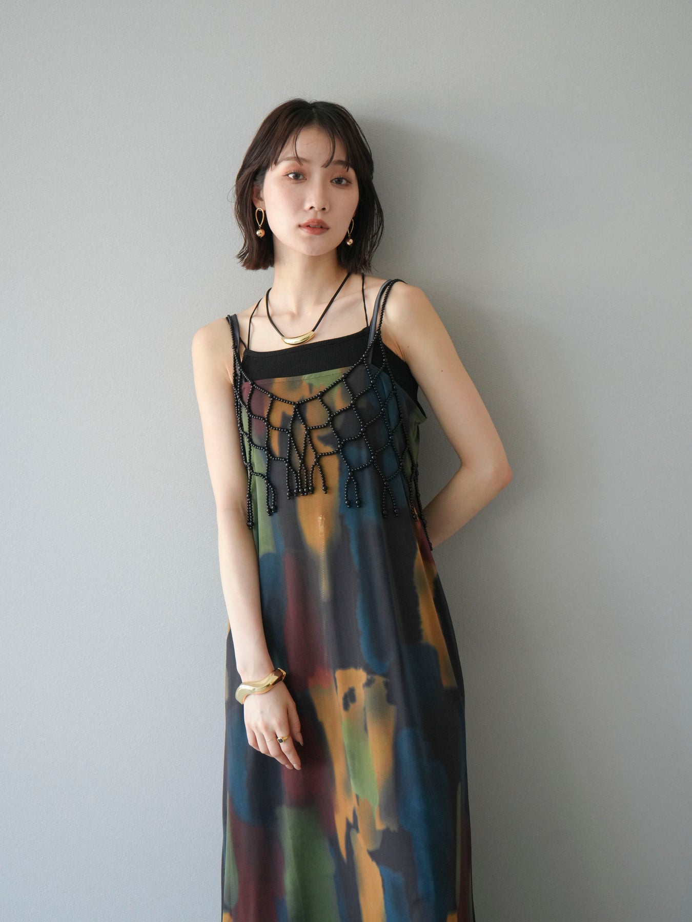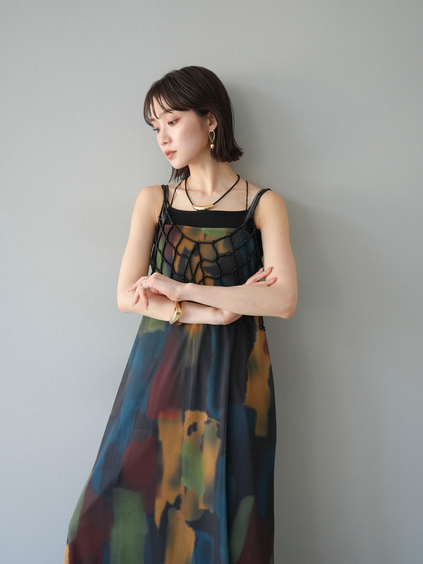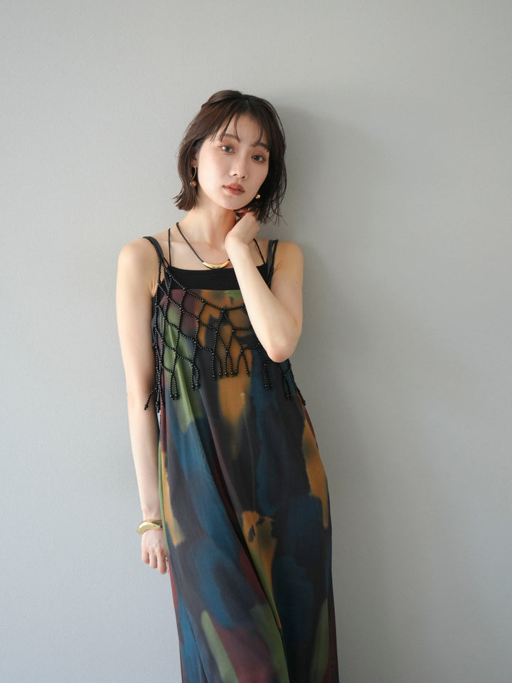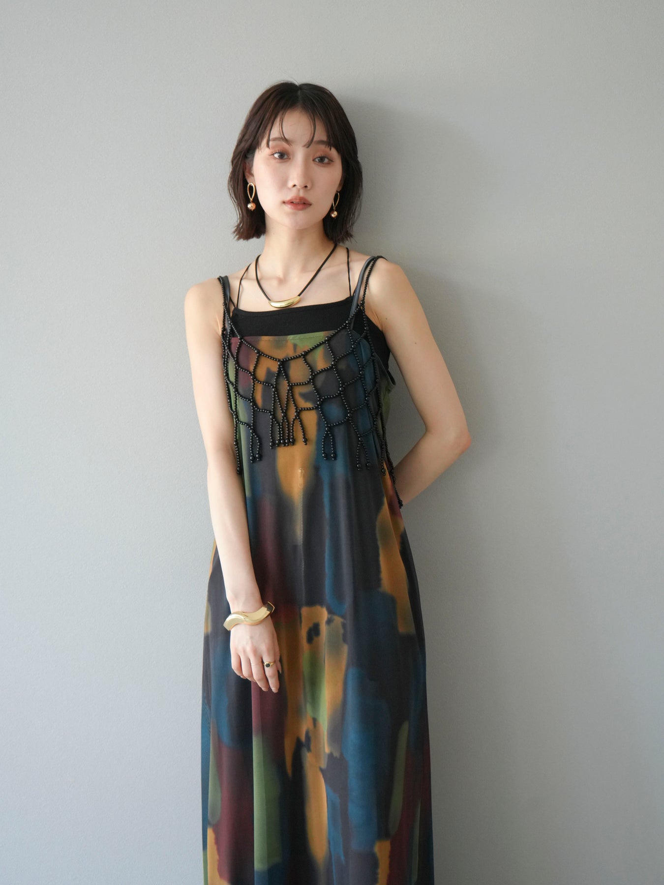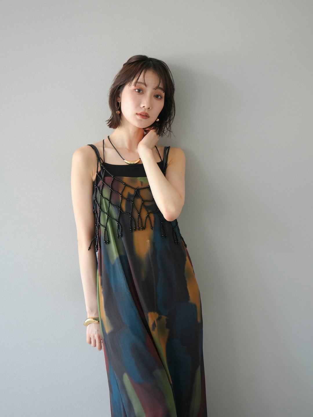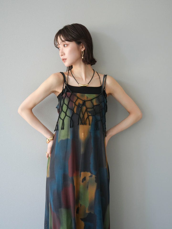 [SET]水彩アートシアーキャミワンピース+ビーズビスチェ(2set)