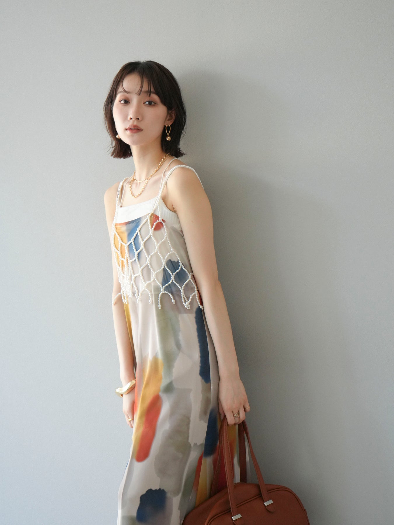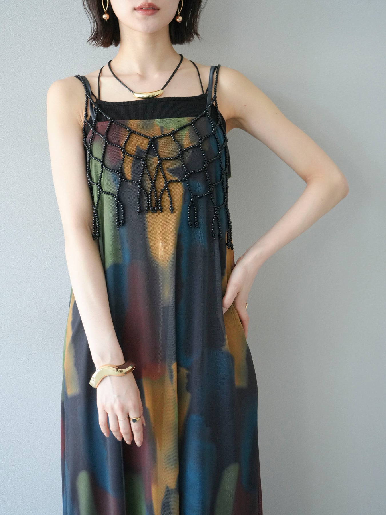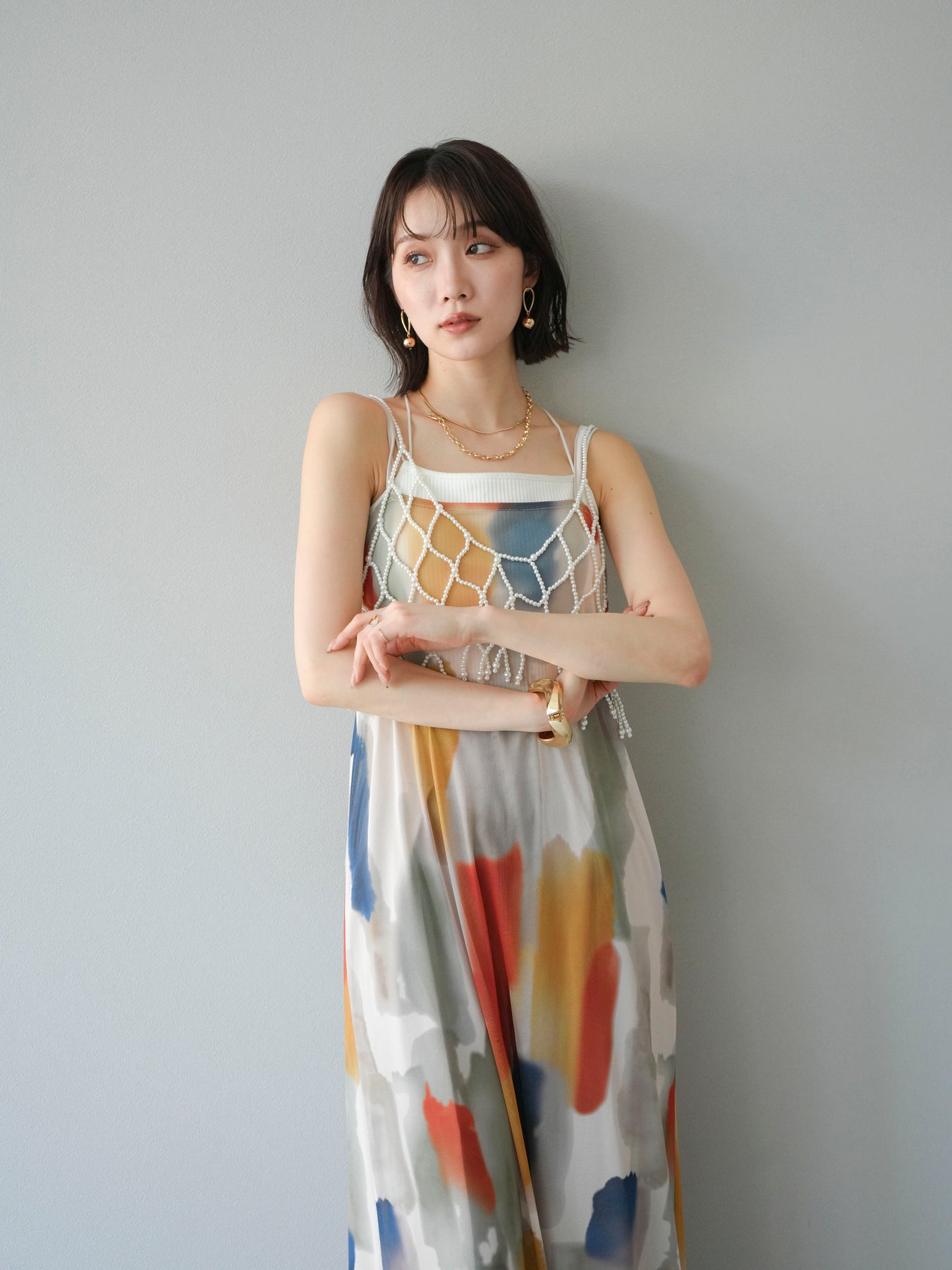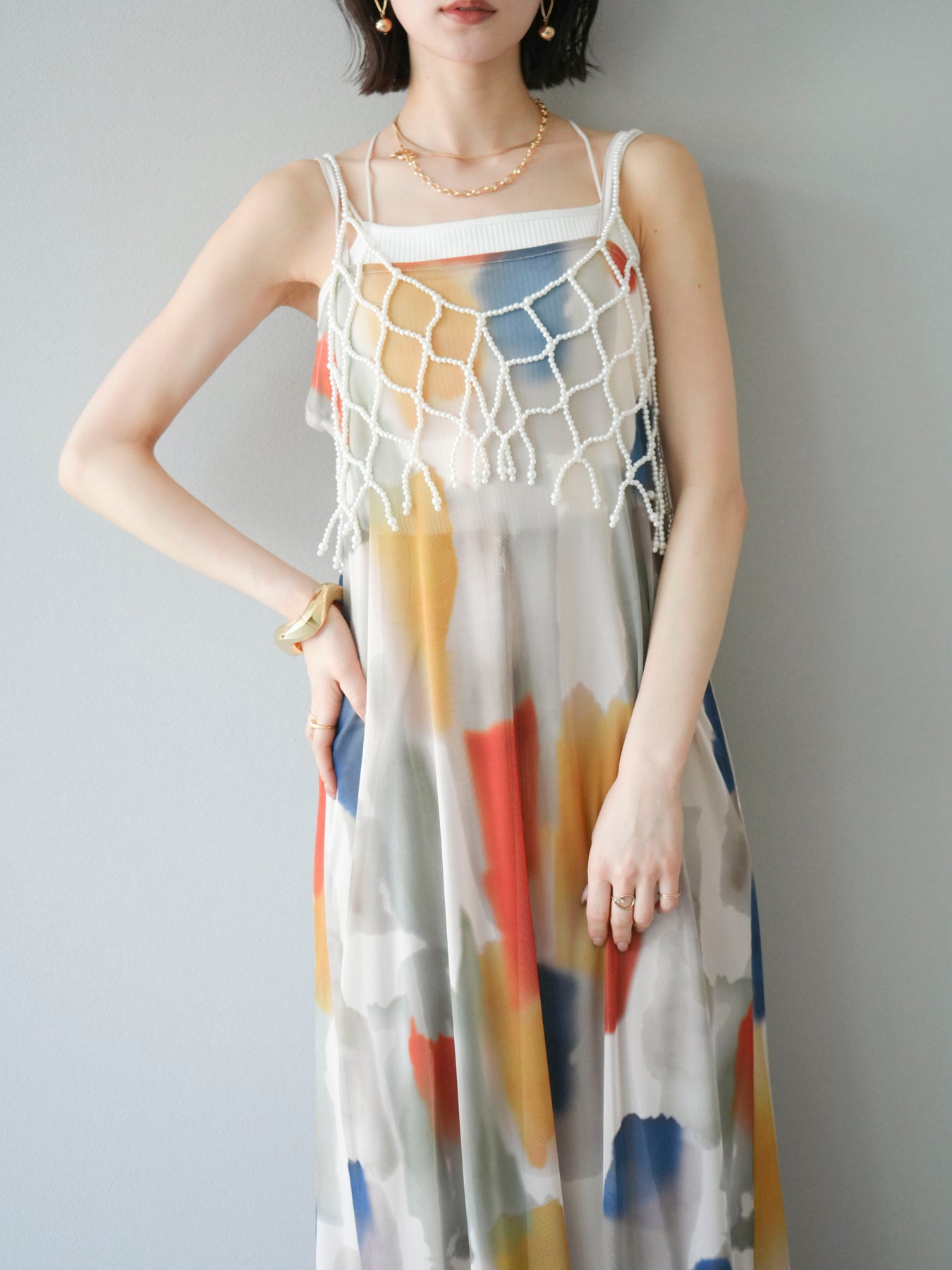 [SET]水彩アートシアーキャミワンピース+ビーズビスチェ(2set)