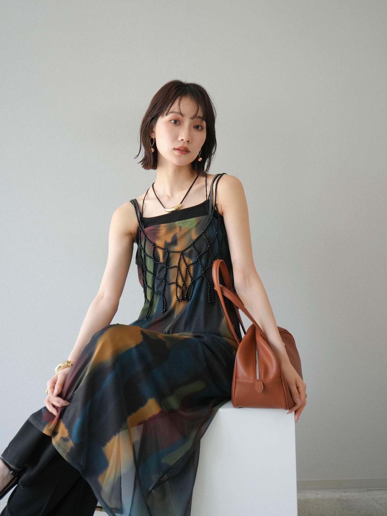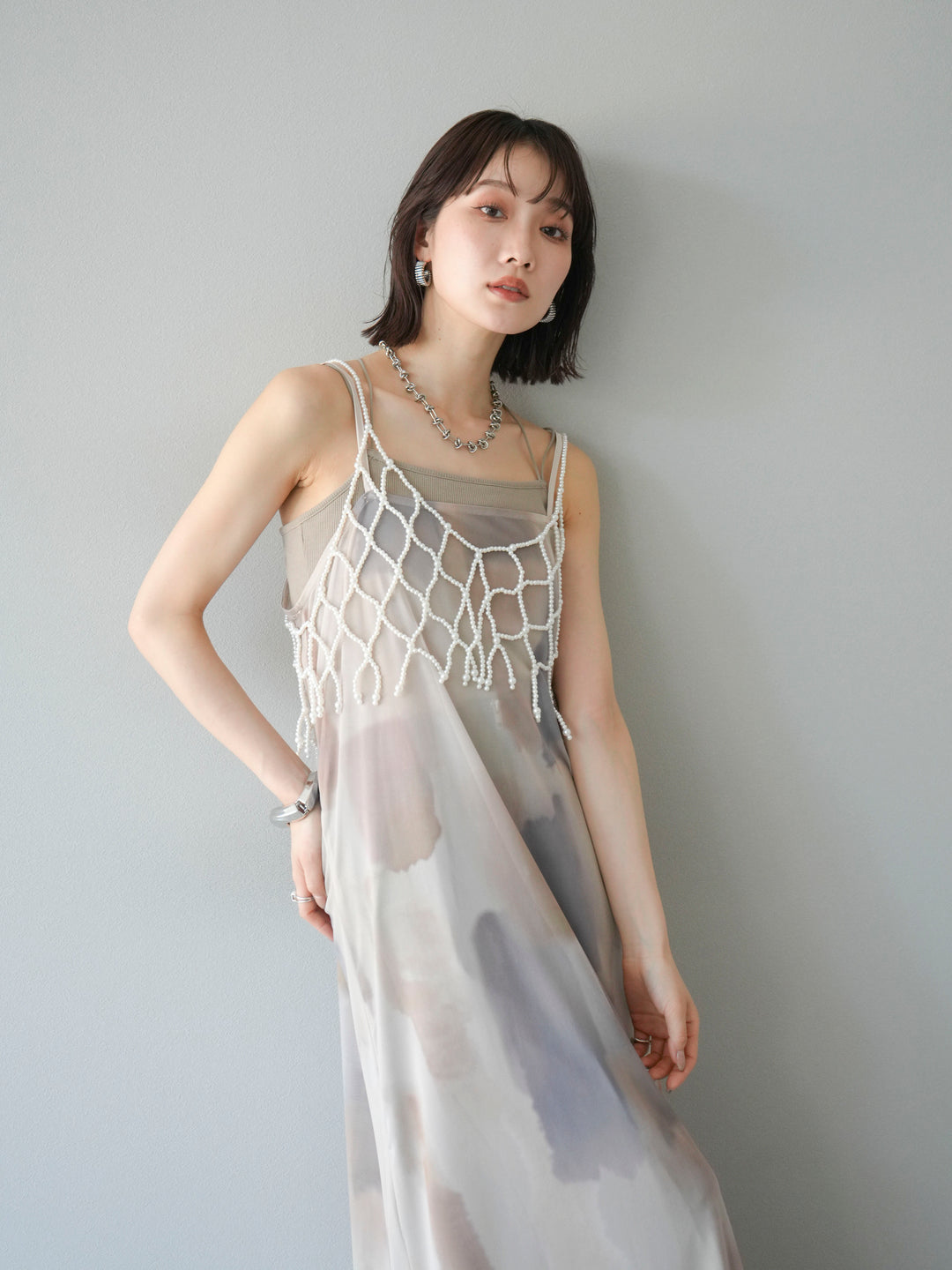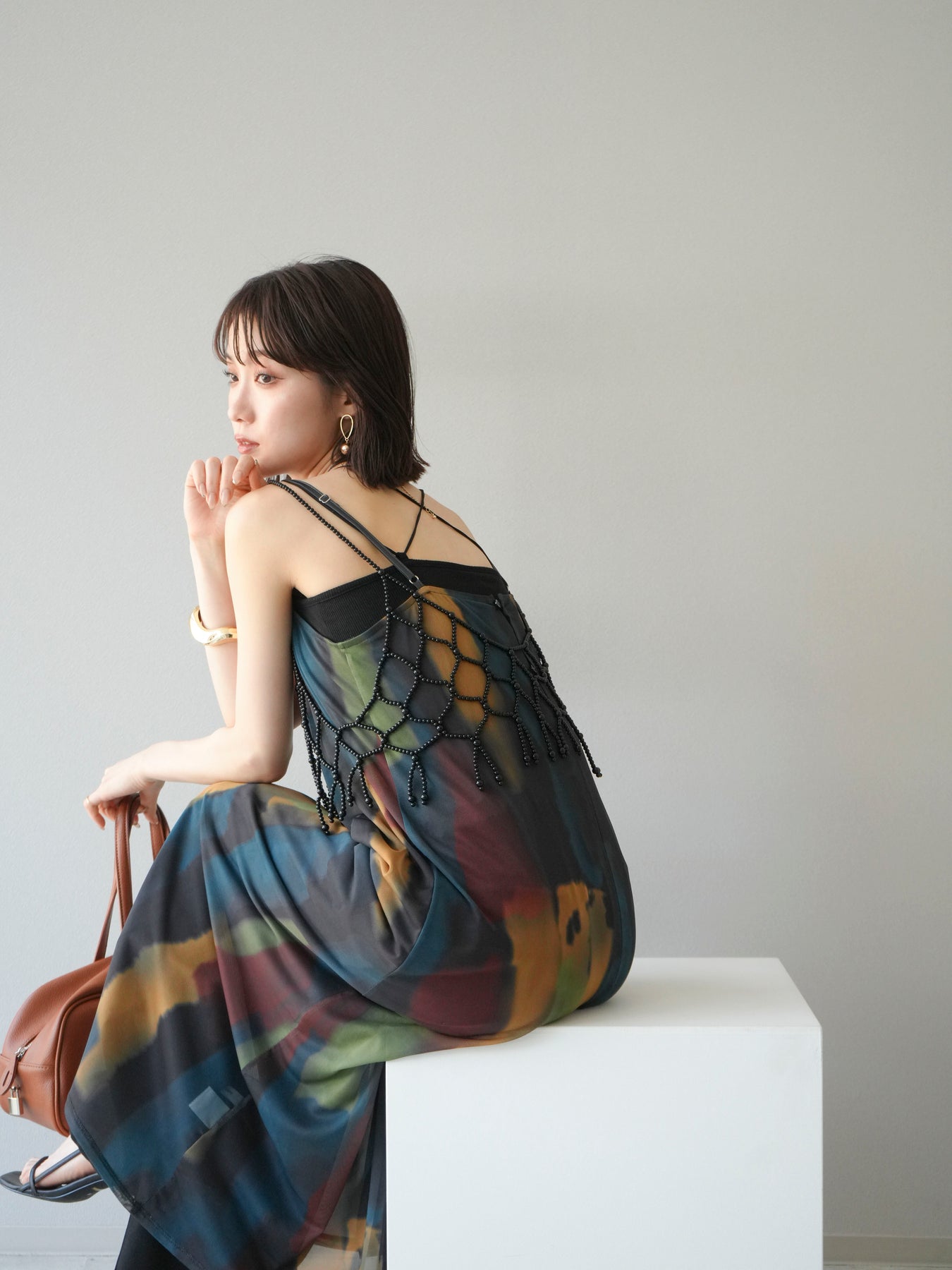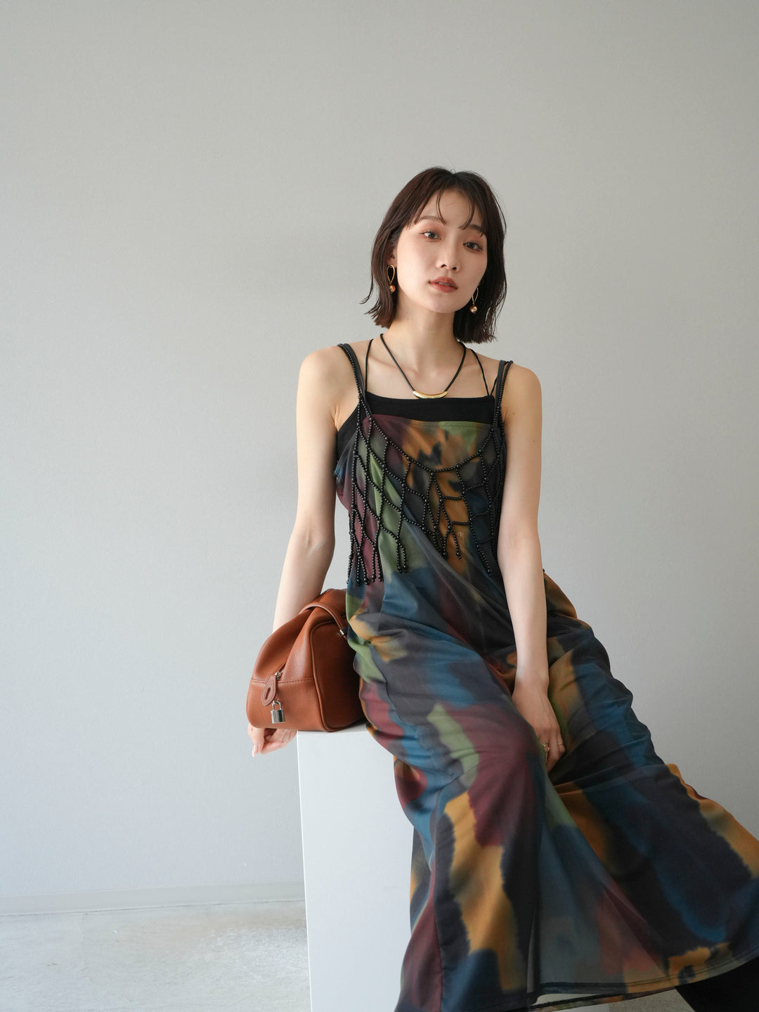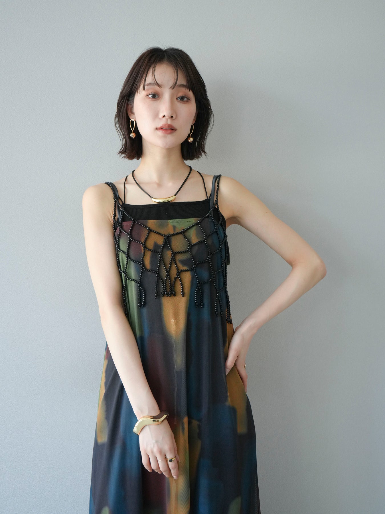 [SET]水彩アートシアーキャミワンピース+ビーズビスチェ(2set)