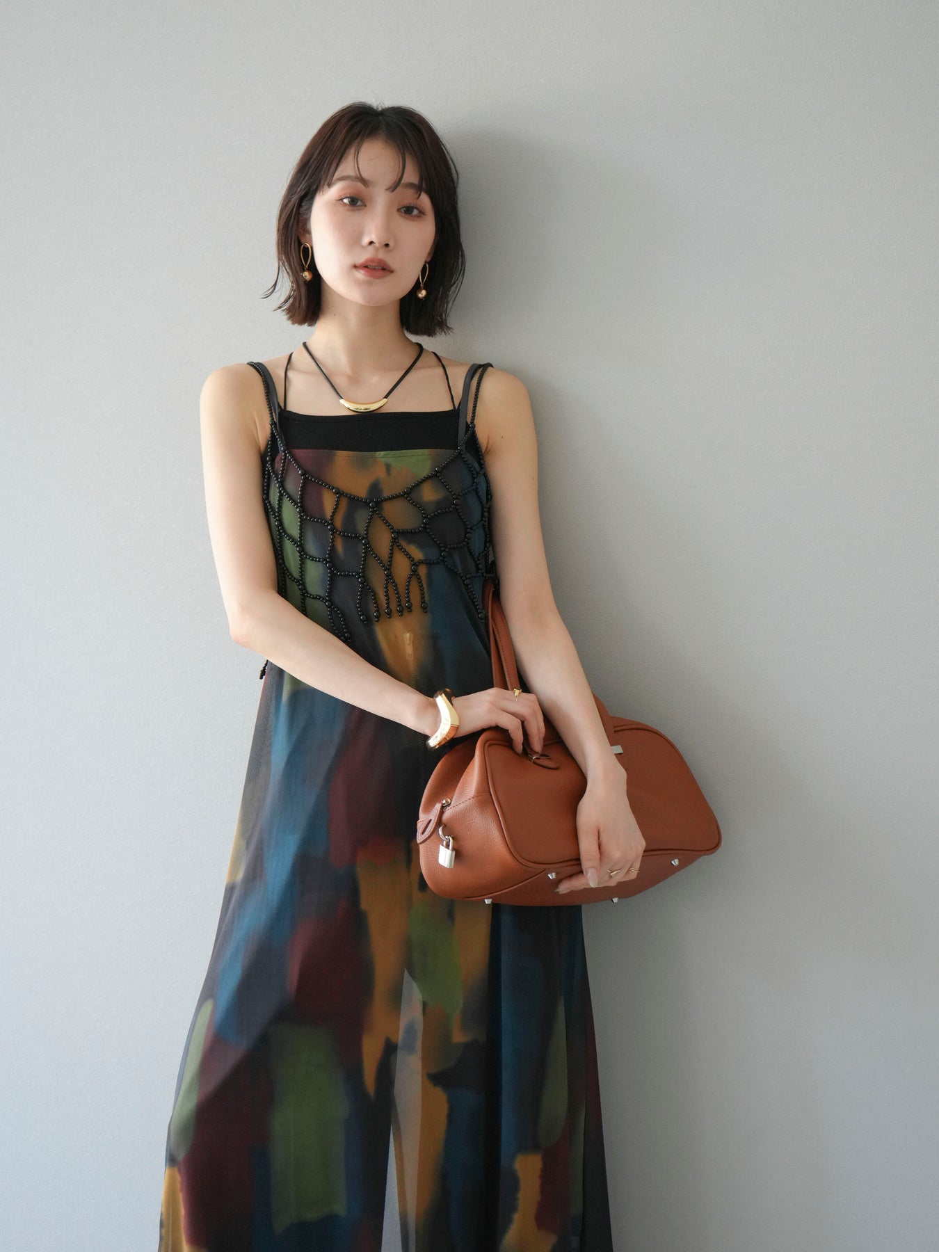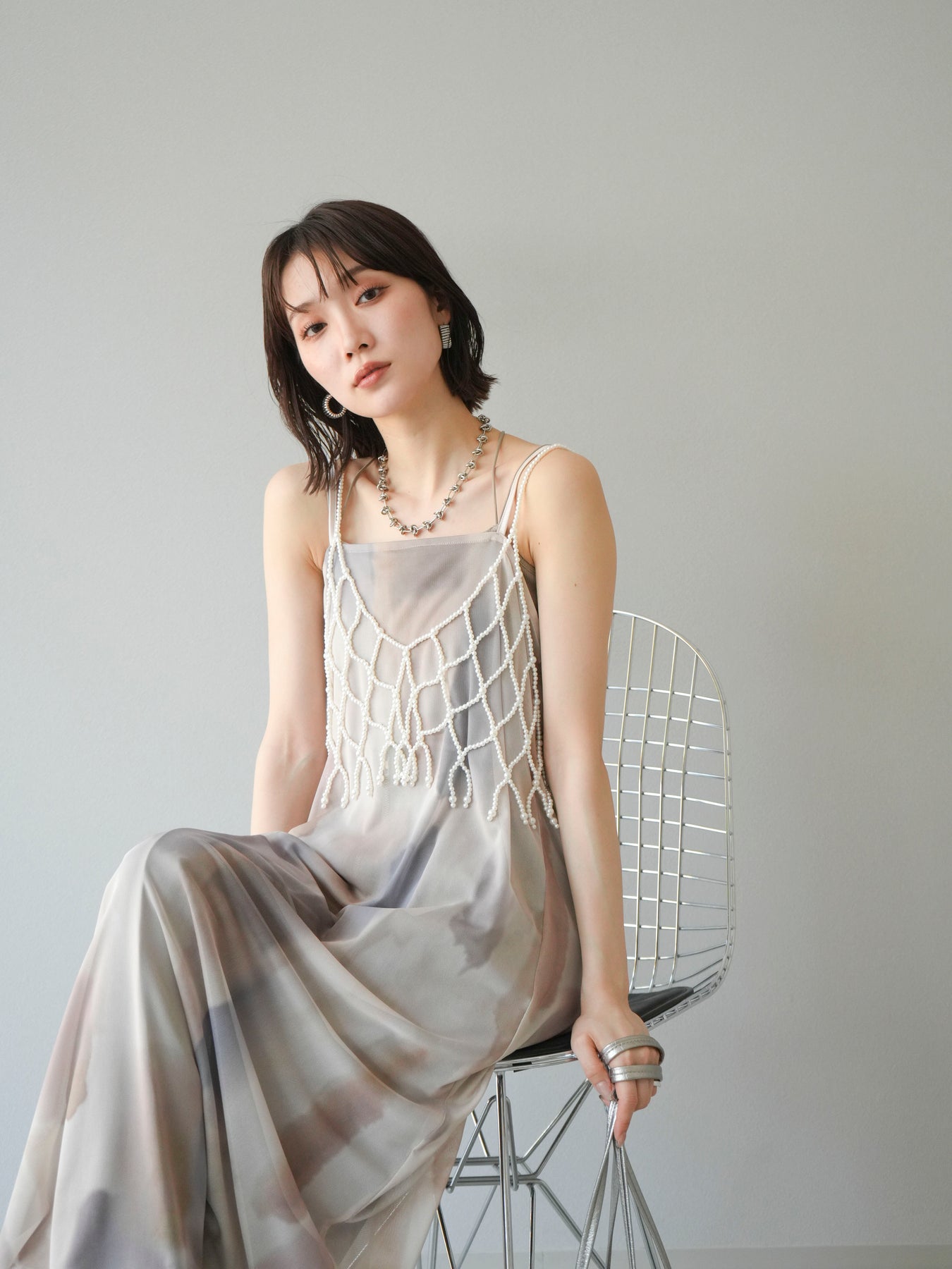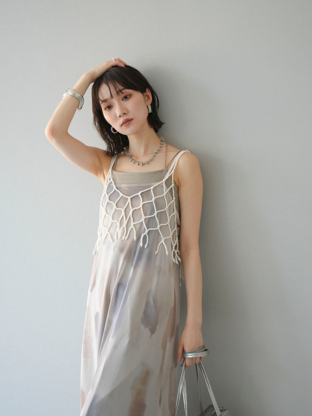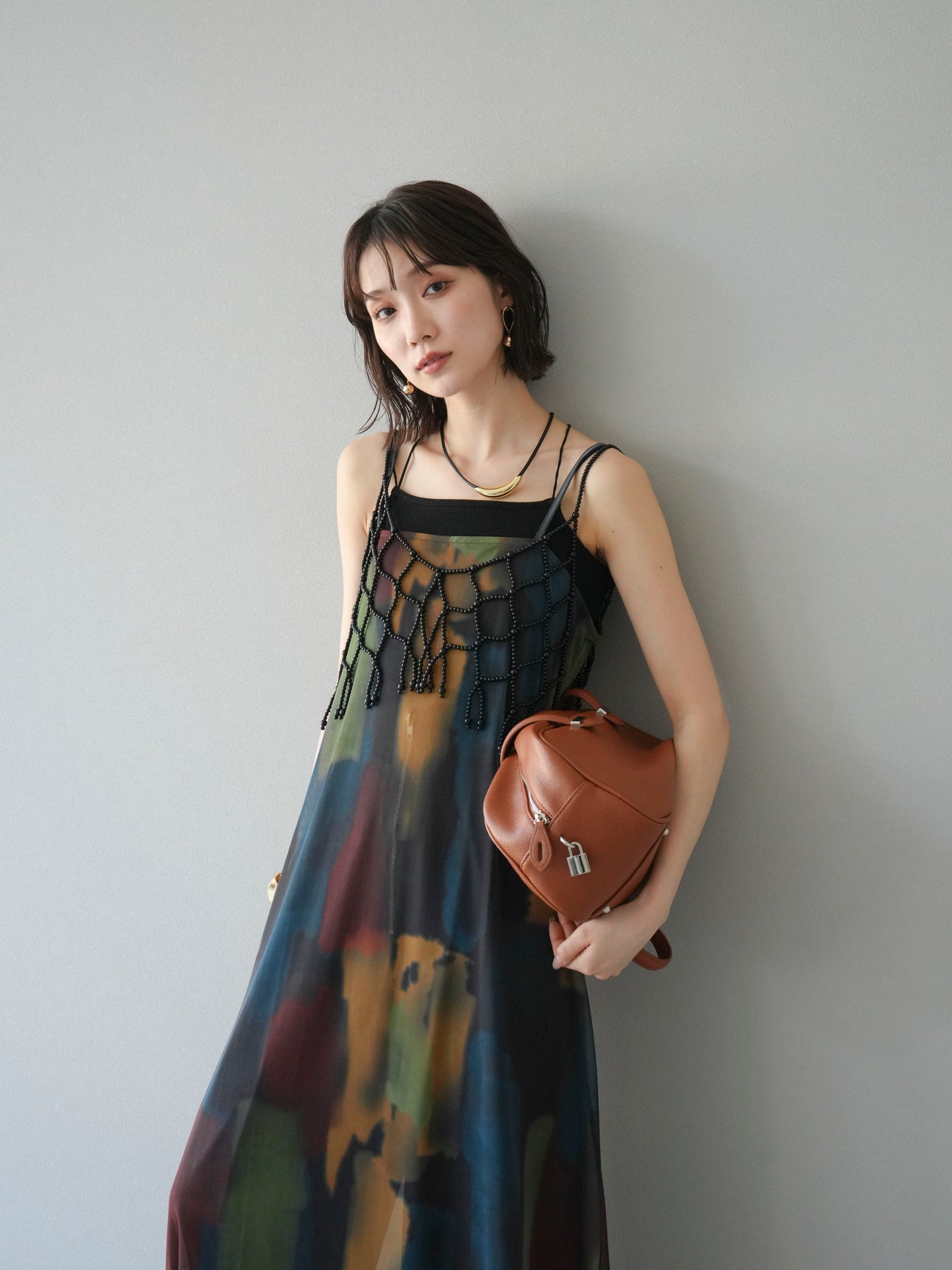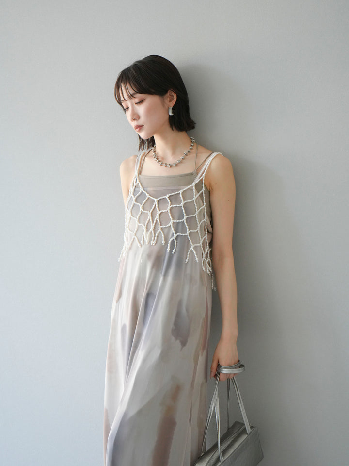 [SET]水彩アートシアーキャミワンピース+ビーズビスチェ(2set)
